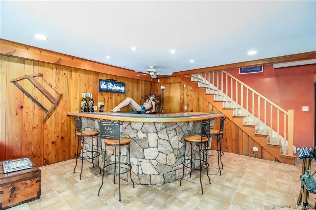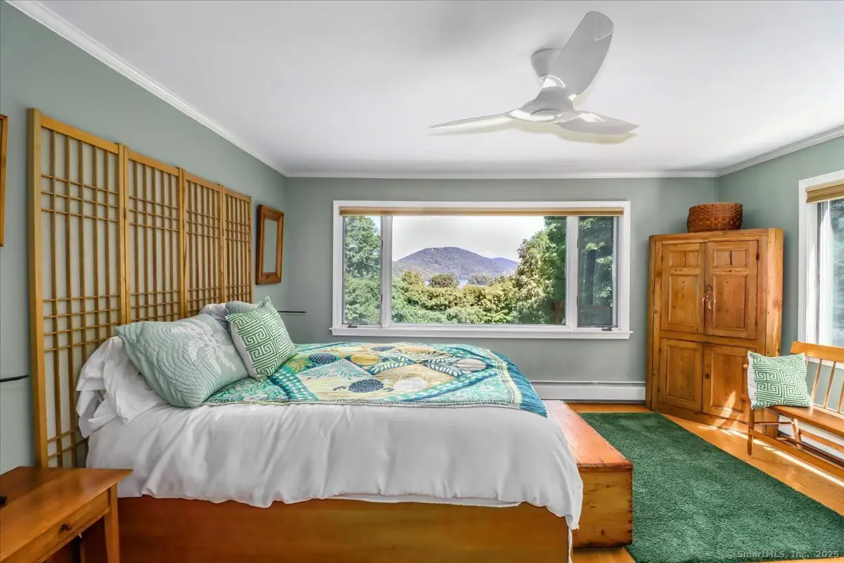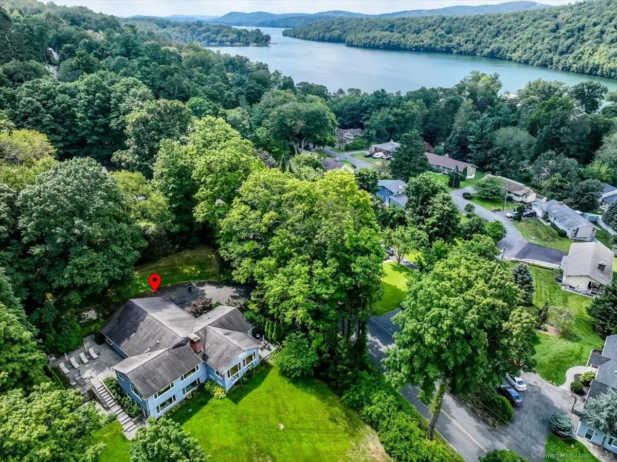 Exceptional Candlewood Lake Ranch with Panoramic Views and fully approved accessory apartment and additional lot. Experience lakeside living at its finest in this remarkable Candlewood Lake home, featuring breathtaking water views. From the moment you enter the foyer, you're greeted by a dramatic wall of windows framing stunning lake vistas. Open-concept design features a spacious living room with a handsome stone fireplace, built-in bookcases, and a dry bar, flowing seamlessly into the dining area and a custom kitchen with granite counters, cherry wood cabinetry, and a breakfast bar. Main-level primary suite is a peaceful retreat with lake views and a recently remodeled bath-perfect for starting your day. Sauna room offers the ultimate in relaxation. An additional bedroom, library, and laundry area complete the main level. Walk-out lower level is an approved apartment, ideal for guests or multi-generational living. It includes a large great room with stone fireplace and bar, a bedroom, full bath, kitchen, and laundry. Hardwood floors, outdoor shower, oversized two-car garage, and generous parking enhance everyday convenience. Outside, the private, landscaped grounds overlooking additional land, features patios, hot tub area, and serene spots to take in the beauty of Candlewood Lake. This extraordinary property combines elegance, versatility, and unbeatable location-truly a rare find! Beach rights are in accordance with land records. The house is set on .70 acre, and the separate lot is 1.25 acres, the assessed value and the taxes reflect the two parcels combined.