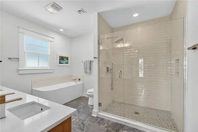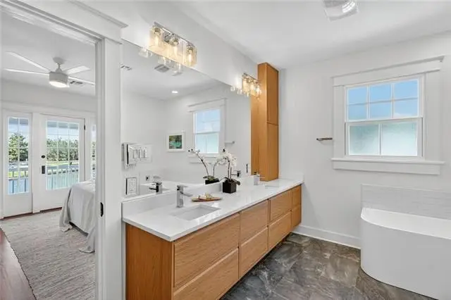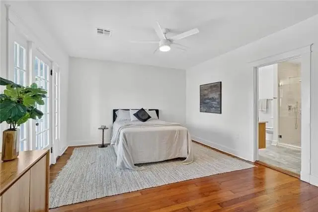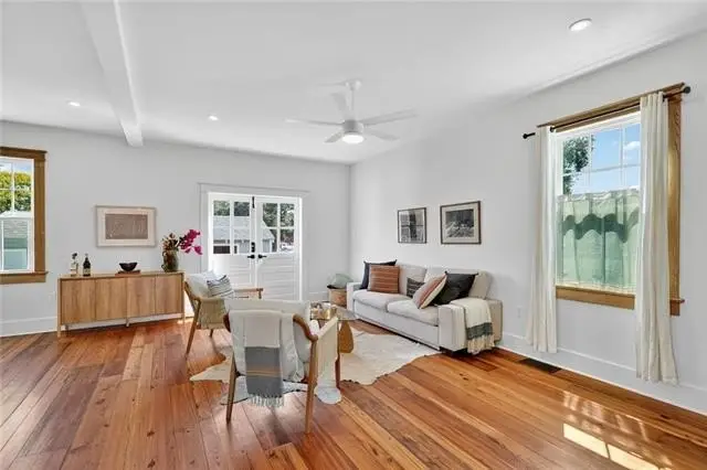 Set along the picturesque Bayou St. John, this fully restored historic two story bungalow was completely renovated and expanded in 2025, seamlessly blending classic architectural character with modern design. The open-concept first floor offers two light-filled living areas and a spacious kitchen with quartz countertops, stainless steel appliances, gas range, and a large center island with deep storage drawers. A downstairs bedroom with full bath is ideal for guests or use as a den. Upstairs, three additional bedrooms each feature en suite baths and walk-in closets. The expansive primary suite boasts two large walk-in closets, a luxurious bath with soaking tub, walk-in shower, and floating double vanity, as well as a full-width balcony with sweeping bayou views. Throughout the home, antique reclaimed wood floors, solid wood doors, and detailed millwork reflect exceptional craftsmanship. Additional features include a dedicated laundry room with custom cabinetry, rear deck, rebuilt garage that doubles as an entertaining space, fully fenced backyard, Hardie Plank siding, updated mechanicals, and a three-year-old roof. Located in coveted flood zone X with affordable insurance, this property offers a vibrant lifestyle right outside your door—with weekly yoga, volleyball, farmers markets, and festivals like Bayou Boogaloo and Jazz Fest just steps away. The nearby Lafitte Greenway provides easy access to the French Quarter and beyond. A rare opportunity to own a spacious, thoughtfully designed home in a prime bayou location at an excellent value.