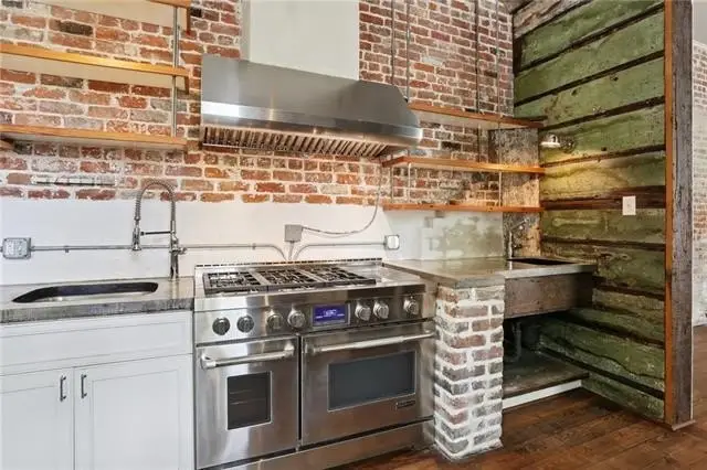 This historic double gallery in the Lower Garden District has been thoughtfully reimagined with a warm, industrial-chic esthetic, blending historic charm with modern convenience. Complete with gated off-street parking and a separate apartment for guests or rental income, the home sits on a rare 159' deep lot just steps from Magazine Street. Fully renovated in 2014 with a new roof, plumbing, electrical, windows, and four HVAC systems, the residence offers peace of mind along with timeless appeal. Inside, deliberate design choices highlight reclaimed materials, high ceilings and abundant natural light. The primary kitchen is a chef’s space and gathering hub, featuring a gas range, full-size refrigerator and freezer, reclaimed wood shelving, concrete countertops, beadboard ceiling and easy access to an inviting outdoor entertaining area. The primary suite spans the front gallery and has its own balcony, generous walk-in closet with laundry and an ensuite bath with a striking live-edge cypress vanity. A private guest suite on the main level, flexible bonus spaces (home office or wine room) and an upstairs den with a secondary kitchen/wet bar add to the home’s versatility. Each additional bedroom enjoys its own balcony, with laundry conveniently located on both floors. Outdoors, the deep lot provides a tranquil retreat with lush landscaping, a gazebo and multiple sitting areas. The property is wired for surround sound and security, ensuring comfort and ease of living. This is a rare opportunity to own a home that combines historic New Orleans architecture, modern amenities and an enviable location— all with a character that is both distinctive and welcoming.