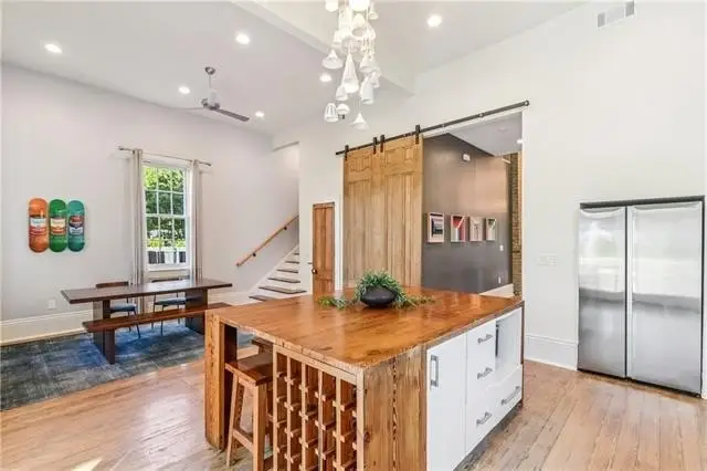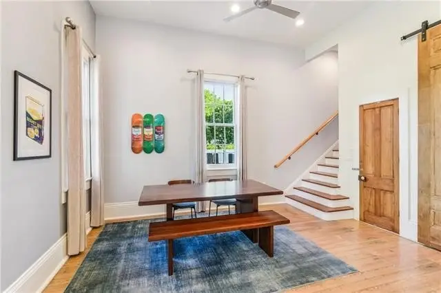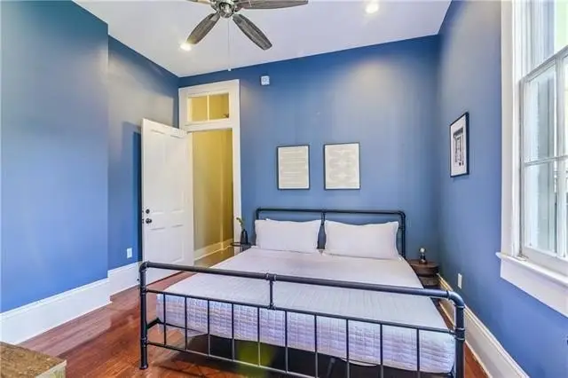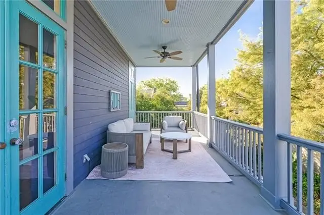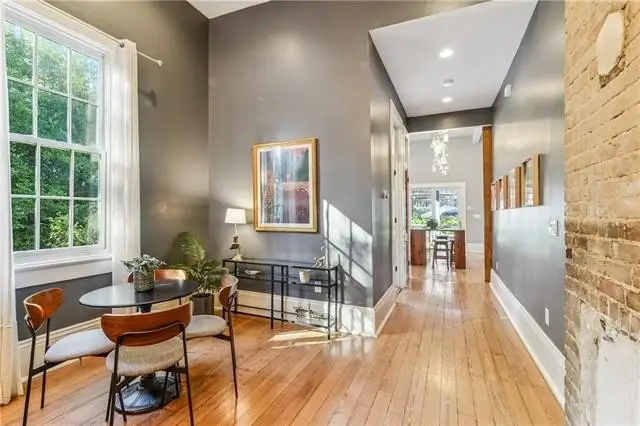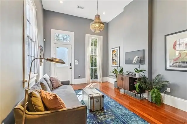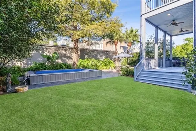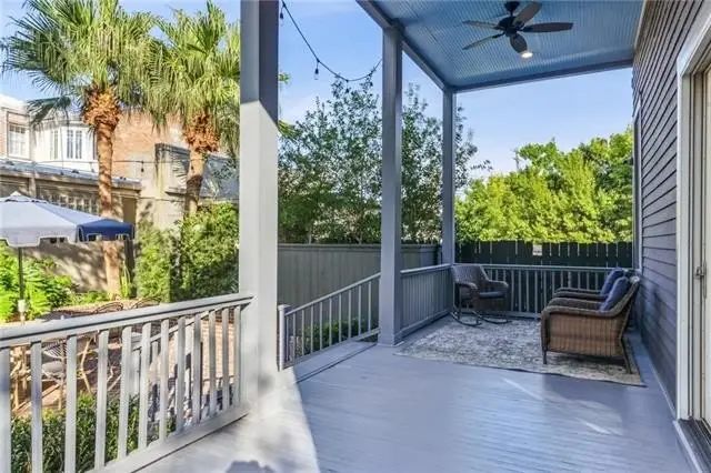 Welcome home to an elegant oasis in the Lower Garden District, steps to Magazine, Coliseum Square and St. Charles Avenue. Meticulous attention was given to both the indoor and outdoor living spaces. A warm porch with a swing and new custom aluminum shutters welcomes you into a home with 13' ceilings, allowing in ample natural light throughout. An expansive living space, with walls perfect for displaying your artwork, complete with a full bathroom, a cook's kitchen with pantry and additional storage that overlooks the gorgeous galley porch. Brimming with charm, it has original hardwood floors, exposed brick, an antique barn door to separate the kitchen from the living area, and vintage doors throughout. A luxurious primary bedroom with en-suite bathroom, spacious walk-in closet, and a huge galley balcony with beautiful city views. New roof installed in 2022. Leased solar panels keep utility bills affordable. The Endless Pool is ideal for both enjoyment and exercise. A thoughtfully designed brick patio is ideal for entertaining, Mardi Gras parties, and crawfish boils. The house can be sold fully furnished for those looking for a truly turnkey home. X flood zone, zoned HU-MU. Currently a double, but can be easily converted into a single home residence.