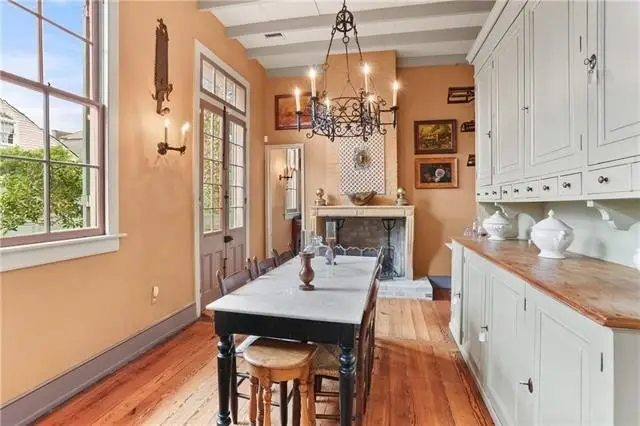 Important early 19th-century Center Hall Cottage on a picturesque block in the heart of the historic Faubourg Marigny! Meticulously and authentically restored, this villa-type home is a true architectural gem, featuring a fine Greek Key entrance with an elegant pediment, soaring 12-foot ceilings, original pocket doors, refined transom windows, working wood shutters on all windows, and operable windows that bring in abundant natural light and fresh air. Gorgeous cypress floors run throughout the home, enhancing its warmth and historic charm. It is rare to see a home this painstakingly restored and maintained. The layout is both gracious and functional, with double parlors currently set as formal living and dining rooms, a cozy den, and a stunning gourmet kitchen that opens to a sunny breakfast room. The kitchen is outfitted with a Viking range, SubZero refrigerator and freezer drawers, marble countertops, and custom-milled cabinetry. In the breakfast room, an antique French fireplace mantel—wood-burning with a gas starter—adds the perfect touch of character. The spacious first-floor primary suite includes a walk-in cedar closet and a marble-clad bath with an old world feel. The original gracefully curved staircase leads to two comfortable upstairs bedrooms with generous closets, and a lovely hall bath finished with antique marble. Off the den, a covered porch overlooks the private backyard and antique brick courtyard with a bubbling fountain. The deep lot offers ample room for a pool or gardens—a blank canvas ready for your vision. Off-street parking with a bricked driveway and electric gates adds convenience. Fully restored by master craftsmen, with three recently replaced central HVAC systems, this home blends historic integrity with modern comfort. Just steps from the Marigny Opera House, Crescent Park, and some of the city's best restaurants, cafés, and galleries—with the French Quarter just a stone's throw away. A timeless New Orleans classic!