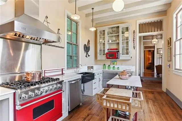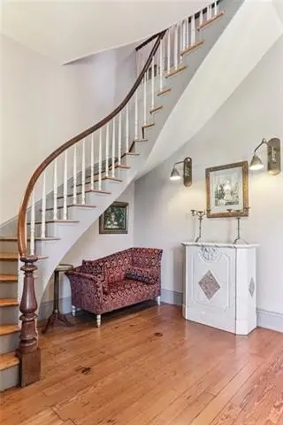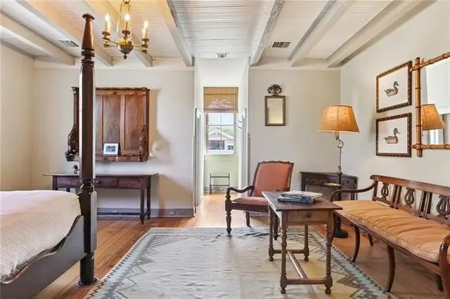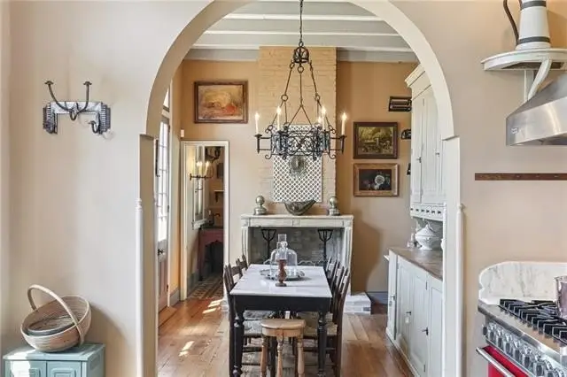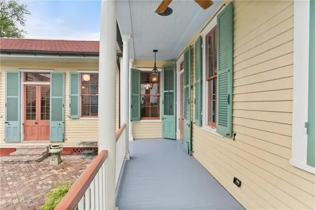 Important early 19th-century Center Hall Cottage on a picturesque block in the heart of the historic Faubourg Marigny! Meticulously and authentically restored, this villa-type home is a true architectural gem, featuring a fine Greek Key entrance with an elegant pediment, soaring 12-foot ceilings, original pocket doors, refined transom windows, working wood shutters on all windows, and operable windows that bring in abundant natural light and fresh air. Gorgeous cypress floors run throughout the home, enhancing its warmth and historic charm. It is rare to see a home this painstakingly restored and maintained. The layout is both gracious and functional, with double parlors currently set as formal living and dining rooms, a cozy den, and a stunning gourmet kitchen that opens to a sunny breakfast room. The kitchen is outfitted with a Viking range, Sub-Zero refrigerator and freezer drawers, marble countertops and custom-milled cabinetry. In the breakfast room, an antique French fireplace mantel—wood-burning with a gas starter—adds the perfect touch of character. The spacious first-floor primary suite includes a walk-in cedar closet and a marble-clad bath with an old-world feel. The original, gracefully curved staircase leads to two comfortable upstairs bedrooms with generous closets and a lovely hall bath finished with antique marble. Off the den, a covered porch overlooks the private backyard and an antique brick courtyard with a bubbling fountain. The deep lot offers ample room for a pool or gardens—a blank canvas ready for your vision. Off-street parking with a bricked driveway and electric gates adds convenience. Fully restored by master craftsmen, with three recently replaced central HVAC systems, this home blends historic integrity with modern comfort. Just steps from the Marigny Opera House, Crescent Park, and some of the city's best restaurants, cafés, and galleries—with the French Quarter just a stone's throw away. A timeless New Orleans classic!