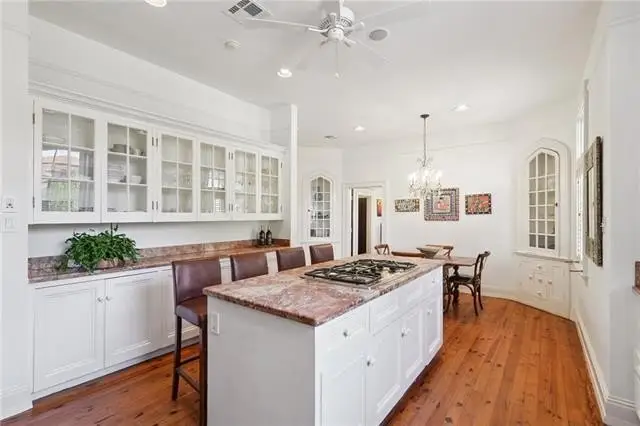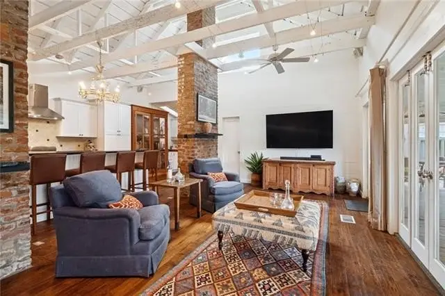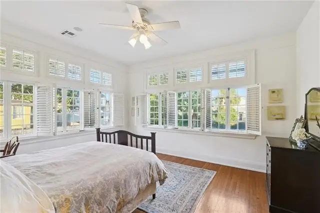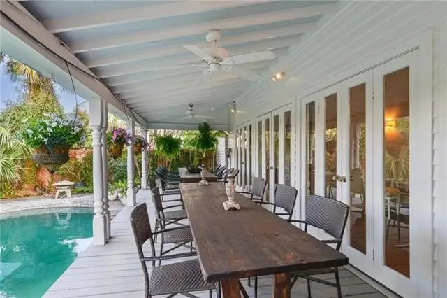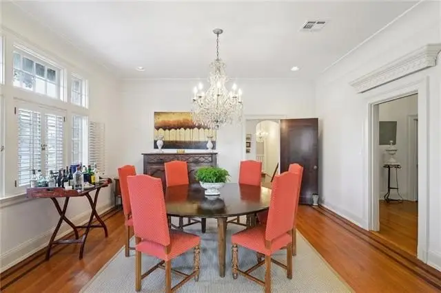 Spectacular Uptown Compound with Dream Guest House! Don't miss this rare opportunity to own a truly multi-generational home on a private, walled and gated compound in historic Uptown, New Orleans. Located on an impressive double corner lot, it includes this stately Mediterranean Revival Primary Residence, Guest House, Pool, and 2-car garage. A fully furnished 2 bedroom and 1 bath ground-floor apartment with private entrance (and separate utilities) is great for guests, live-in assistants, or extra income. The residence has 6 spacious bedrooms and 5 fully renovated stone/tile bathrooms. Original architectural elements, such as oak inlaid wood floors, mahogany inlaid doors, custom-milled inset kitchen cabinets, and wood-paneled Tudor-style library, have been maintained and blend seamlessly with the modern renovated amenities. Each of the upstairs rooms is light-filled, has vista views and custom shutters. The whole-home sound system makes entertaining effortless. The ground floor areas are spacious and well designed with family comfort and convenience in mind. Two family-room options with French doors and full bath access make gatherings a breeze. But the ultimate indulgence for a large family, caretaker, or sports enthusiast is the mud room with an adjacent full walk-in shower!! Sportsmen, athletes, and moms alike can offload equipment, gear, or groceries, steps from the car, through a private side entrance into the Mudroom. The outdoor oasis is thoughtfully landscaped with livability and convenience in mind. A grass side yard makes a wonderful dog-run, garden, or potential putting green! A covered breezeway connects the house to the outdoor bar/kitchen and guest house. The veranda overlooking the pool has alfresco dining for 20+, or dine inside and enjoy a movie night on your 75-inch TV. A private entrance from Valmont and an attached two-car garage give the guest house great optionality. Don't miss this rare opportunity!