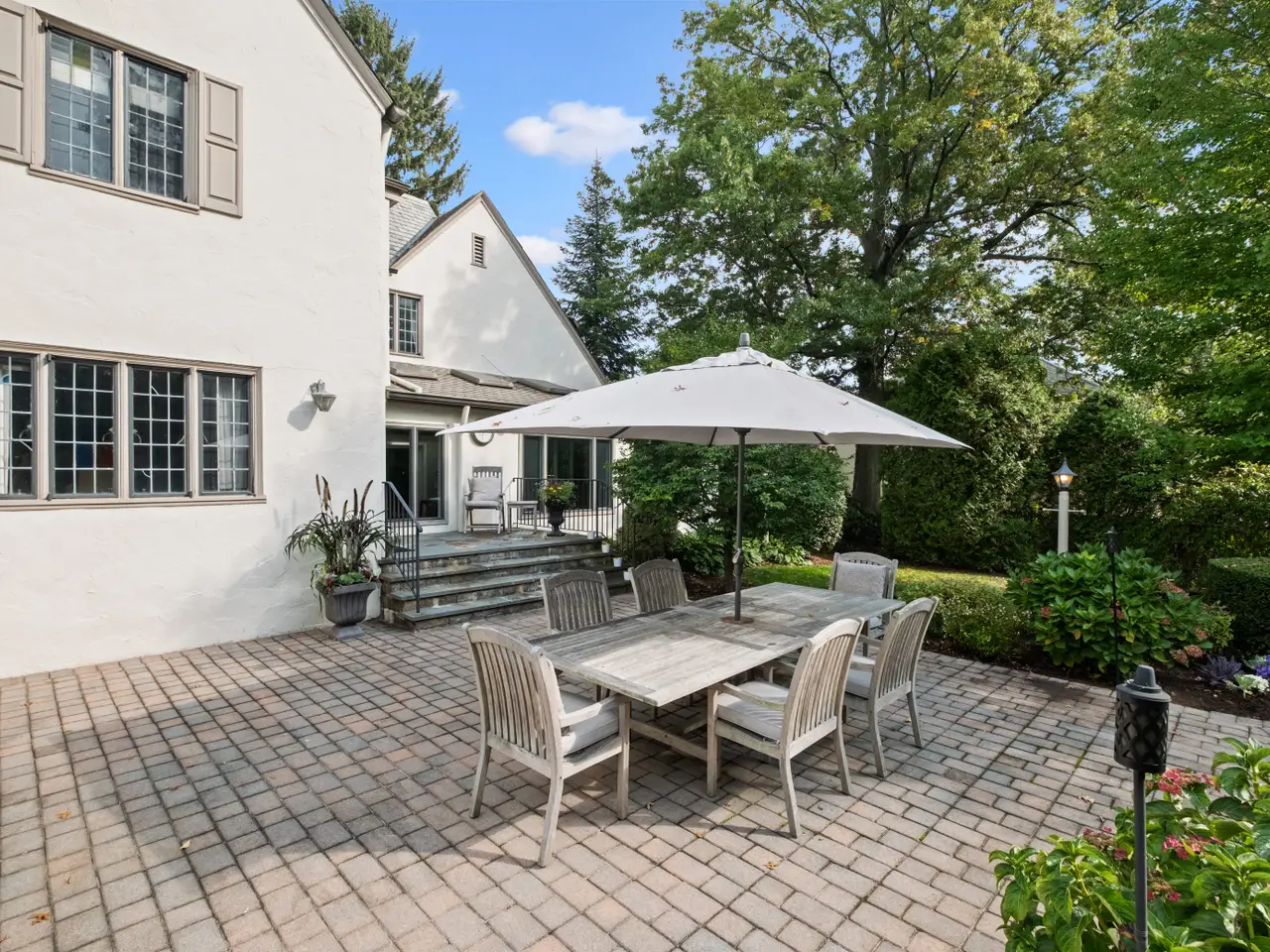 Modern vibe meets classic charm in this spectacular updated English Tudor, gracing over a third of an acre in one of New Rochelle's most sought-after locations. With magnificent curb appeal and stunning original architectural details perfectly paired with tasteful updates, it's easy to fall for this beauty. The gracious entry foyer opens to a breathtaking sunken living room with 12-foot ceilings, fireplace and remarkable original stained glass windows which have been artfully restored. The fabulous family room features skylights and wall to wall windows overlooking the gorgeous gardens, porch and patios. A formal dining room opens to the captivating grounds, seamlessly blending the indoor and outdoor entertaining space. Recently updated, the eat-in kitchen presents extensive cabinets, granite counters and new stainless steel appliances. The first floor is complete with a powder room as well as a coveted first floor bedroom with a beautiful ensuite bathroom. All bedrooms feature deep closets and all five bathrooms have been redone with designer touches. The spectacular primary bedroom features a sitting area, double closets and an ensuite bath with double sinks and a walk-in shower. There are striking original details at every turn, and this haven is as pristine as can be. Enjoy recessed lighting, handsome hardwood floors and three-zones of central air conditioning and heating. Home is wired for portable generator, a wireless ADT security system and boasts a two car garage with high ceilings, epoxy flooring and storage. Plus, the basement provides over 1000 sq ft of inviting bonus space. Nestled amongst mature trees and specimen plantings, the backyard is a private, tranquil oasis. All this, in a convenient location near shopping, restaurants, schools and worship. Just a 30 minute train ride to NYC.