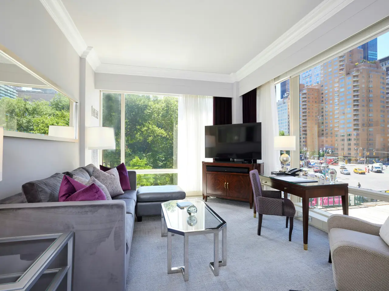 Park view corner one bedroom hotel suite. This 5 Star Condo Hotel Suite (1,016 square feet) rents for over $1,000 a night to the public. There are no restrictions for use by owners. Exciting Central Park and Columbus Circle views. Hotel has health club and pool. Room service by Jean Georges Restaurant. Walk-in owners' closet. Full kitchen! Stunningly low price.