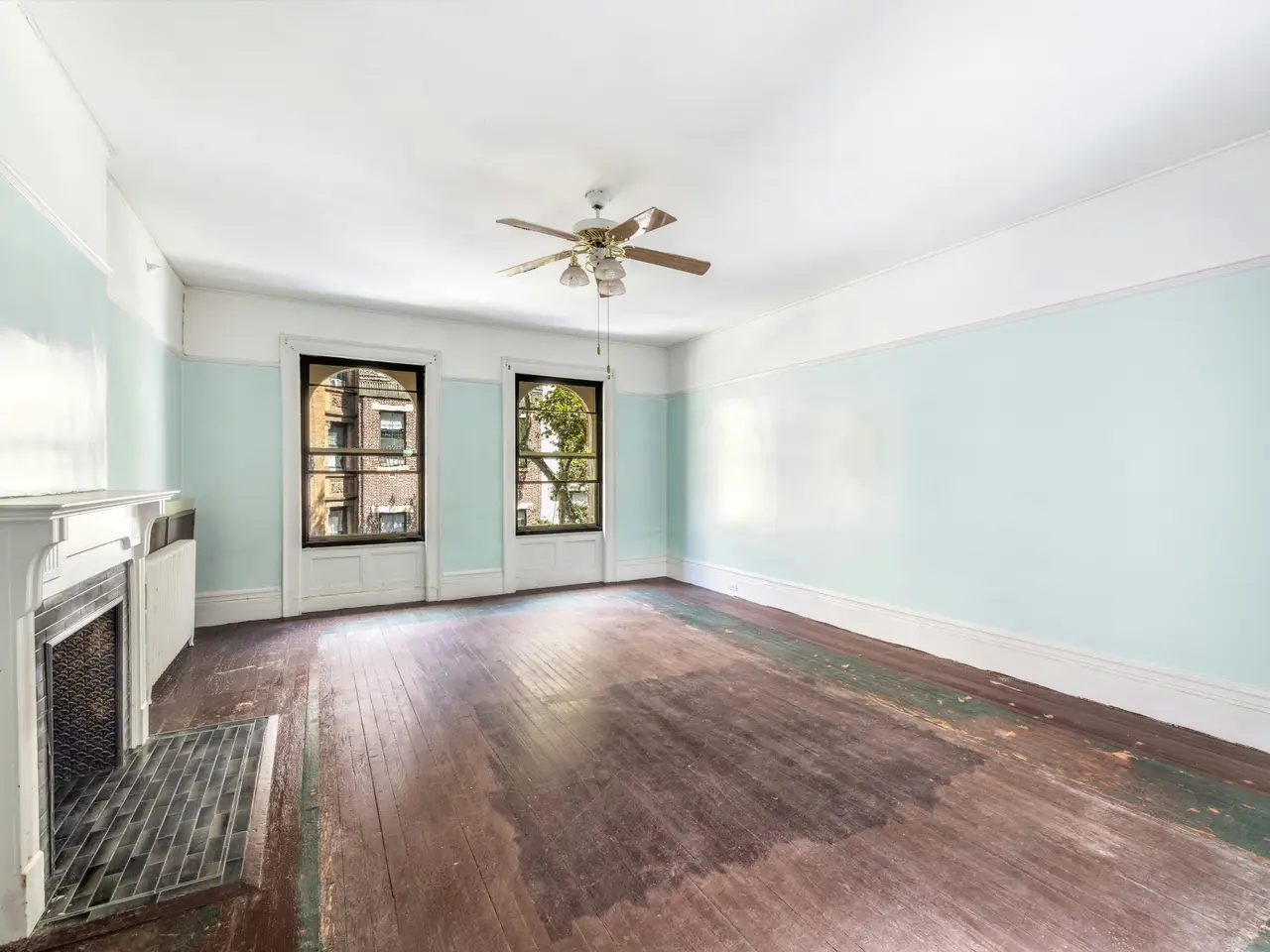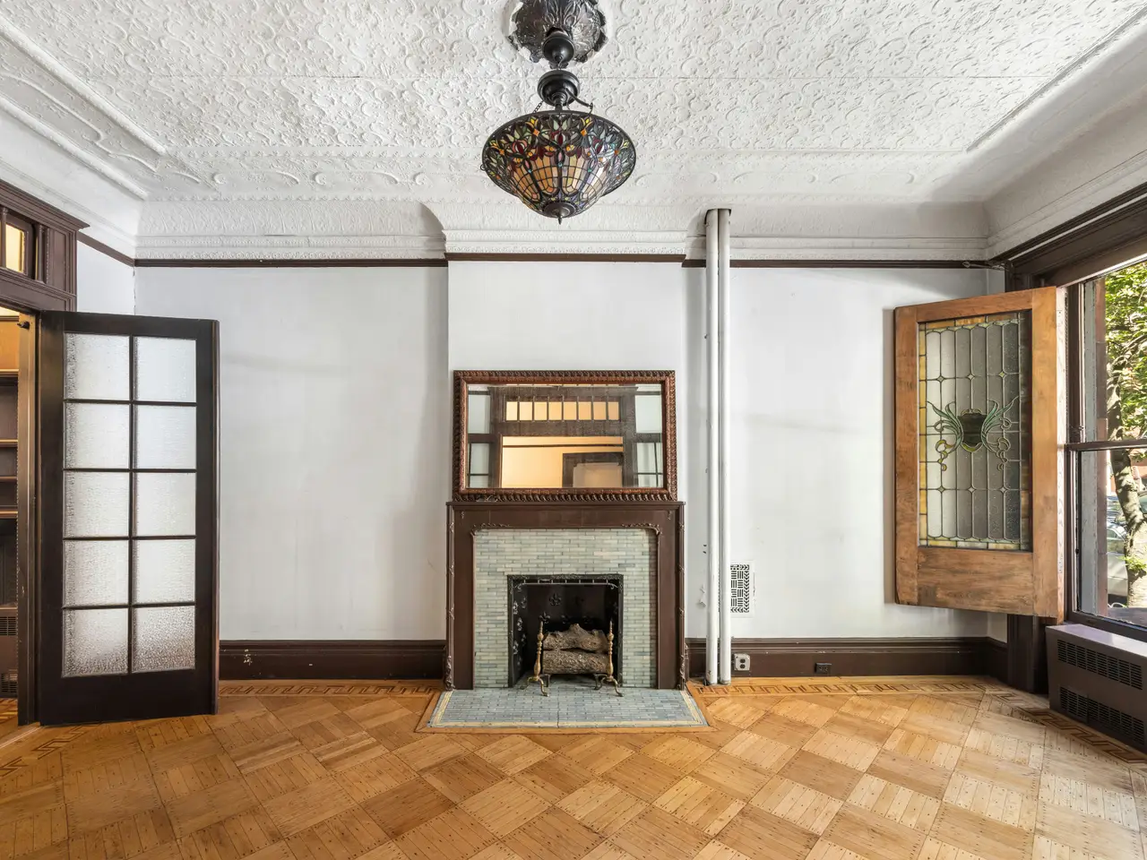 Tucked away on a quiet and pretty tree-lined block between West End Avenue and Riverside Drive, 324 West 85th Street is a rare and distinguished single-family townhouse rich in original architectural detail. This home has been owned by the same family since 1940 with only one previous owner. The property is in need of a complete renovation. One of six houses in a landmarked 1892 row designed by renowned architect Clarence True, this residence is a superb example of late 19th-century design. The stately north-facing facade of red sandstone, light orange Roman brick, and red pantile roof tiles is remarkably well preserved. The interior of this home is rich with historic charm and includes original details such as four fireplaces, inlaid wood floors, an oversized pocket door, intricate moldings, and rich wood paneling. Layout Overview: Parlor Floor: Enter through a paneled vestibule into a dramatic front parlor with soaring ceilings and exceptional natural light. The library and south facing rear living room are separated by a large original pocket door adjacent to a classic box stair that is illuminated by a large new skylight on the top floor. Past the rear living room is the expansive kitchen featuring original wooden cabinetry. A south-facing eat-in area overlooks the tranquil garden, creating many possibilities for a large chef's kitchen. Garden Level: Accessible from both the kitchen and its own under-stoop front entrance, this level includes two separate open areas and two separate entrances to the garden. There is a window at the front of the space facing the street and windows on the west side of the house. The south-facing garden is 570 square feet. Third Floor: Two full bedrooms with two bathrooms. Both bedrooms have original fireplaces. Fourth Floor: Two spacious bedrooms that share a full bathroom. Large skylight that brings sunlight down to the parlor floor.