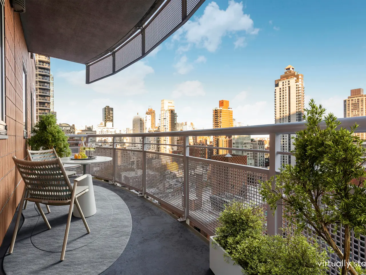 SOARING 20FT CEILING 2BED 2BATH 2BALCONIES   Welcome to your dream home with dramatic 20ft ceiling.  This corner 2-bedroom, 2-bathroom corner home and two private balconies , offering a rare combination of volume, light, and luxury in the heart of Lenox Hill. From the moment you step inside, you're greeted by incredible natural light , expansive windows , and stunning wide-plank teak flooring . The open-concept living area is anchored by a sleek gas fireplace , creating the perfect blend of warmth and elegance. The newly renovated custom chef’s kitchen features rich teak cabinetry , quartz countertops , top-of-the-line Viking stainless steel appliances , including a garbage disposal — ideal for casual dining and entertaining. Designed for privacy and comfort, this home offers split bedrooms . The primary suite includes generous closets and ensuite bath with a deep soaking tub and separate glass-enclosed shower stall. The second bedroom is spacious, sun-filled, and equally well-appointed. Enjoy a separate area perfect for home office — perfect for today’s lifestyle. Additional highlights for your comfort there is abundant closet space throughout, aski in unit washer/dryer and two zone central A/C. 205 East 59th Street is a full-service, luxury condominium with 24-hour doorman and concierge , a full-floor fitness center , garden terrace , central laundry , and even a private covered "Puppy Park" for pet lovers. Private storage available for an additional fee. THIS WON’T LAST.  Call today to schedule a private showing.