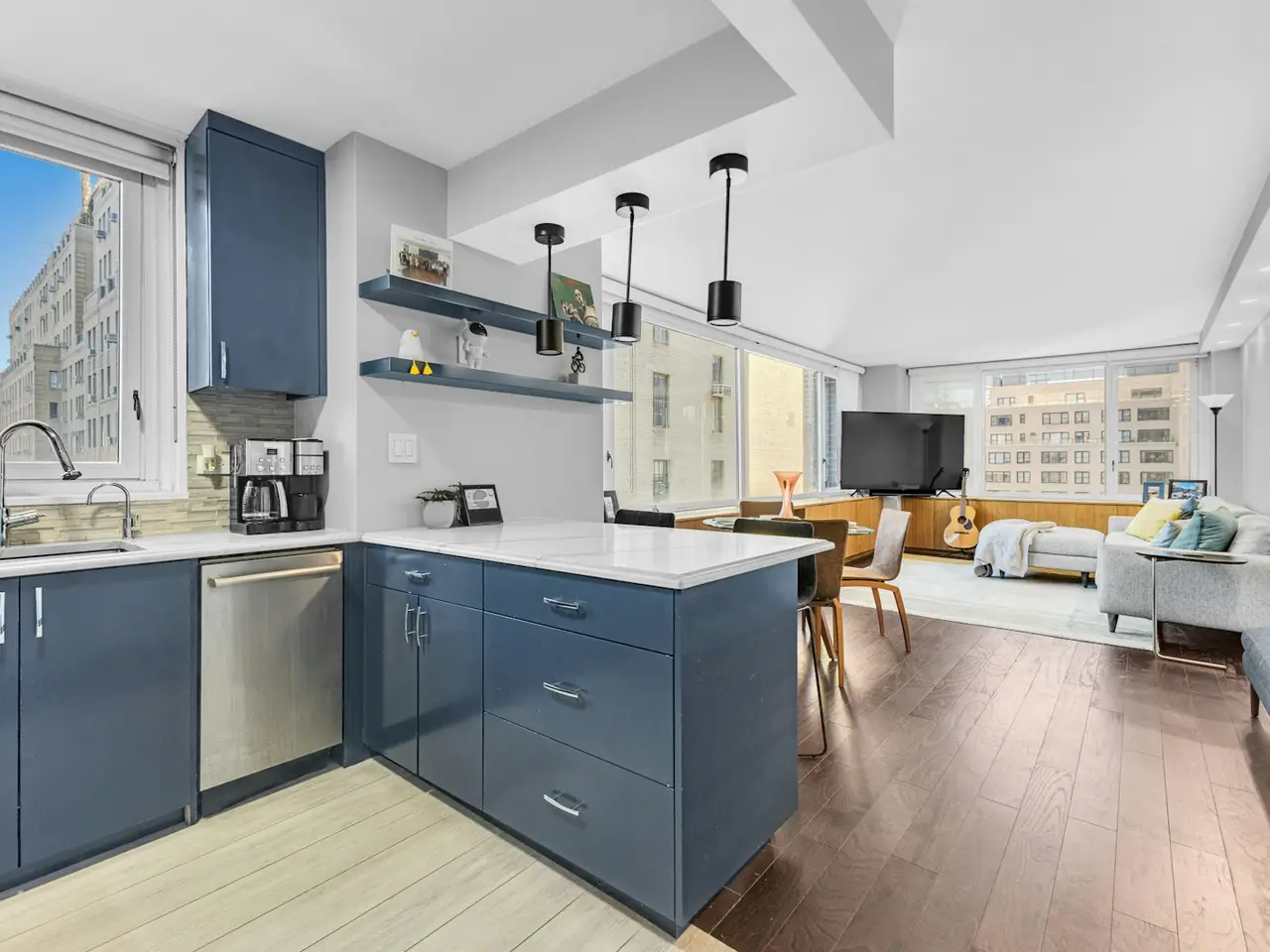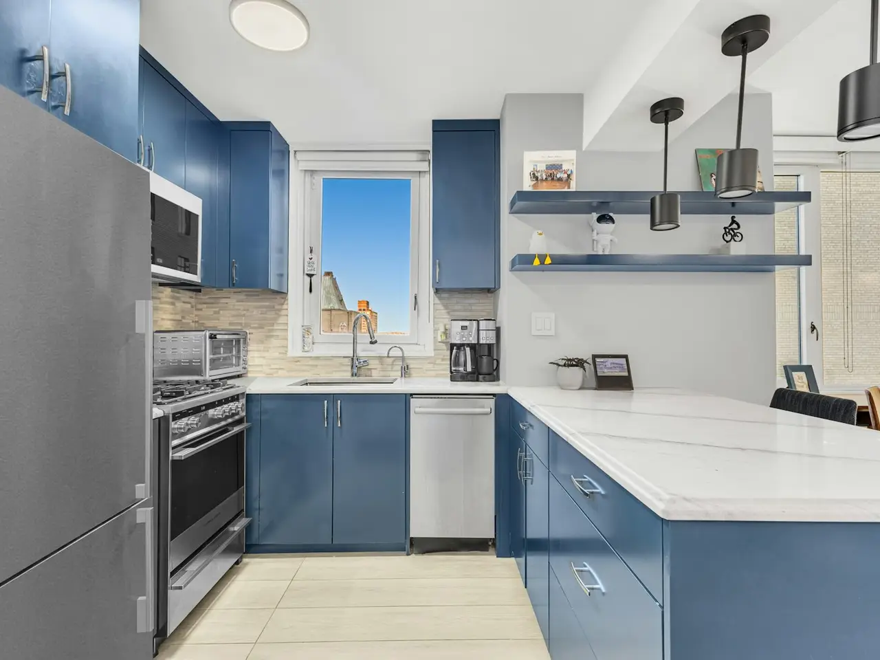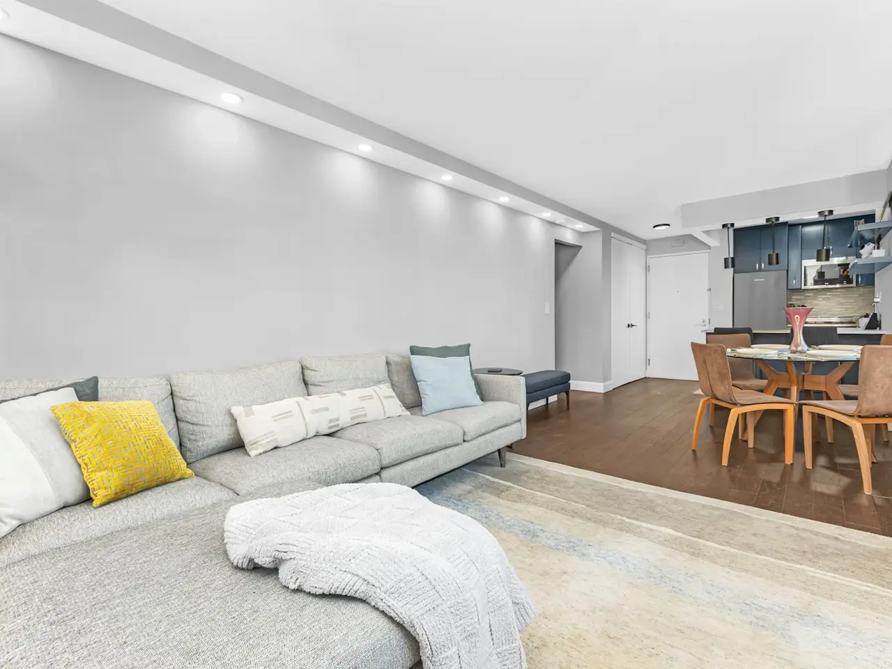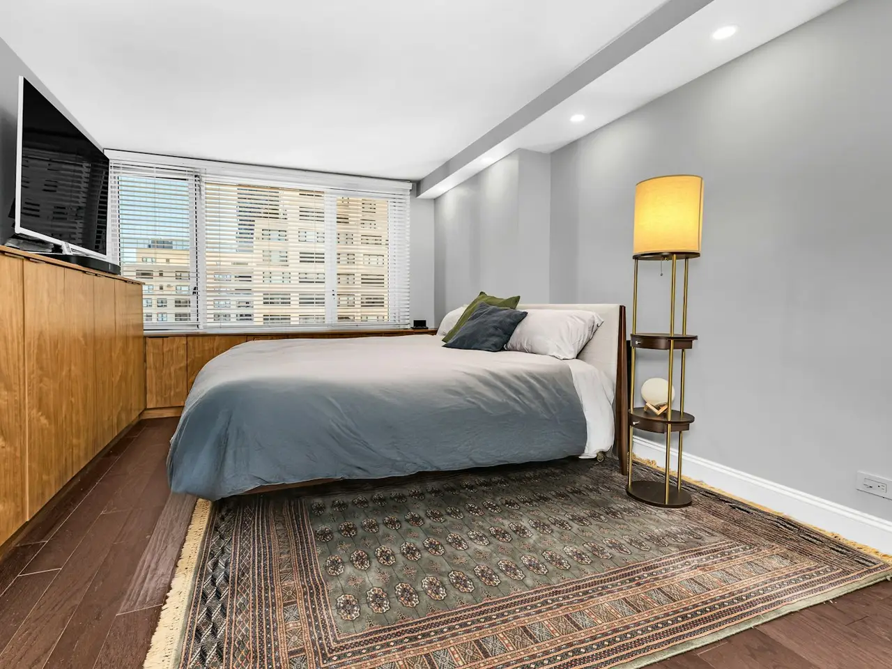 Introducing this fully renovated north/west corner one bedroom in the famed Sheffield building. This tastefully designed home has custom natural wood cabinetry in the living room below the windows creating a clean sleek look, ideal for storage. All the closets are are outfitted with auto-on lights when opening the doors, and new hardwood flooring. The custom kitchen with a window has stone countertops with Filtered cold water, and the entire bathroom is outfitted with Italian travertine stone. The bath is includes Moen Digital shower controller that can be engaged manually by app and voice command, with battery back up, and digitally controlled water temperature and flow of water via overhead and/or handheld shower. This is a tech savvy home, and here are some of the additional features: Overhead soffit lighting built into both living room and bedroom, all light switches are "smart" and have dimmers, with remote access. The owner installed a new electrical panel, with new stem plumbing throughout kitchen and bath. Its a must see! This unique building offers so much, it has amenity space on the 57th, 58th and 59th floors with a year round heated pool, patios throughout the top floors, two resident lounges, also available for rent, a fully equipped gym with top of the line machines, a dance studio, a play room, lockers with saunas and steam rooms, and BBQ terrace. The Sheffield condominium is centrally located in the Columbus Circle area, within walking distance to from Lincoln center, the theatre district and two blocks from Central Park. There are fine restaurants in the Time Warner shopping Mall, Whole Foods, and eclectic varied cuisines on 9th Ave. Major trains are steps away