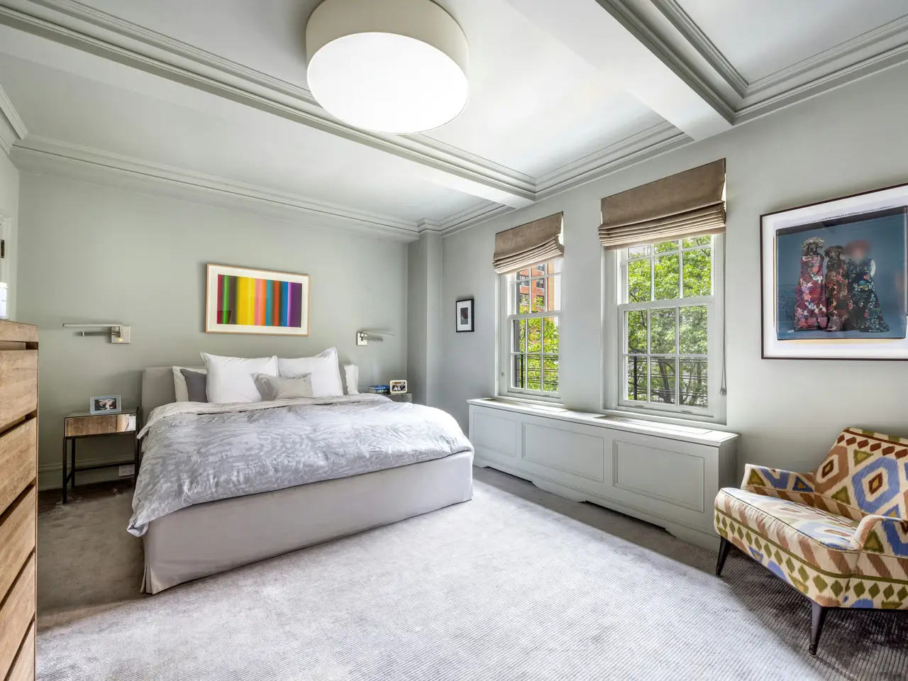 Move right into this glamorous prewar "Classic 7" recently renovated and designed by award-winning, AD100 designer, Giancarlo Valle. This spacious and sunny, south-facing home has approximately 9'5" ceilings, pretty treetop views and is in one of the most convenient Upper East Side locations just off Park Avenue. The layout of this elegant residence is thoughtful and timeless. A gracious entry foyer opens into a large living room with oversized mullioned windows that let in lots of light and the formal dining room is adjacent making the space perfect for both elegant entertaining and easy everyday living. An attractive hallway gracefully separates the entertaining spaces from the bedroom wing. All 3 bedrooms are bigger and brighter than typically found in this size of a home and the marble windowed bathrooms are sophisticated and functional. The eat-in kitchen boasts white macauba quartzite slab counters, a custom stainless steel backsplash, a bounty of cabinets and top-shelf appliances by Wolf (gas stove, oven and vented hood), Bosch (dishwasher) and Subzero (refrigerator.) Nearby is the staff room - a bonus space ideal as an office or nursery with a new electric washer and vented dryer. Other details include thru wall air conditioning, classic moldings, herringbone hardwood floors and a decorative plaster fireplace. Built in 1927, this full-service doorman building is pet friendly and offers a planted roof deck, live-in resident manager, central laundry, bike room and a large private storage space that transfers with the home.