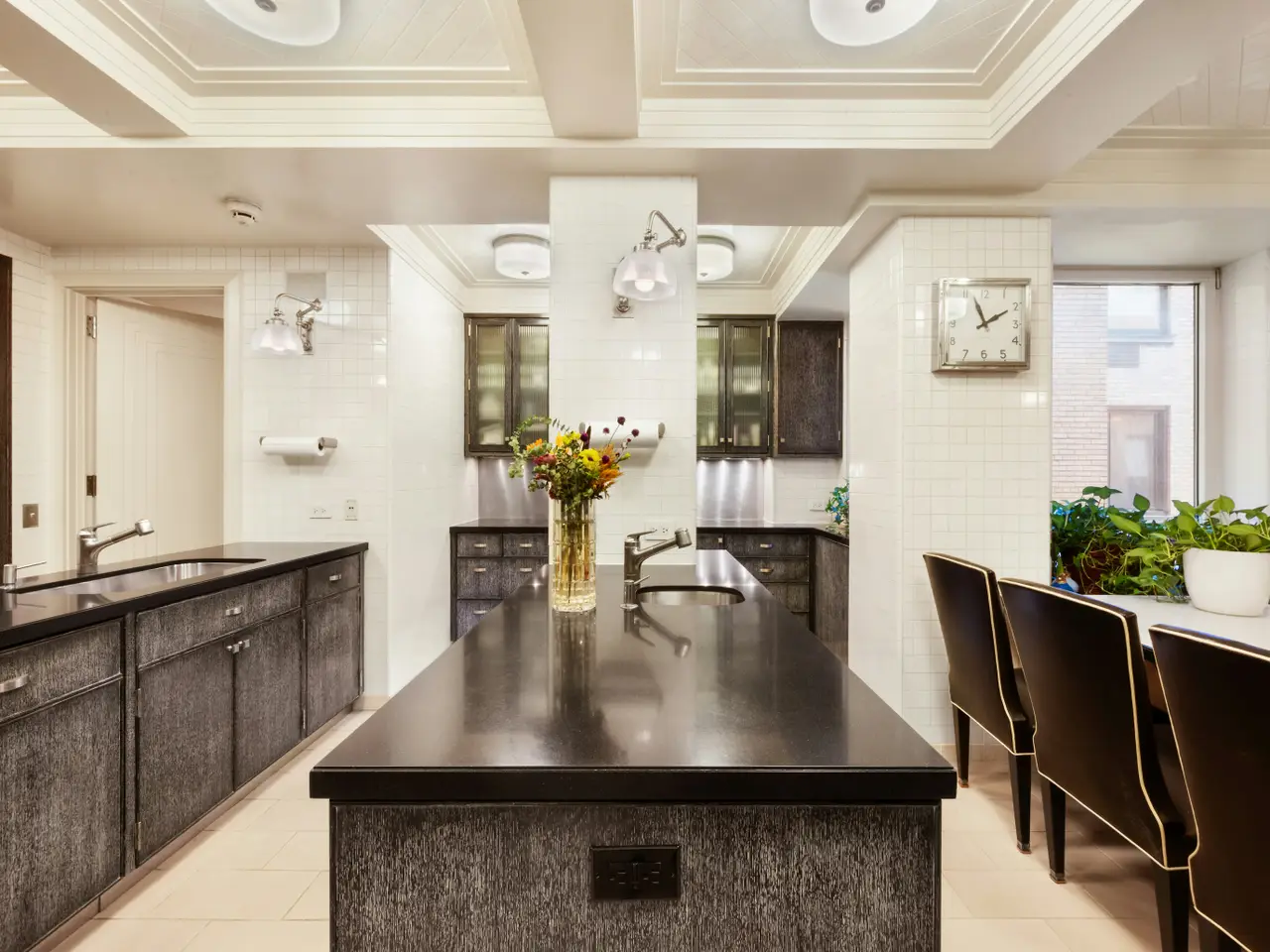 Art Deco Lover's Dream - Elegant and Gracious Living Overlooking Central Park Don't miss Apartment 6B at the prestigious Brisbane House - a stunning Classic 8 residence with breathtaking views of Central Park. This home beautifully combines grand scale with comfortable living, featuring a timeless Art Deco motif and impeccable attention to detail. Step into a majestic double-entry foyer that not only welcomes you but offers ample storage. From here, you enter an expansive corner living and dining area overlooking Central Park. Highlighted by a gas fireplace and custom Venetian plaster walls, this space is as elegant for entertaining as it is inviting for quiet relaxation. For book lovers and media enthusiasts, a cozy adjacent library/media room showcases custom shelving made of rare Bubinga wood is perfect for your favorite books and collectibles. The chef's kitchen is a dream: an expansive eat-in space outfitted with top-tier appliances including a DCS 5-burner stove, Wolf oversized electric oven, double stainless-steel sinks, a high-end Miele dishwasher, and a Sub-Zero refrigerator/freezer. Matte black marble countertops provide generous workspace, while a full banquet seating six and custom black limed oak cabinetry complete the room. Additional conveniences include a full-sized LG front-loading washer and dryer, plus a staff room with a full bath. The primary bedroom comfortably fits a king-sized bed and offers four closets alongside a private dressing area. The ensuite bath is a luxurious retreat, featuring rich brown Emperador marble countertops and floors, contrasted with pristine white Thassos marble walls and trim. Radiant heated floors, custom mirrored cabinetry, and a curved glass shower wall add the perfect finishing touches. Two additional spacious bedrooms come with built-in desks and shelving, ideal for work or study. A third full bathroom, also with radiant heated floors, serves these rooms, along with an elegant powder room for guests. Additional highlights of Apartment 6B include through-the-wall air conditioning with individual thermostats, exquisite ceiling trim and moldings, pristine hardwood and marble floors, solid walnut doors, ten closets, and a dedicated home office. Built in 1926 by renowned architects Schultze and Weaver, the full-service coop at Brisbane House blends old-world elegance with modern amenities. Residents enjoy access to a well-equipped gym, secure bike storage, laundry facilities, and individual storage lockers. This is a rare opportunity to live in a glorious home with timeless charm and unparalleled views.