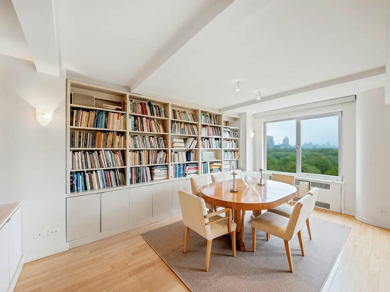 A truly one-of-a-kind offering-this expansive residence is the result of a seamless combination of three apartments in a prestigious full-service co-op directly facing Central Park. Located on a high floor of The Berkeley House, this gracious six-room home boasts spectacular, uninterrupted views of the park from oversized picture windows in the dramatic step-down living room and adjacent dining space. The stainless steel, windowed eat-in kitchen features top-of-the-line appliances and built-in banquette seating for four, perfect for casual dining. Off the generous central gallery, the primary suite offers a peaceful retreat, complete with a marble-clad en-suite bath, large windowed office or dressing area, and an enormous cedar-lined walk-in closet. An adjacent custom-designed dressing room (or library) includes built-in closets, a dresser, and specialized storage for garments, shoes, and accessories. The second bedroom-or library/office-also features an en-suite bath and a rare bonus: a secondary windowed kitchen with wine refrigerator. A separate entrance to this suite makes it ideal for guests, staff, or a private home office setup. Additional highlights include custom cabinetry throughout, abundant closet space, sleek blonde oak flooring, and thru-wall air conditioning. The Berkeley House is a full-service, 21-story co-op located in the heart of Midtown Manhattan, moments from the Plaza Hotel, Fifth Avenue's world-renowned shopping, Carnegie Hall, Broadway theaters, and Central Park. Situated on Billionaire's Row, this residence offers unparalleled access to the very best of New York City living.