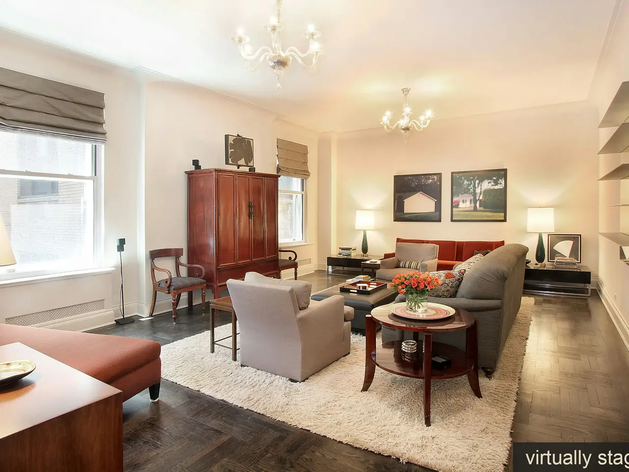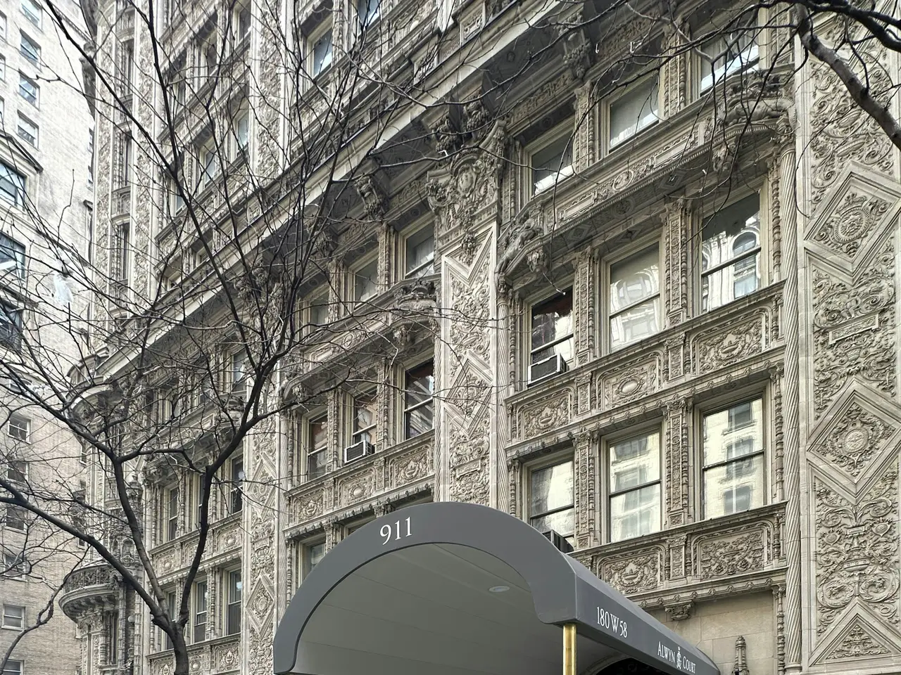 This graciously proportioned one bedroom with two baths offers 11-foot ceilings, a grand salon living room, a windowed dining area or office, a superbly renovated windowed kitchen and a primary bedroom with a separate dressing area lined with built-ins. Thru wall air conditioners and city-quiet windows add to your comfort. Apartment 7C at Alwyn Court is both a welcoming home and an elegant entertaining space. Alwyn Court is known as one of New York's most spectacular Landmark buildings. It is located one block from Central Park and Carnegie Hall while also a short walk to the theatre district and Lincoln Center. Pets and pied-a-terres are allowed; there is a separate storage space in the basement designated for this apartment. This is truly one of the best one bedroom apartments New York has to offer.
