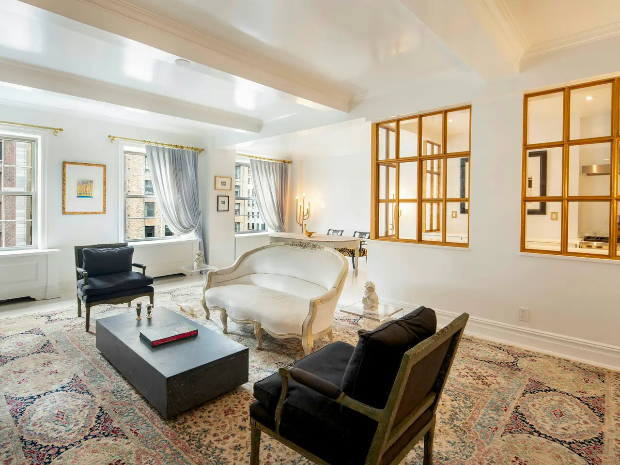 It feels like Paris when you enter this mint condition full floor residence from the private elevator landing. The gallery leads you to the glamorous living room complete with built-in storage flanking the fireplace with marble mantel from the legendary Plaza Hotel. Both the living room and dining room face west over Park Avenue, with a view of New York's most distinguished neighborhood. The innovative renovation of the kitchen features glass and metal French windows which allows abundant light to filter in. The appliances include Wolf, Miele and SubZero as well as beautifully designed lacquer cabinetry. In a separate wing there are two generous bedrooms. The primary bedroom has a generous walk-in closet with dressing area and a stunning marble bathroom with a heated floor. The second bedroom also comes with generous closet space, a marble bathroom and an added bonus room which can be used as a home office or nursery. In addition there is a laundry room and guest bathroom. There is a heat and air conditioning system installed through-out the apartment plus generous storage space as well as a storage unit in the basement of the building that transfers with the sale. Built in 1931 by Arthur Paul Hess, 891 Park Avenue is a 15 unit boutique co-op with a brick facade and three story limestone base. Amenities include a live-in Resident Manager and Doorman on duty 24 hours Friday to Sunday and 7AM to 11PM Monday to Thursday. There is a semiannual real estate assessment of $11,235 and a 3% Flip Tax. The building allows 50% financing and pets with Board approval.