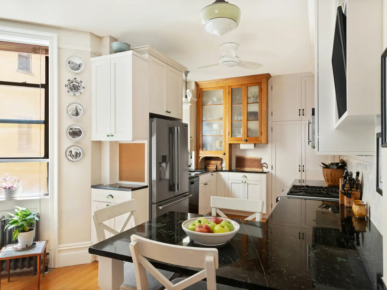 Pre-War Elegance Meets Modern Living Nestled on one of the most picturesque blocks in Morningside Heights, this move-in ready classic Edwardian 7 blends timeless pre-war detail with thoughtful modern upgrades for today's lifestyle. With soaring 9.5-foot ceilings, original millwork, and the solidity only pre-war construction provides, this gracious residence has been meticulously restored and reimagined to offer both elegance and comfort. The layout is exceptionally versatile: three bedrooms plus a library/music room with custom built-ins that can easily function as a fourth bedroom. Two newly renovated full baths feature top-tier fixtures and finishes. The oversized, sun-filled eat-in kitchen is a true chef's haven, outfitted with custom cabinetry, quality appliances, abundant storage, and a vented washer/dryer-perfect for both everyday meals and large gatherings. Beautifully preserved details abound, including 8-foot French doors that open from the dining room into the living room and original pocket doors leading to the library. The result is a graceful flow of entertaining spaces, balanced by a private bedroom wing ideal for living. The Amelie Built in 1911 and converted in 1985, The Amelie is an intimate 40-unit boutique cooperative with a live-in superintendent, storage available for a monthly fee, and notably low maintenance. A monthly assessment of $546.62 (Local Law 11) is in place through December 2025. 1% flip tax paid by seller. Prime Morningside Heights Location With the 1 train and multiple bus lines just steps away, daily life is effortless. Neighborhood staples include West Side Market, H Mart, and Duane Reade, along with an array of restaurants, cafés, and services. Columbia University, Barnard, Manhattan School of Music, and the Cathedral of St. John the Divine are all nearby. Riverside Park and its Green Park playground are just two minutes west, while Morningside and Central Parks are a short stroll east. This is pre-war living at its finest-classic, spacious, and perfectly connected. Welcome home.