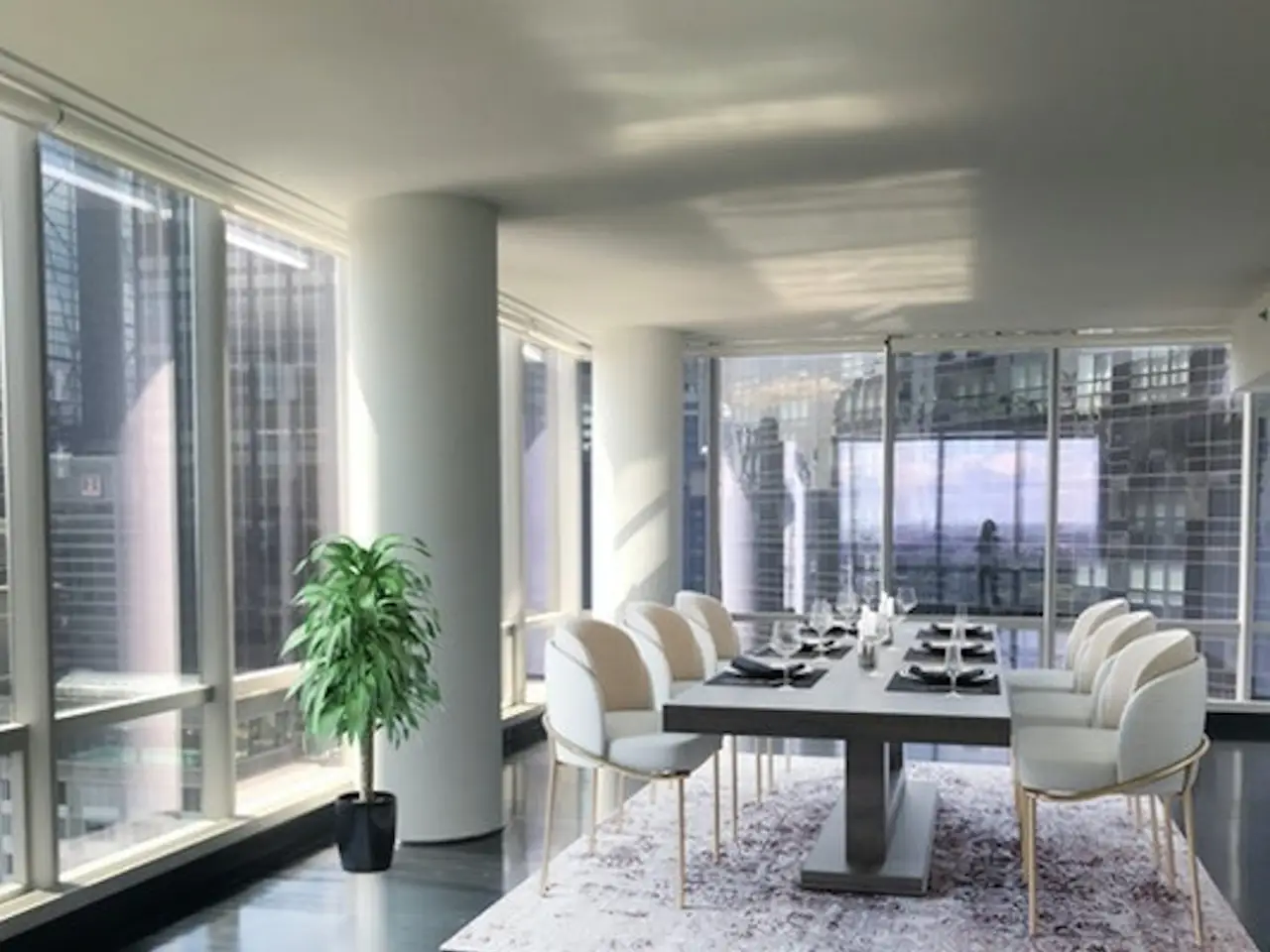 Your magnificent palace in the sky. Situated in the iconic One 57, this stunning home offers 4 bedrooms and 4.5 baths. Designed by Pritzer Prize winning architect Christian de Portzamparc with interiors by Danish designer Thomas Juul-Hansen, this stunning glass tower is the place to live. The apartment has three exposures including unobstructed Northern views of Central Park, Southern sunlight and Eastern views to the River. Enter into the spacious foyer leading into the long gallery and continue on into the dramatic living/ dining great room with floor to ceiling windows boasting unparalleled views of the park and city skyline. It is an ideal space for entertaining. The generously proportioned bedrooms, each with stunning views, have luxurious marble en-suite baths. The large eat-in kitchen has been custom designed by Smallbone and is equipped with top of the line appliances by Sub Zero and Miele, and the apartment also has a washer and dryer. Amenities include: 24 hour doorman and concierge, indoor pool, fitness center, screening room, library with billiards table, catered kitchen, private dining, on- site parking and hotel amenities and services from the Park Hyatt hotel. Electronic shades included.