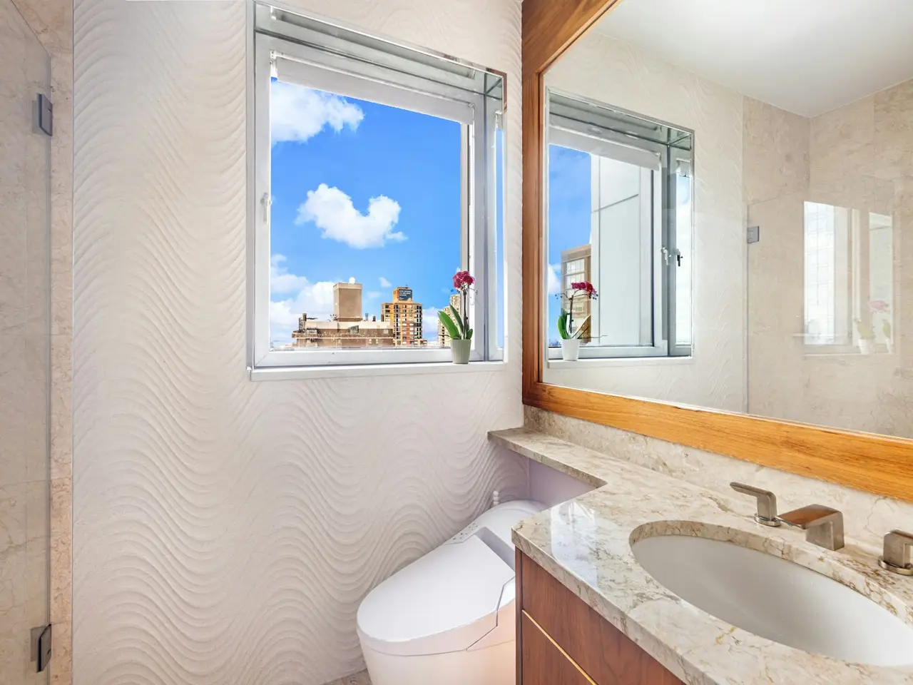 Serenity in the Sky with lifestyle living! Once in a lifetime Jewel in the sky. This condo is flooded with light featuring south city views and West to the Hudson River too! Taken back to the studs, this owner is all about serenity, calm & spa like living. The floor plan has been opened up, walls removed and plumbing and electric was upgraded to accommodate more bells & whistles and elevate this home to the next level. Calling all chefs! Unique to the building and the "E" Line this kitchen floor plate was totally redone including expanding and removing walls to create a much lighter feel. It features custom millwork cabinetry that was designed with deeper cabinets and there is a vented hood , instant filtered hot water and updated everything including the plumbing and gas lines so you can watch the clouds float by from your sink now! In addition to the oversized picture window there are high end appliances including Miele, Bosch and more! Residence 39E includes the sought after private new Miele washer dryer. There is also a new HVAC in the kitchen as well as updated plumbing and more! There are 2 Full bathrooms also renovated and the primary bathroom was gutted to the studs with updated plumbing too! The primary bathroom feels like something out of a high end European retreat! There is an Oversized Ovo silk deep soaking tub in glossy white and a rain shower (with waterfall option ) There are heated floors and a Duravit toilet too! The guest hall bathroom includes an oversized picture window with updated electric to accommodate an Ove brand bidet toilet. There is a walk in Marble shower, a porcelain sink and nickel hardware. The bedroom also was taken back to the studs with walls removed and relocated to now allow looking at the river from your bedroom instead of a wall! It also features a stunning white built in desk with a Caesar stone top and wood cabinetry and best yet a dreamy oversized picture window to watch the clouds float by. For space efficiency the owner installed the top of the line SICO brand power pack wall bed system with easy lift (murphy style). If you have an event there is more room for a party and dancing! There are smart home features throughout - voice command for lights, remote control shades and the Lutron brand smart light system switches. In addition there is the Control 4 - Sonos wired sound system and for those who dream of A/C in the winter you can have that 365 days a year too! This condo building also brings their A game with an elevated lifestyle living experience as well! To start if you prefer privacy when your guests visit this Central Park place established condo (100% owned) has a rare perk! Central Park Place condo owners have access to 4 hotel rooms in this residential condo for their guests at reduced rates for NYC. (Yup! In your very own private residential condo) .This Luxury condo also has tons of amenities managed by Elite brand. There is a state of the art fitness club with a pool and a fitness center that includes free weights and work out rooms with lots of equipment such as Cybex, Precor, Stair master, a boxing bag , yoga room , massage room, a sauna and locker rooms as well. The health club center has a party lounge space with a kitchen for events and a landscaped outdoor deck/ terrace with patio furniture and city views too! There is a 24 hour service oriented staff and best yet no more waiting! They are in the process of installing 4 brand new 2025 elevators! Thank you for your patience! This condo is pet friendly and is located right off Central Park South with 800 acres of nature , billionaires row, The shops at Columbus Circle with world class dining and envied international shopping experiences too! In addition you are near Nordstrom's, Lincoln Center, Whole Foods and convenient transportation out your door! You could not ask for anything more! (Taxes $942 per month reflect primary residence /$1150 is for non primary )