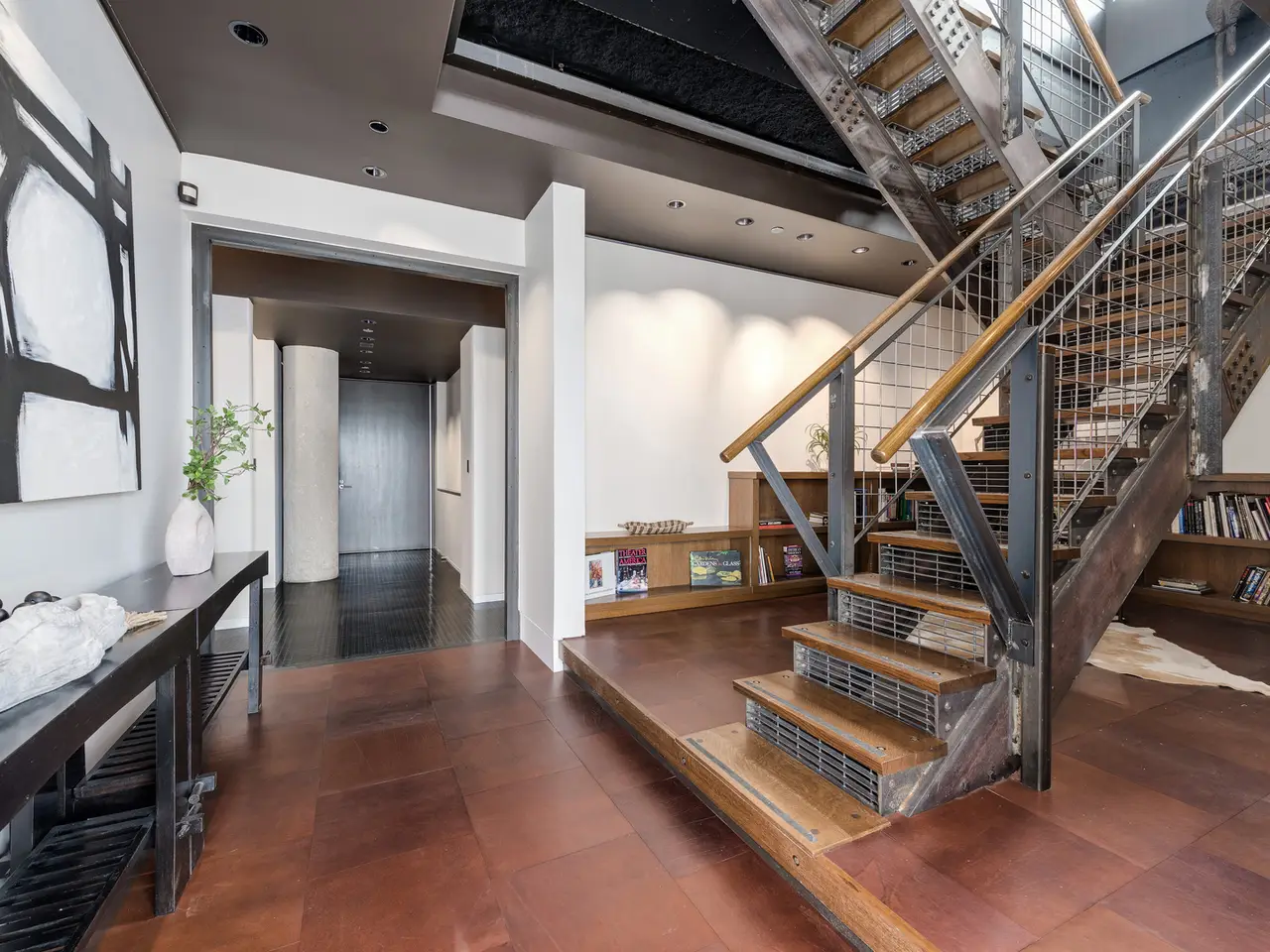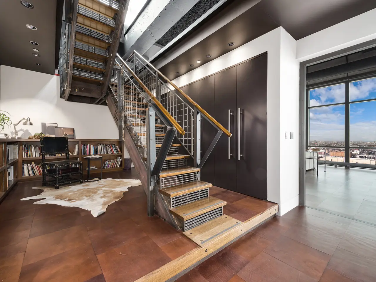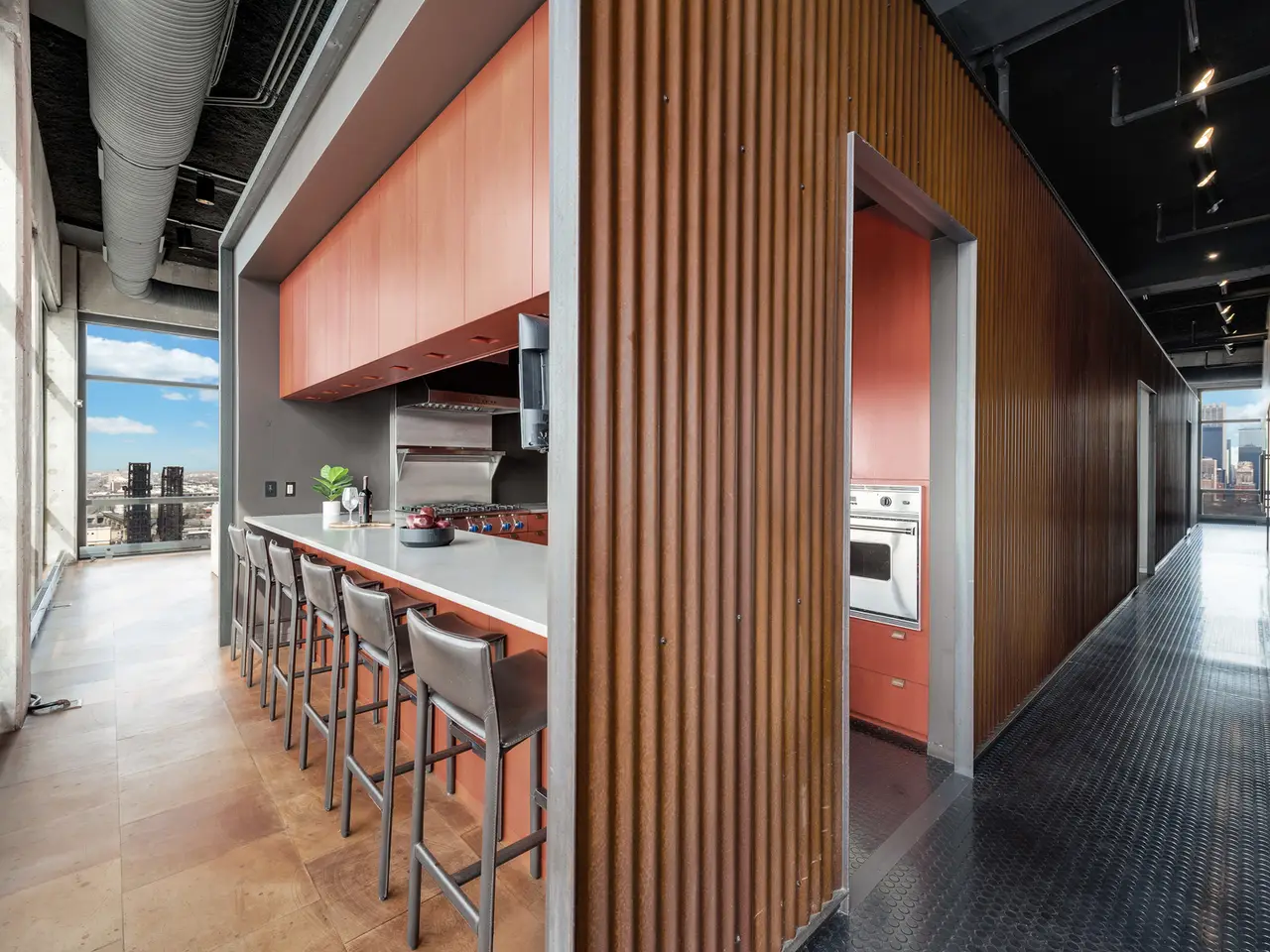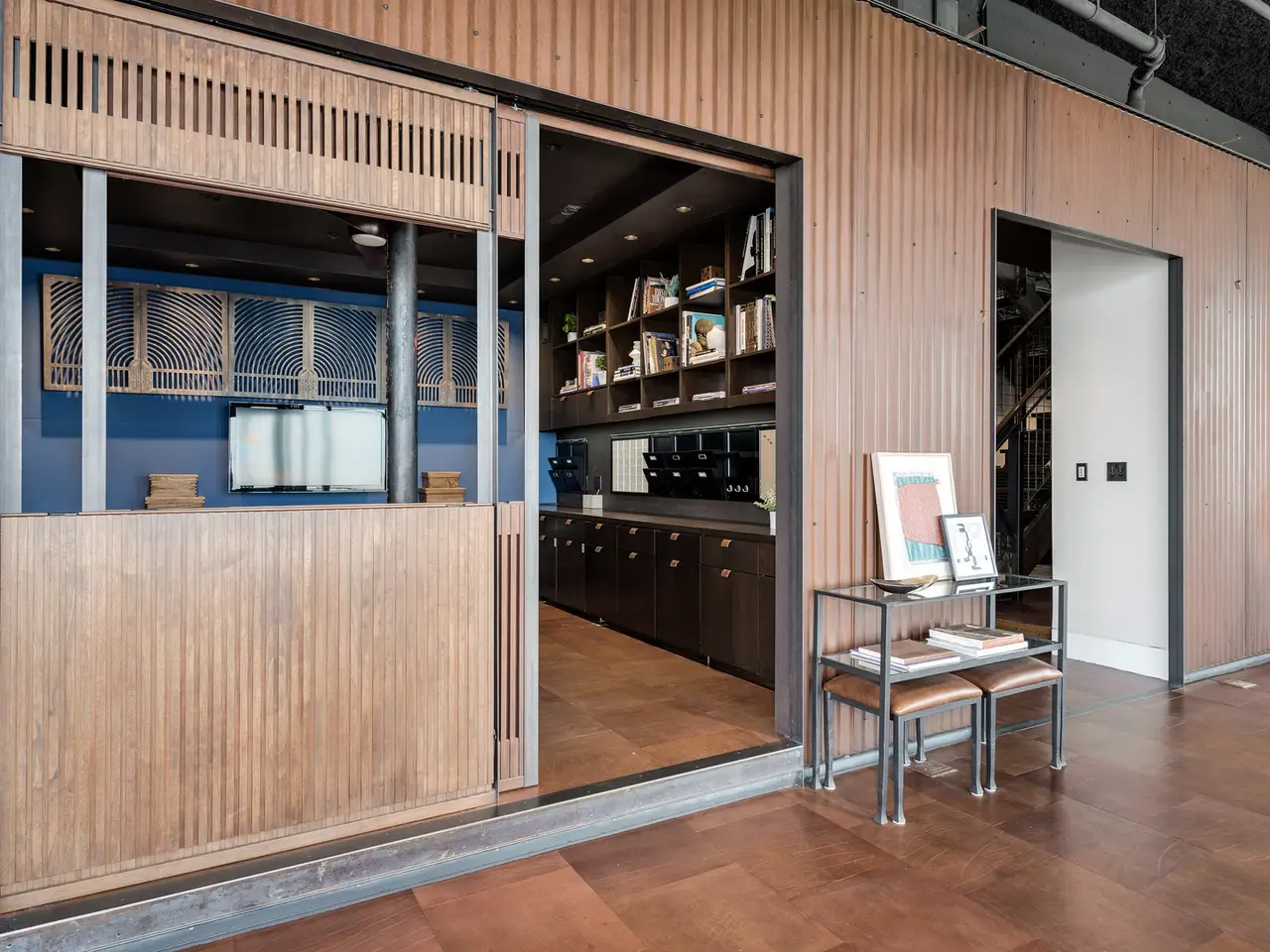 Custom-cut leather floors with COR-TEN steel walls