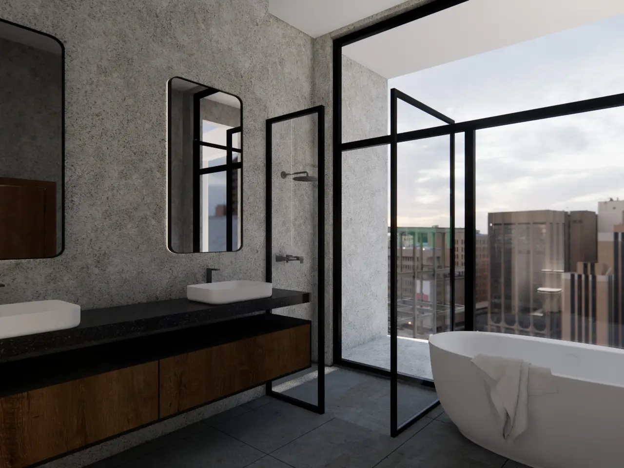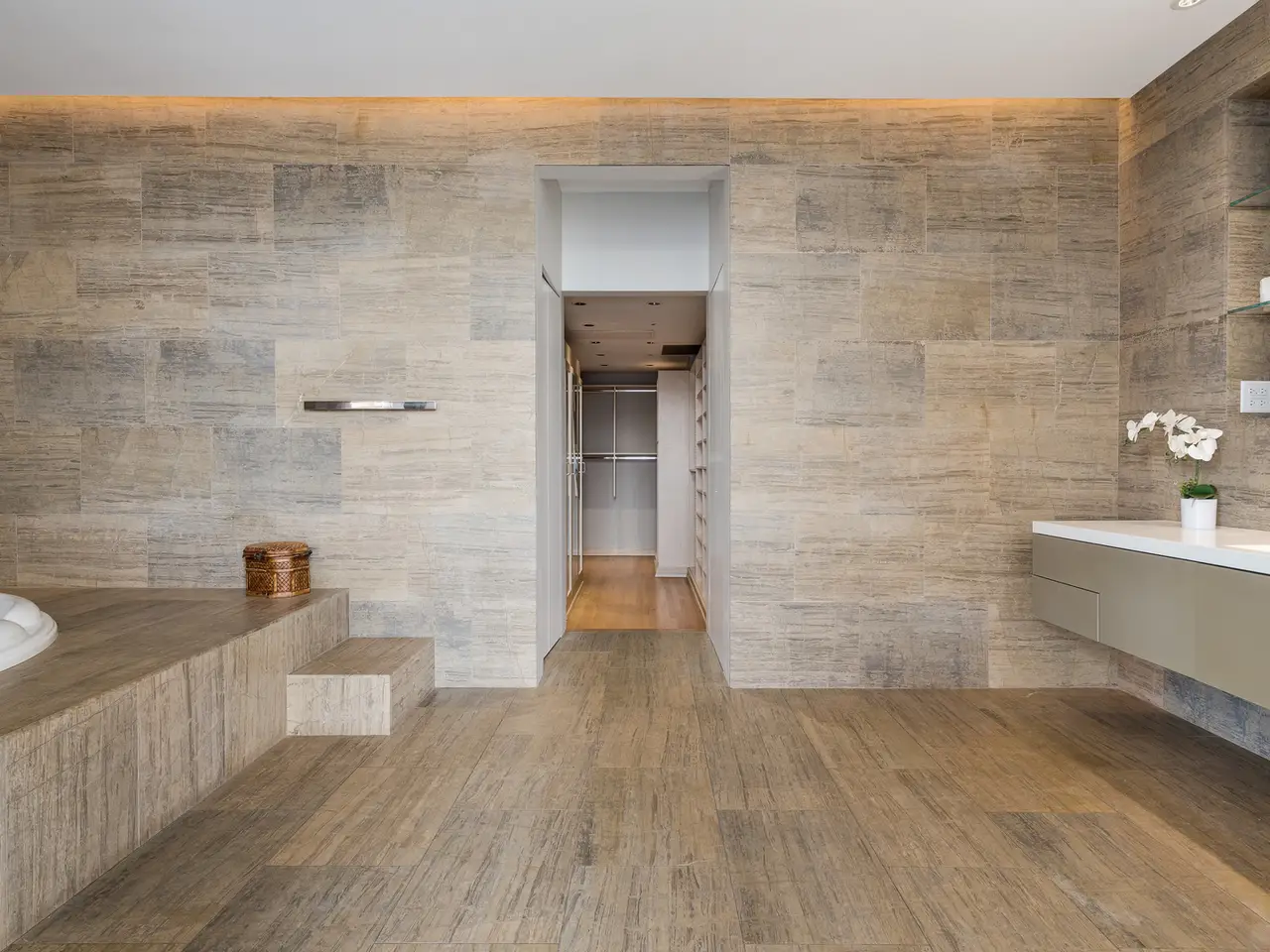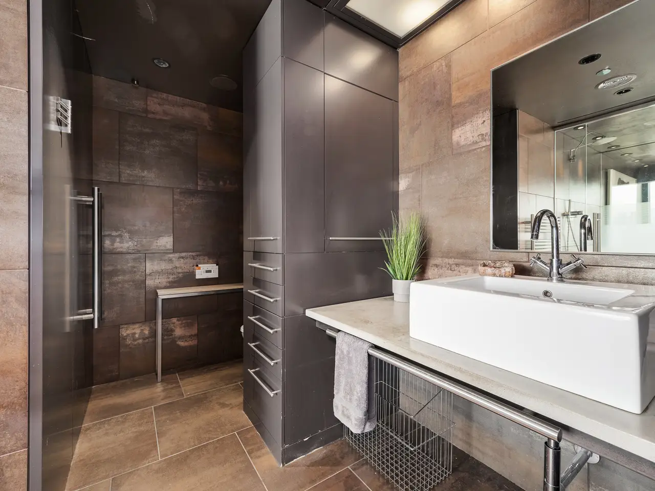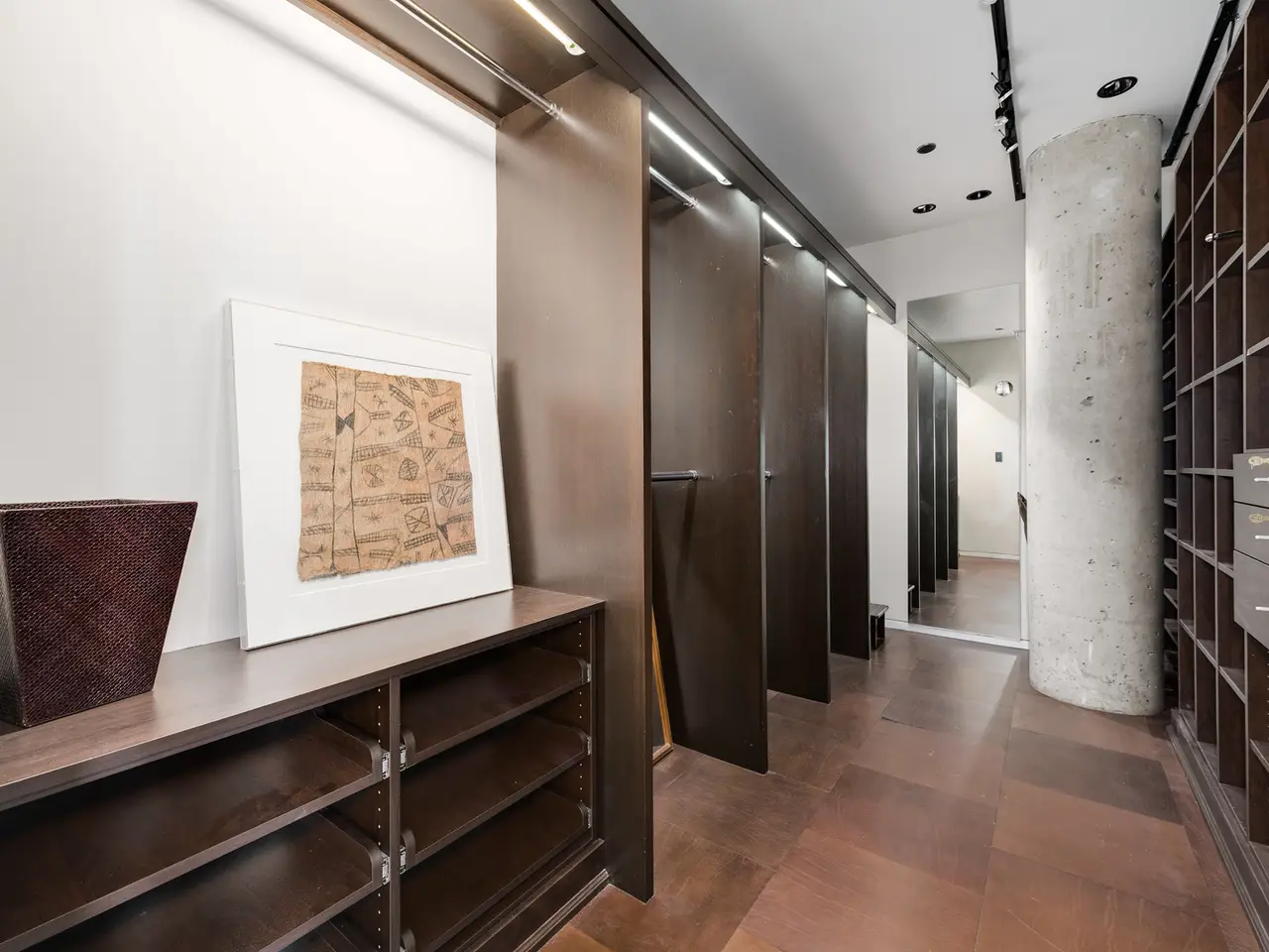 Custom-cut leather floors with COR-TEN steel walls