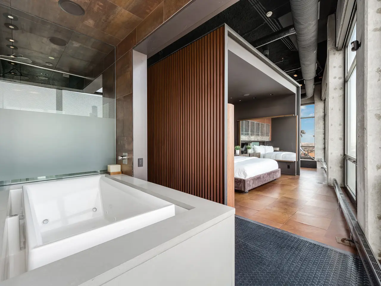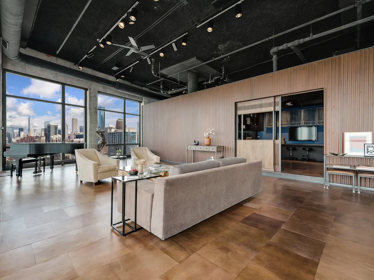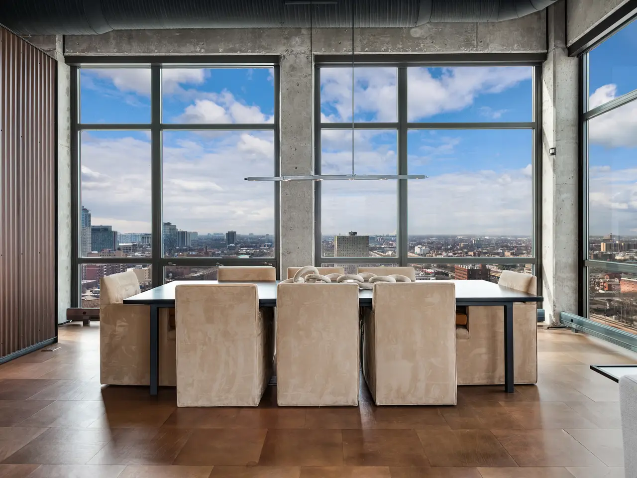 Step into a realm of unparalleled sophistication with this 6,000+ square foot penthouse at 1530 S State Street, where grandeur meets contemporary design. This unique duplex penthouse, designed by STL Architects, boasts 15-foot ceilings and expansive floor-to-ceiling windows that frame the awe-inspiring Chicago skyline. With three different exposures, each view is more breathtaking than the last, offering an unrivaled panorama that changes with the seasons and never gets old. The extraordinary residence is a testament to luxury and attention to detail, featuring one-of-a-kind architectural elements and the highest quality finishes. Custom-cut leather floors in the great room with COR-TEN steel walls running the entire length of the eighty foot long room (spelled that out to make sure don't think it's a typo) create a tactile experience unlike any other, while radiant heating along the windows ensures comfort and clear windows no matter the weather outside. The home includes four generously-sized bedrooms and five exquisite full bathrooms, each crafted with precision and richness. The property has two outdoor spaces; a sizable balcony in the primary suite and an oversized private roof deck (the only one in the building!) It offers a secluded escape with stunning views. Privately positioned at the end of the top floor, this home guarantees ultimate privacy and exclusivity. Two heated garage spots are included in the price. three more heated parking spots are available. Located in the vibrant South Loop, the building offers full-service amenities including 24/7 door staff, on-site management, a top-tier fitness center, on-site dry cleaning services and more. This penthouse is not just a residence, but a piece of art waiting to be cherished! Discover luxury living redefined in this South Loop masterpiece- a true must-see for discerning buyers seeking a home that stands a cut above the rest!