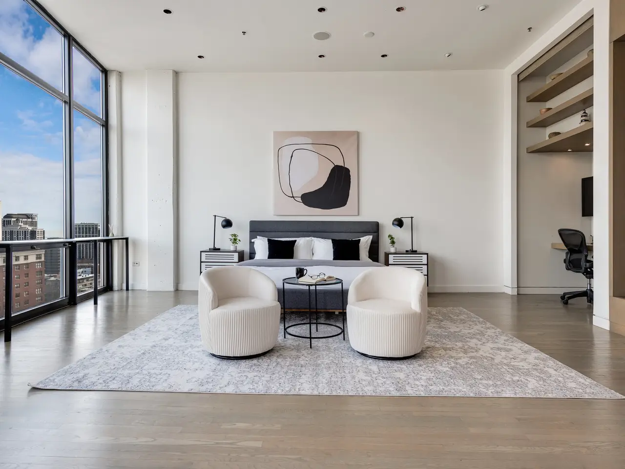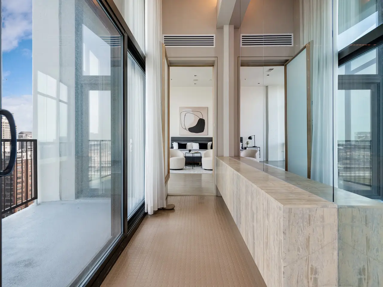 15-foot ceilings with floor-to-ceiling windows