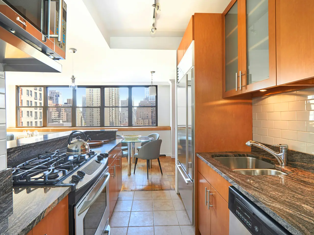 New to the market - A high-floor two-bedroom, two-bathroom home in move-in condition with a low monthly maintenance of only $2,081. The generous foyer has a coat closet and leads to the spacious living room bathed in sunlight through a wall of windows. There are custom built-ins, crown molding, and recessed lighting throughout. The open kitchen features stainless steel appliances, wood cabinets, glass tile backsplash, and marble countertops. A hallway leads to the large primary bedroom with a renovated en-suite bath. The second bedroom has an equally lovely bathroom accessed off the hallway. This home has higher ceilings than most in the building. Other amenities include through-the-wall air-conditioning, washer/dryer, and custom closets in every room. Currently, there is a low assessment of $100 per month. 239 East 79th Street is an extremely well-run cooperative with excellent financials. The halls and lobby have been recently renovated, and there is a beautifully landscaped roof deck. The building has a live-in super, 24-hour doorman, and garage. Pets are welcome.