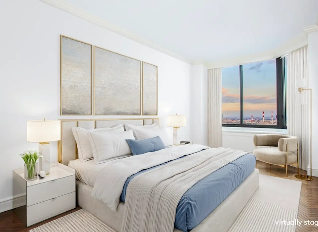 Luxury Condo with Stunning Skyline Views Located on the top floor of the E-Line apartments in the prestigious Bristol Plaza condominium, 35E is a custom designed corner residence offering luxury living and breathtaking views of the Manhattan skyline. Upon entering, you're greeted by a dramatic 9.4 ft ceiling and wall of windows with eastern exposures that fill the space with exceptional natural light. A powder room and closet/pantry are conveniently located on the right, leading to a large 22' x 20' living room. With the floor-to-ceiling corner windows, crown moldings, and custom built-in bookshelves, the space boasts both comfort and sophistication. Moving south, the dining area at the corner window bank enjoys panoramic views of the city. The living room flows into the large chef's kitchen, which features a 36" GE Cafe gas range, dishwasher, Sub-zero refrigerator, ample counter space and cabinetry, a breakfast bar with oversized southern windows, and hidden washer/dryer for convenience. The bedroom wing at the northern end of the apartment has an unobstructed view of the East River and the landmark buildings along the way. The primary bedroom (20'8" x 11'16") has an en-suite bath, two large closets with shelves and a built-in safe. The well-proportioned second bedroom is adjacent to a full bathroom and has a large closet. Both bedrooms have a ceiling height of 9.11 ft. Bristol Plaza is a 50-story luxury condominium on the Upper East Side with 295 residences. Residents enjoy white-glove service, including a full-time doorman and concierge, a residents-only health club with sauna, steam room, and massage rooms, a 50' glass-enclosed swimming pool surrounded by sun terraces, a resident lounge, a private circular driveway, and an on-site garage. The building is centrally located near the 4, 5, 6, N, W, R, Q, E, and M subway lines. Residence Features: - Panoramic Views of the Manhattan Skyline (South & East) - 4 Rooms / 2 Bedrooms / 2.5 Bathrooms - In-unit Washer/Dryer (Vented) - Custom Built-in Bookshelves - Floor-to-Ceiling Southeast Corner Windows - Double-pane Windows - Hardwood Floors - Exceptionally Quiet - 1,366 Square Feet - Full-time Door Staff & Concierge - On-site Parking Garage - Club Floor with Panoramic Views (fitness center, 50' glass-enclosed pool, sun deck, sauna, & resident lounge) - Direct Access to Lobby from Private Circular Driveway - Investment-friendly - 90% Maximum Financing - 2% Building Transfer Fee