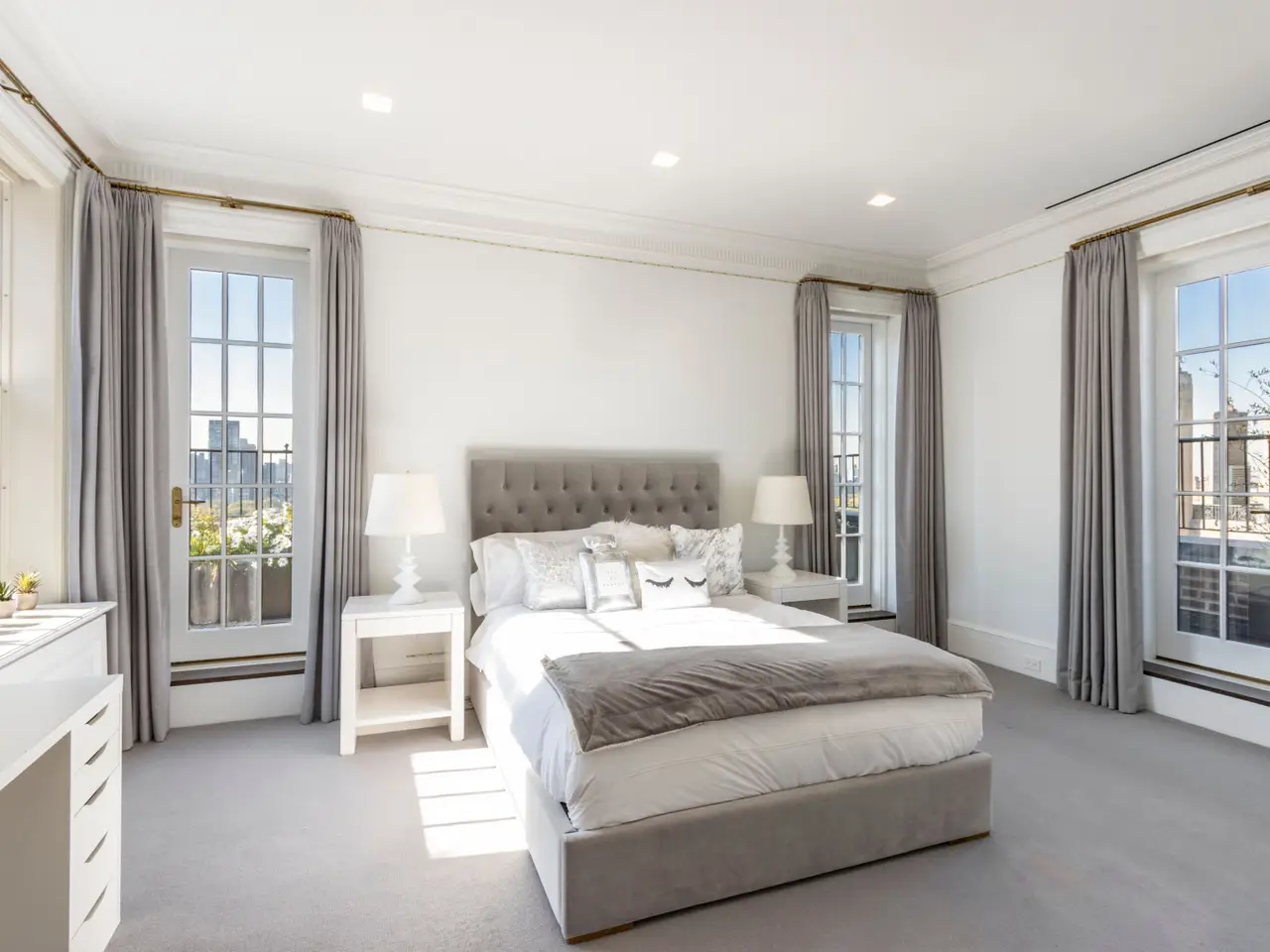 Triple Mint Park Avenue Penthouse This meticulously renovated 5,200 Sq Ft (approx.) penthouse duplex with wonderful Central Park and Manhattan Skyline views is located on the 19th and 20th floors of one of Park Avenue's most prestigious white-glove Prewar Cooperatives at the corner of East 71st Street. An oversized private elevator landing opens onto an elegant 21 ft. entrance gallery with an enormous picture window capturing breathtaking views of the Manhattan Skyline and Central Park. The gallery leads to a massive 35 x 22 Ft living room with soaring 11 ft. ceilings and three exposures; the Western exposure captures outstanding skyline and Central Park views. At the opposite end of the gallery is a wonderful corner library and a gracious formal dining room with floor-to-ceiling French doors opening onto the penthouse's north terrace. The vast and beautifully renovated eat-in-kitchen boasts three exposures and is bathed in natural sunlight throughout the day. The Western views from the kitchen captures Central Park and open blue skies, a rare feature in a Manhattan Pre-war kitchen. Adjacent to the kitchen is a large family room/fourth bedroom with a sunny Eastern exposure, and an adjoining guest bathroom. A separate laundry room, and a staff suite with a large private bath and a private terrace, complete this wing of the home. A gracious staircase leads to the bedroom level of the penthouse on the 20th Fl. At the top of the staircase are French doors opening onto a wonderfully landscaped double terrace with open views westward to Central Park. Each of the three bedroom suites on this level are completely private with no adjoining walls, and each has a renovated en-suite windowed bathroom. The enormous corner primary bedroom suite enjoys floor-to-ceilings window and French doors opening onto the stunning terrace with Central Park views. The oversized suite has excellent closet space and a separate dressing room opening into a beautifully renovated sundrenched bathroom. A staff room on the second floor of the building is available for sale separately. 730 Park Avenue was built in 1929, and designed in the golden age of New York apartment house construction by F. Burrall Hoffman Jr. and Lafayette A. Goldstone in the Neo-Renaissance and Neo-Jacobean style. Standing 20 stately stories on the Southwest corner of Park Avenue and 71st Street, the building contains 40 generously proportioned apartments. Residents enter via an impressive entrance on a quiet side street, and receive the services of two full-time doormen, a Resident Manager, and several handymen. This prestigious full-service cooperative also offers a fitness room, storage, and an excellent location in the center of the Upper East Side, minutes from fashionable boutiques, premier restaurants and art galleries on Madison Avenue. There is a 3% flip tax paid by the purchaser, and the building now permits 50% financing.