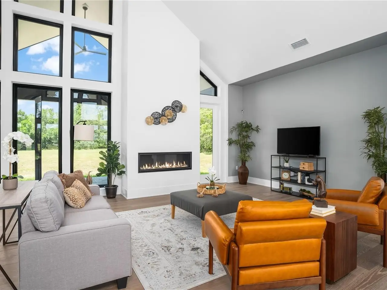 Introducing this extraordinary 5 bedroom, 4 bathroom, custom built home by Atlantic Design, situated on over 3 acres within an exclusive gated community of Dylan’s Grove. You are welcomed with a beautiful front porch that seamlessly flows into floor to ceiling premium Fibrex Composite windows, known for their superior insulation, durability, and low maintenance. Inside you will find an expansive living room with 18’ vaulted ceilings, filled with natural light, accompanied by an indoor vented 50” gas fireplace. Every detail was thoughtfully considered from the grain-matched wood cabinetry in the kitchen, custom-designed by Straw & Co Woodwork, to the upgraded Fisher and Paykel appliances, to the high-end fixtures and hardware that ties the space together. Adjacent to the kitchen is the butler’s pantry, offering additional custom cabinetry, a second sink refrigerator, dishwasher, and extra countertop space and storage. Also included in this space is a chic wet bar, perfect for crafting cocktails and hosting gatherings. This home is not only lavish but also environmentally conscious, boasting energy-efficient features throughout. From high-performance windows to efficient 18 Seer, 2 stage air conditioner systems with wi-fi thermostats, every detail has been carefully considered to minimize energy consumption without compromising comfort. The home has also been pre-wired for an alarm system, (6) gigabit ethernet ports, a wifi system, (4) exterior cameras, smart door locks, and automated lights. The exterior of the home is equally captivating, with an oversized covered lanai-already pre-wired and plumbed for a summer kitchen. The outdoor gas fireplace with stone veneer makes it a perfect sanctuary for those looking to cozy up and soak up the panoramic views. Schedule your private tour today and experience the epitome of luxury living.