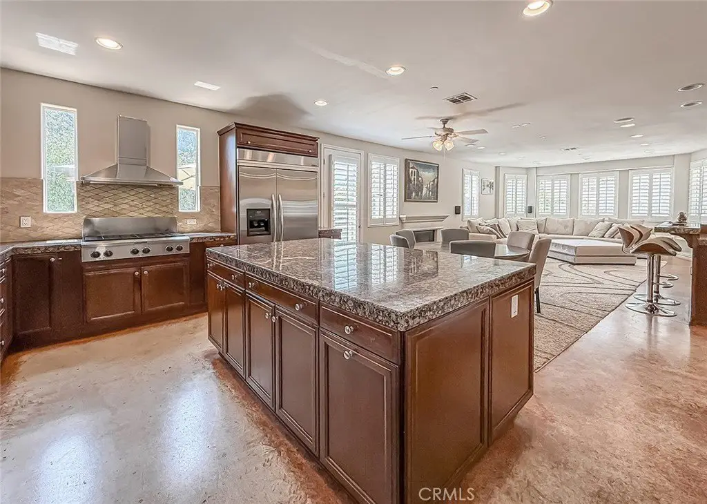 Cocina gourmet con electrodomésticos de acero inoxidable.