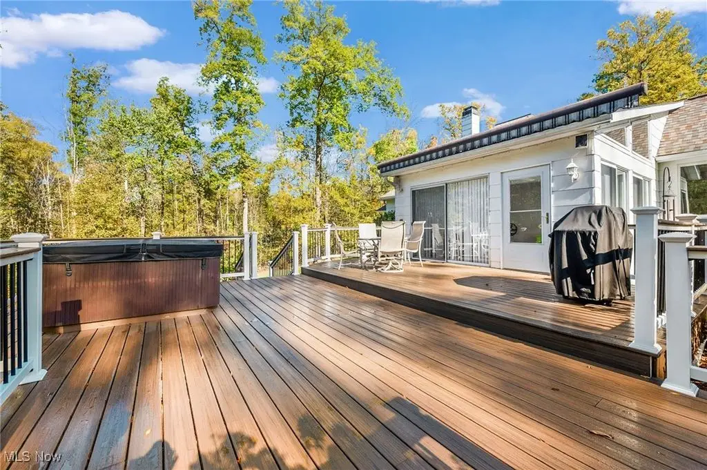 Nestled on 3.25 acres, this impressive 5-bedroom, 3.5-bath home offers the perfect blend of comfort, space, and timeless charm. The main level features a spacious primary suite, formal dining room, and inviting living and family rooms with a cozy fireplace. Enjoy wooded views year-round from the bright four-season sunroom or relax on the deck in the hot tub. Upstairs provides three comfortable bedrooms and full bathroom, while the fully finished lower level offers over 2,000 sq. ft. for recreation, a gym, or a media room. A shed and outbuilding add extra storage and flexibility. Experience comfort, space, and timeless charm--all in one exceptional home.