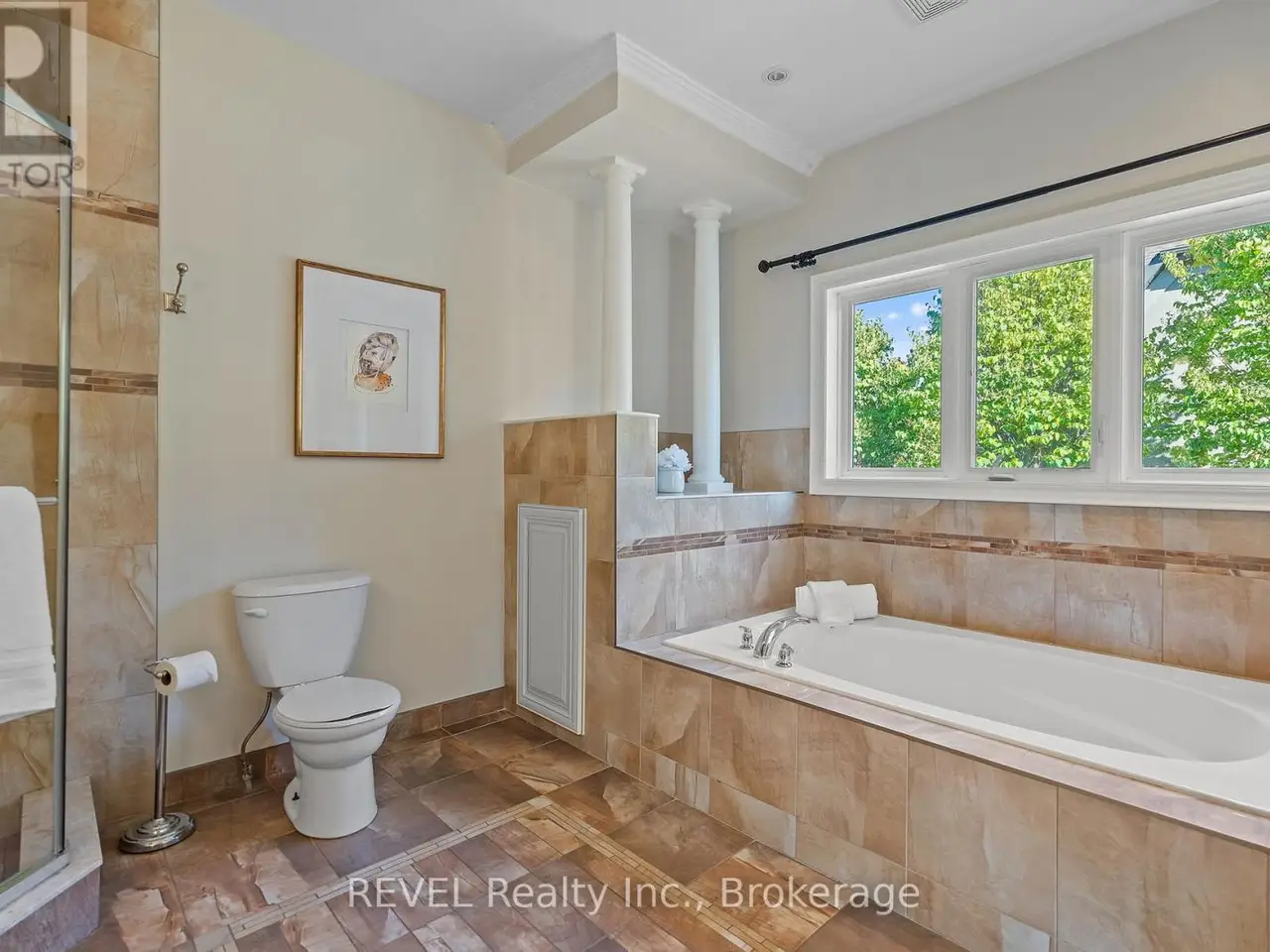 Nestled in one of Niagara's most prestigious neighbourhoods, Calaguiro Estates in North-End Niagara Falls, 6718 Domenic Crescent offers an extraordinary residence on a 100 x 193 ft estate-sized lot. With approximately 3,000 sq.ft. of above-grade living space, this custom-built home is designed with sophistication and comfort in mind. The main floor impresses with 20-ft soaring vaulted ceilings, a fireplace, and an open-concept layout that perfectly blends elegance and function. The custom kitchen features granite countertops and ample cabinetry, flowing seamlessly into the bright living and dining areas filled with natural light. The main floor primary suite offers a 5-piece ensuite and walk-in closet, while main floor laundry and a dedicated office add everyday convenience. Upstairs, the open-concept family room overlooks the main level, enhancing the homes spacious, connected feel.The basement features a finished bedroom and a 5-piece bathroom, with plenty of additional space to complete another bedroom, a workout room, and a recreation area. It also offers a walk-up to the backyard. Outside, the expansive, fully fenced yard lined with mature cedars provides exceptional privacy and the potential to create your dream resort-like retreat. Ideally located near the QEW, top schools, and all North-End Niagara Falls amenities, this stunning property embodies luxury living in one of Niagara's most coveted communities. (id:7434)