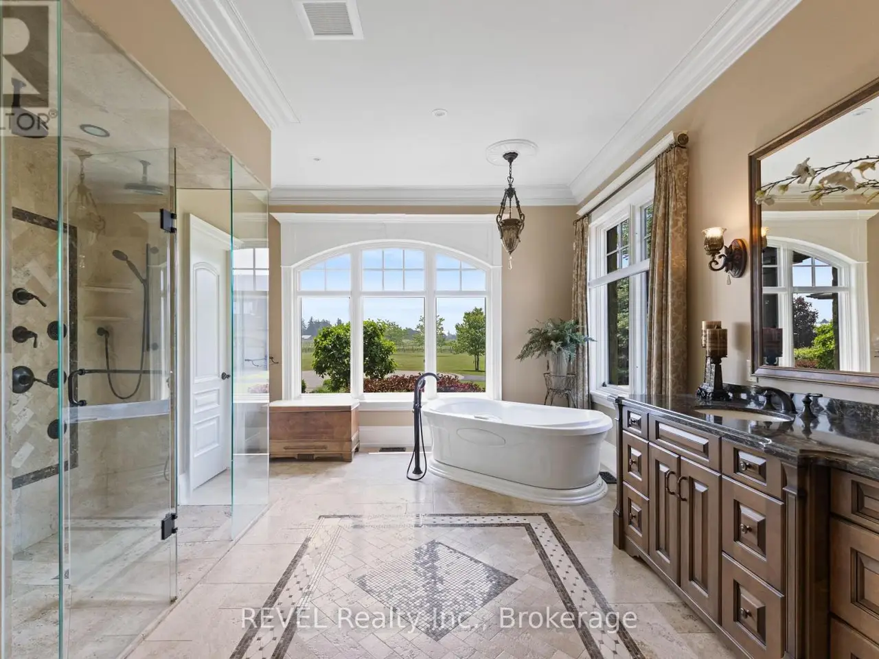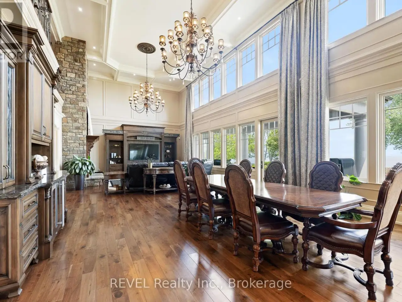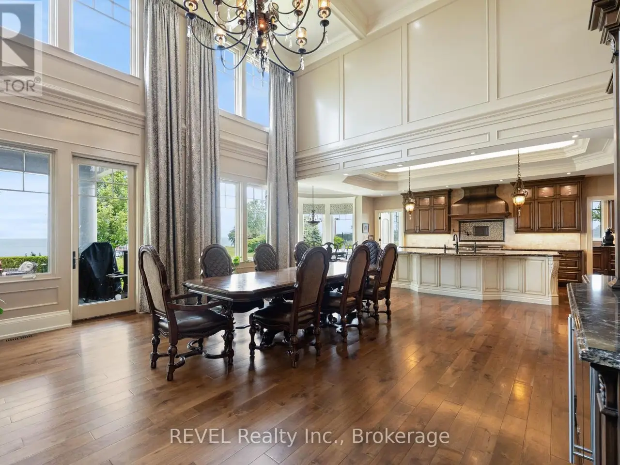 Exclusively positioned on nearly 13.4 acres of pristine land, this stunning luxury estate boasts nearly 500 feet of Lake Ontario shoreline with breathtaking views in Niagara-on-the-Lake. The property features a gated .5KM driveway flanked by meticulously maintained vineyards, leading to a masterpiece of design and construction. No detail has been spared in the creation of this unparalleled home, showcasing the finest materials, cutting-edge technology, and craftsmanship of the highest order. Enjoy resort-style living with a private pool, tennis courts, and a 4466 sq/ft bonus building, including 1936 sq/ft of finished space with 2 bathrooms. A state-of-the-art generator ensures uninterrupted power, while the dock and boat lift offer easy access to the lake. Experience the finest in both comfort and elegance at this exceptional waterfront retreat. (id:7434)