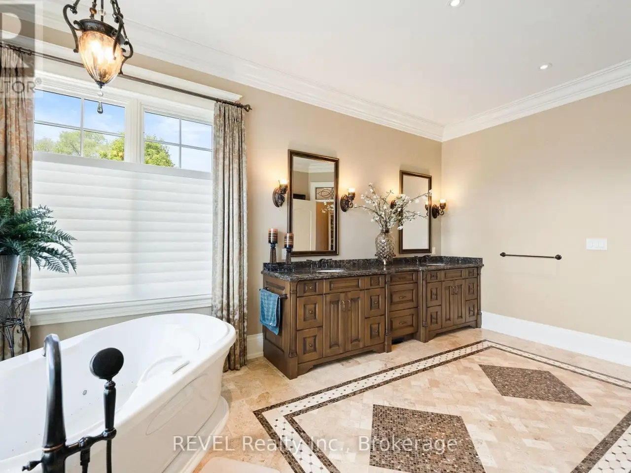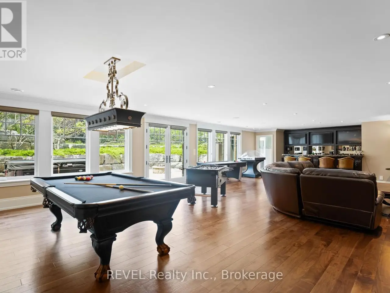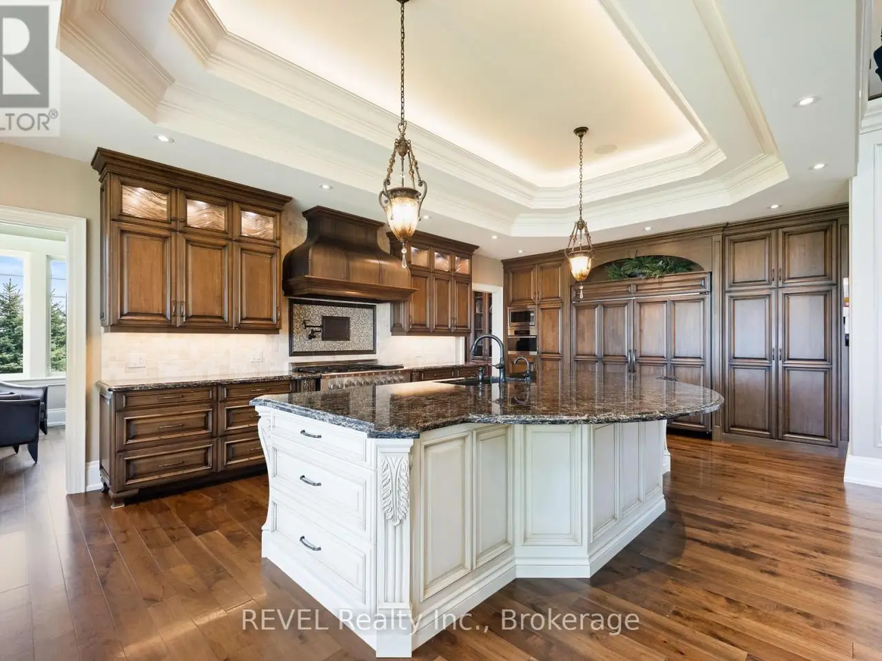 Exclusively positioned on nearly 13.4 acres of pristine land, this stunning luxury estate boasts nearly 500 feet of Lake Ontario shoreline with breathtaking views in Niagara-on-the-Lake. The property features a gated .5KM driveway flanked by meticulously maintained vineyards, leading to a masterpiece of design and construction. No detail has been spared in the creation of this unparalleled home, showcasing the finest materials, cutting-edge technology, and craftsmanship of the highest order. Enjoy resort-style living with a private pool, tennis courts, and a 4466 sq/ft bonus building, including 1936 sq/ft of finished space with 2 bathrooms. A state-of-the-art generator ensures uninterrupted power, while the dock and boat lift offer easy access to the lake. Experience the finest in both comfort and elegance at this exceptional waterfront retreat. (id:7434)