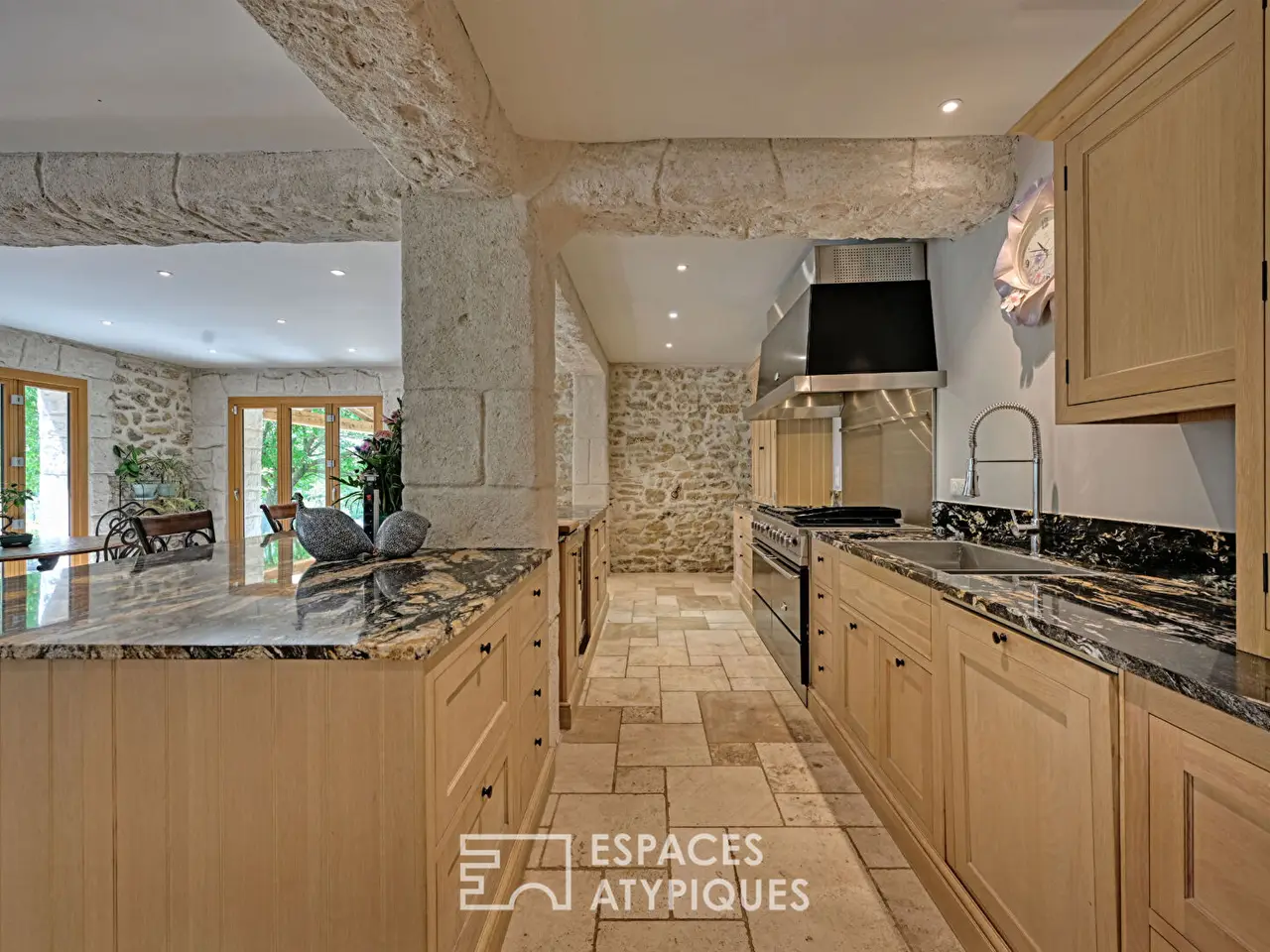 Esta encantadora casa de campo de aproximadamente 450 m² se encuentra en el corazón de un hermoso entorno natural, a pocos minutos de Sommières. La propiedad, recientemente renovada con materiales de alta calidad, combina con elegancia el encanto de antaño con el confort moderno. Al llegar, descubrimos las hermosas fachadas de piedra natural que dan testimonio del carácter y la autenticidad de la casa. El interior revela volúmenes de gran belleza y una distribución armoniosa de los espacios. El salón abovedado, de aproximadamente 73 m², impresiona por sus techos altos y su cálido ambiente, realzado por una chimenea de piedra y un altillo abierto que amplía el espacio con luminosidad. La cocina-comedor de 57 m² encarna la elegancia y la cordialidad: equipada con materiales nobles y equipamiento de alta gama, ha sido diseñada como un auténtico espacio habitable, ideal para cocinar, recibir invitados y compartir momentos inolvidables. Esta amplia cocina se abre a un espacio exterior cubierto, diseñado como un cálido salón de verano, abierto a la naturaleza circundante. En la planta superior, las cómodas habitaciones y los baños, renovados con gusto, ofrecen preciosas vistas despejadas hasta el Pic Saint-Loup. Un apartamento independiente de 65 m² completa la propiedad, con salón y cocina nueva en la planta baja, además de la zona de noche en la planta superior, ideal para recibir invitados o para una recepción. La propiedad se encuentra en el corazón de una finca privada de 3,9 hectáreas, un auténtico entorno verde que invita a la tranquilidad. Los exteriores, cuidadosamente diseñados, exhiben una paleta de paisajes mediterráneos: prados naturales, senderos arbolados, jardín de flores y olivar. Hay una amplia zona de piscina, acompañada de su caseta de piscina equipada, ideal para disfrutar plenamente de los días soleados en un entorno tranquilo y sin molestias. Los amantes de los caballos también encontrarán su felicidad aquí gracias a las instalaciones ecuestres de calidad: paddocks, refugios, prados y una escuela de equitación. Numerosas dependencias, cobertizos y almacenes completan el complejo con su funcionalidad. El jardín alberga más de 60 olivos, lo que permite la producción de su propio aceite de oliva, así como una notable colección de antiguos rosales que difunden sus singulares fragancias y embellecen cada rincón del jardín. El entorno natural, amplio e íntimo a la vez, confiere a esta propiedad una atmósfera única de serenidad y refinamiento, ideal para disfrutar del aire libre sin sacrificar la elegancia ni la comodidad. Sin duda, una propiedad excepcional que debe descubrir sin demora. CLASE ENERGÉTICA: B / CLASE CLIMÁTICA: A. Gasto energético anual medio estimado para uso estándar, establecido a partir de los precios de la energía para el año 2025: entre 3027 y 4095 EUR. La información sobre los riesgos a los que está expuesta esta propiedad está disponible en el sitio web de Georisques: www.georisques.gouv.fr. Contacto: Claudine 06.22.17.01.66REF. 11843 Información adicional * 10 habitaciones * 7 dormitorios * 1 baño * 4 aseos * Superficie exterior: 39.000 m² * Impuesto sobre bienes inmuebles: 5.374 € Certificado de eficiencia energética Consumo de energía primariab: 92 kWh/m²/año Vivienda de alto rendimiento*A*92 kWh/m²/año3* kg CO2/m²/añoB*C*D*E*F*G Vivienda de bajo rendimiento* De las cuales emisiones de gases de efecto invernaderoa: 3 kg CO2/m²/año Bajas emisiones de CO2*3 kg CO2/m²/añoA*B*C*D*E*F*G Emisiones de CO2 muy elevadas Costes energéticos anuales medios estimados para un uso estándar, indexados a años específicos 2021, 2022, 2023: entre 3.027 € y 4.095 € Suscripción incluida Honorarios de agencia Los honorarios incluyen el IVA y son a cargo del vendedor Mediador