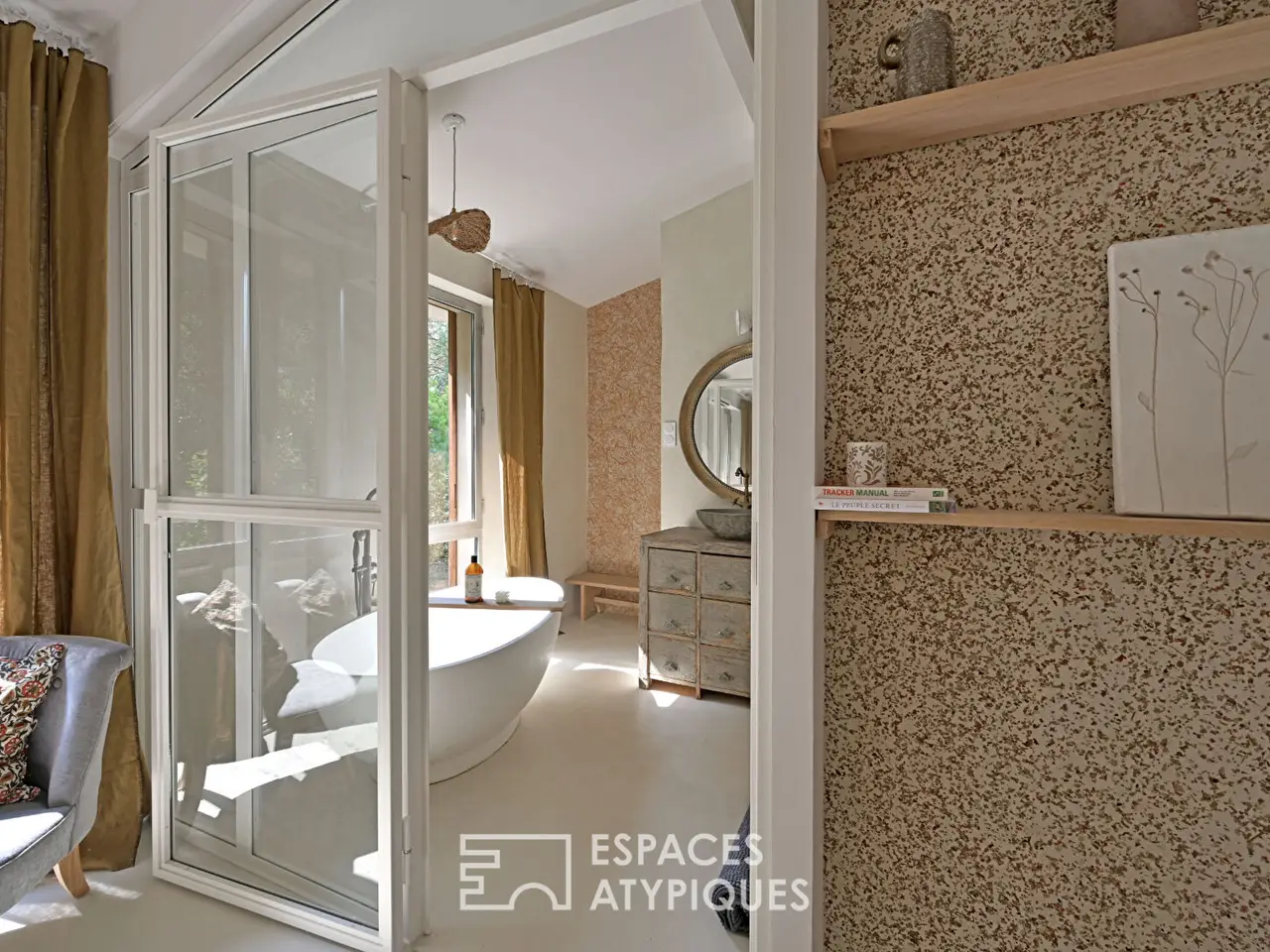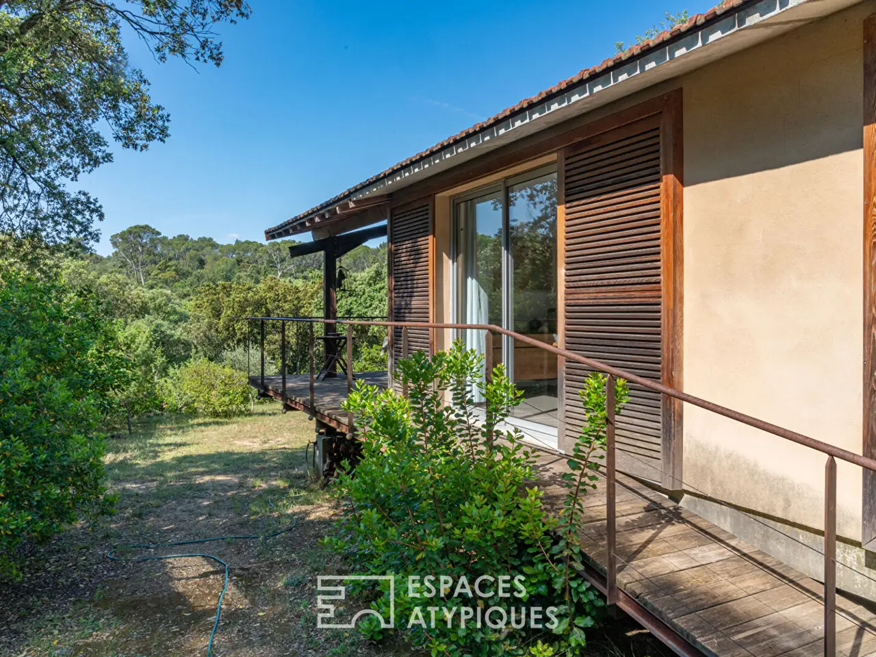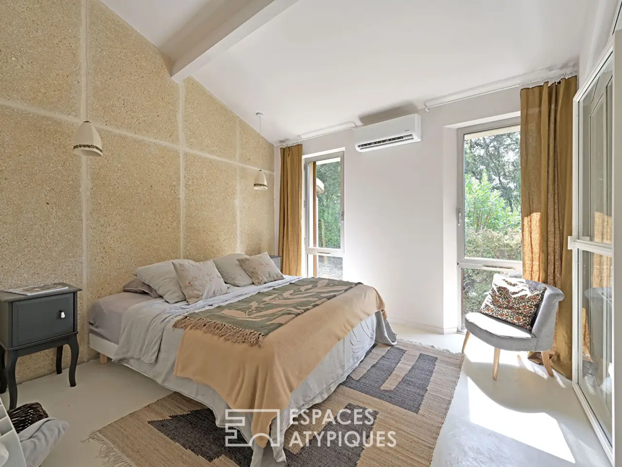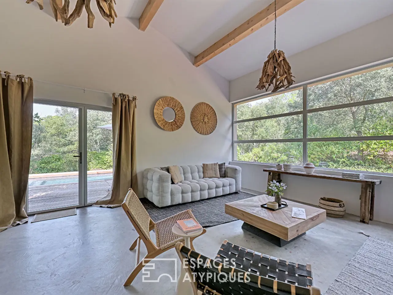 I invite you to discover the warm atmosphere of this extraordinary property consisting of 2 single-story architect villas set in absolute calm, in the tranquility of a private park, a true bubble of nature, of more than 4,000 m.The property is located in a hilly area between Nimes and Montpellier, 30 minutes from the beaches and in the heart of a dynamic village close to all amenities.Recently renovated with remarkable care, the two villas with their strong character reveal elegant interiors, dressed in a warm and refined atmosphere.The first house, with a surface area of 139m2 on one level, offers a beautiful living room-kitchen area decorated with a wood stove and benefiting from a pleasant feeling of volume generated by beautiful high ceilings.These living spaces are largely open to the exterior and in particular to this incredible covered terrace which can be seen by transparency from the entrance of the house.The 'treehouse' feel is omnipresent on this large suspended terrace, where you can relax while admiring the unobstructed view of an ocean of plants. Absolute calm reigns here, allowing you to fully recharge your batteries.The house also features a superb suite with a designer bathroom, two other bedrooms, a separate shower room, and an office.The second house, a former painter's studio with a distinct loft feel, is divided into tiers over just under 100 sqm: a sublime suite with its own transparent shower room, then two high-ceilinged living spaces lit by large openings onto the garden.A characterful kitchen completes the space.The living room opens onto a sun-drenched terrace, where the heated pool invites you to relax overlooking the garden. Further on, a summer shower is cleverly hidden among the lush vegetation. Here, a decidedly Balinese atmosphere reigns.This is a rare opportunity to acquire a unique property, where harmony with nature blends with warm, contemporary comfort in a highly sought-after area.ENERGY CLASS: D / CLIMATE CLASS: C Estimated average amount of annual energy expenditure for standard use, based on energy prices for the year 2023: between EUR1,502 and EUR1,726 Information on the risks to which this property is exposed is available on the Georisques website: www.georisques.gouv.frContact: Claudine 06 22 17 01 66REF. 12423Additional information* 8 rooms* 4 bedrooms* 2 bathrooms* 1 bathroom* Outdoor space : 4000 SQM* Property tax : 1 679 €Energy Performance CertificateEPC blank or in progress* Of which greenhouse gas emissionsb : 8 kg CO2/m2.yearLow CO2 emissions*A*8kg CO2/m2.yearB*C*D*E*F*GVery high CO2 emissionsEstimated average amount of annual energy expenditure for standard use, established from energy prices for the year 2023 : between 1502 € and 1726 €Agency feesThe fees include VAT and are payable by the vendorMediatorMediation Franchise-Consommateurswww.mediation-franchise.com29 Boulevard de Courcelles 75008 ParisInformation on the risks to which this property is exposed is available on the Geohazards website : www.georisques.gouv.fr