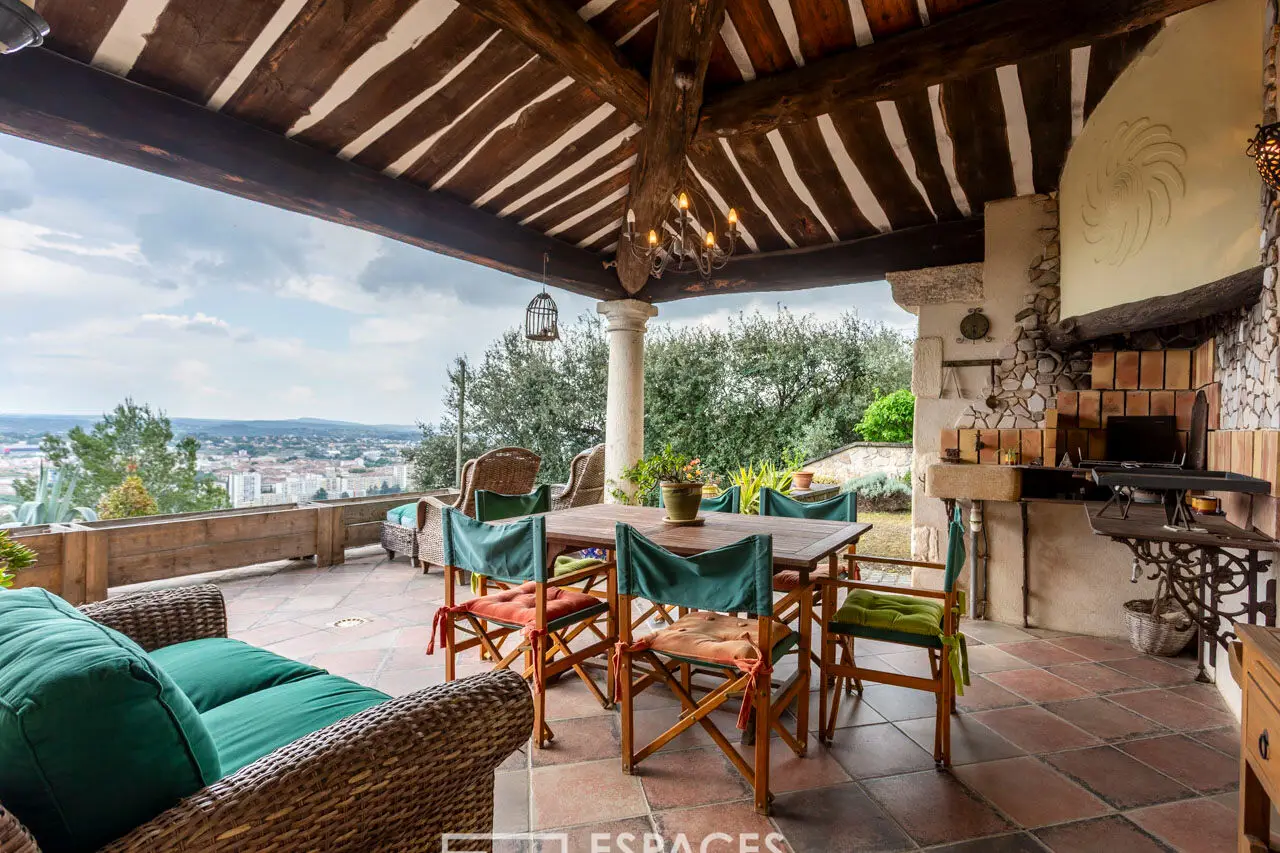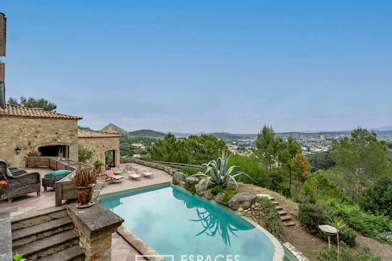 Located in the Hermitage district of Ales, this magnificent property covers 265 sqm on 10,000 sqm of land. Built in 2005, it offers an extraordinary panoramic view of the town center and the Gardon River, which runs through the town.Spread over 3 levels, the property, entirely facing the terraces to the south and east, offers a large living room, an open kitchen, 3 bedrooms, 2 bathrooms, one with a sauna, 1 shower room, and 3 toilets. Also on the 3rd level, there is an office and a 6th room for an additional bedroom, with a shower room, and a 4th toilet.Finally, its land is divisible and buildable, allowing 4,000 sqm to be preserved to guarantee the privacy of the house and offer 3 building plots of 2,000 sqm each, below.A large garage completes the property.A favorite for this rare property for sale!Contact: Axel Renault 07 60 85 28 55Energy class C: 114 - Climate class B: 9. Estimated annual energy expenditure for standard use: between EUR2,220 and EUR3,060.REF. 10689Additional information* 7 rooms* 5 bedrooms* 2 bathrooms* 1 bathroom* Outdoor space : 10000 SQM* Property tax : 4 133 €Energy Performance CertificateEPC blank or in progress* Of which greenhouse gas emissionsb : 9 kg CO2/m2.yearLow CO2 emissions*A*9kg CO2/m2.yearB*C*D*E*F*GVery high CO2 emissionsAgency feesThe fees include VAT and are payable by the vendorMediatorMediation Franchise-Consommateurswww.mediation-franchise.com29 Boulevard de Courcelles 75008 ParisInformation on the risks to which this property is exposed is available on the Geohazards website : www.georisques.gouv.fr