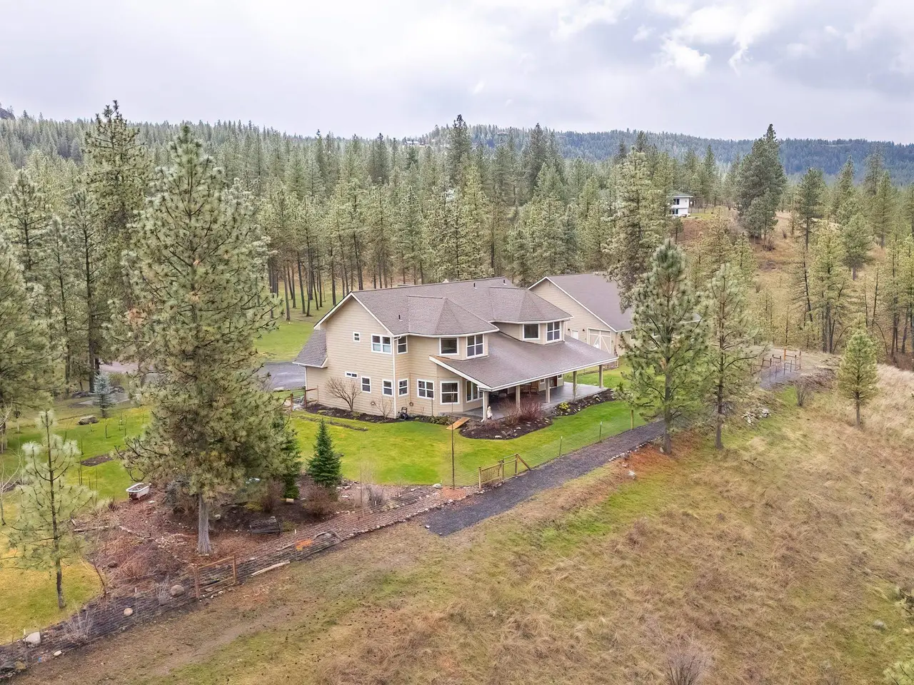 Welcome to this remarkable custom-built home, perfectly situated on 10 acres of park-like grounds with breathtaking views of Lake Spokane. This energy-efficient home boasts zonal Geothermal heating and cooling. The chef’s kitchen is a dream, offering ample cabinet space, double ovens, and a spacious walk-in pantry. The main floor includes a guest suite with an attached bath, a cozy family room, a formal living room, an office, a half bath, and a mudroom for added convenience. Upstairs, you’ll find a large master suite, two generously sized bedrooms, a laundry room, and another full bath. Don’t miss the impressive 687 sq. ft. bonus room, perfect for entertainment or additional living space. For car enthusiasts and hobbyists, the home features an attached 3-car garage and a massive 40x62 detached shop with radiant floor heat in the center bay, making it ideal for year-round use. Enjoy sunsets and endless river views from the expansive back patio that extends the length of the home.