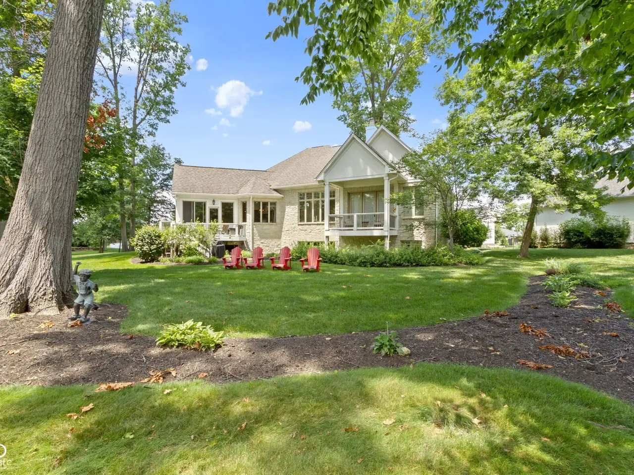 Luxurious custom built home with breath taking views of the 13th hole on the Jack Nicklaus Signature Sagamore golf course! Open floor plan that lends itself to relaxing! Great room with rare eucalyptus hardwood flooring, raised ceiling, wall of windows, built in bookcases and gas fireplace! Gourmet eat-in Chef's kitchen with light cherry cabinets, center island with breakfast bar, gas cooktop, big pantry and top of the line appliances! 18x16 master suite with tray ceiling, step in shower with dual shower heads, soaking tub and custom designed walk in closet! Private office with French doors, warm paneled wood and built ins! Formal dining room with crown molding! Stairs lead down from the garage to full finished lower level with 9' ceilings, daylight windows, 2 bedrooms, 2 full baths, wet bar, game room, theater area with surround sound and wine cellar! Stairs down from the garage lead to custom workshop area and extra storage! Sunroom features stone walls, gas fireplace, built in commercial grill with exhaust system that will allow grilling year round! Deck with shade from oak trees looking over the course! Convenient to shopping, dining, Hamilton Town Center, parks and much more! Award winning Noblesville Schools! Truly one of the best lots/views in all of Sagamore! Move right in and enjoy!