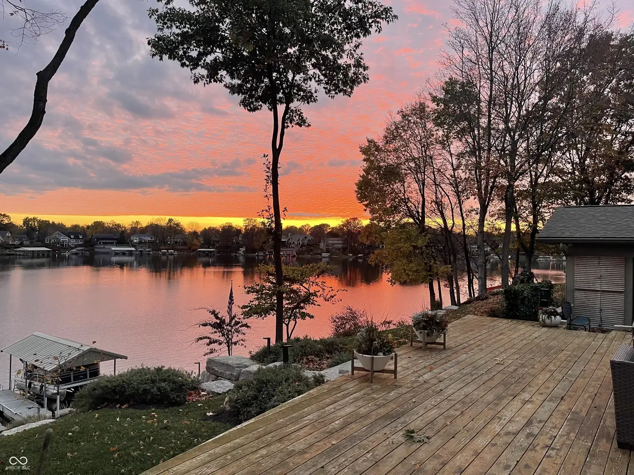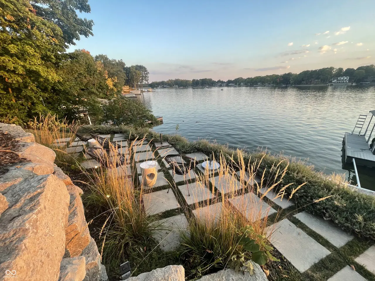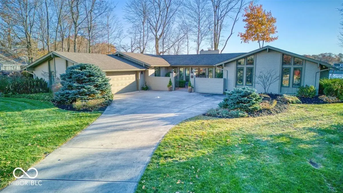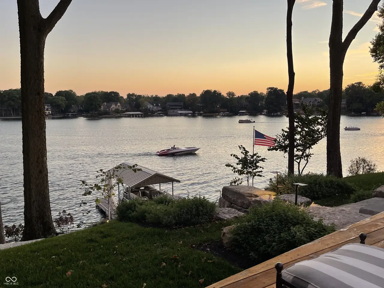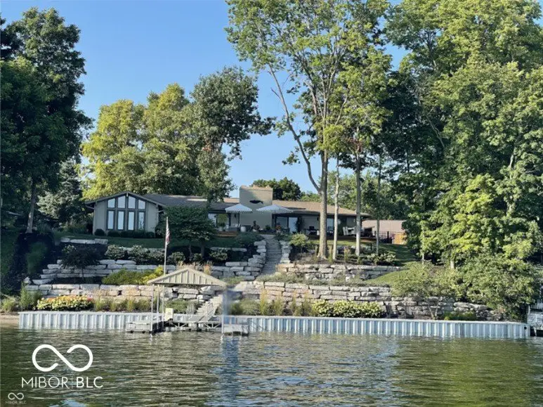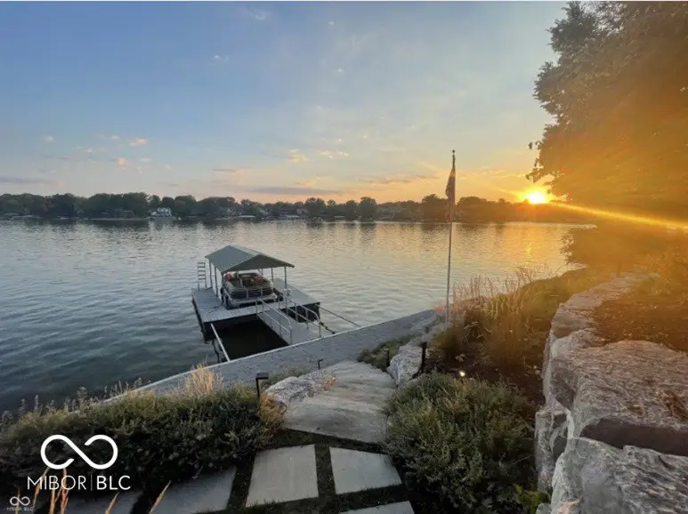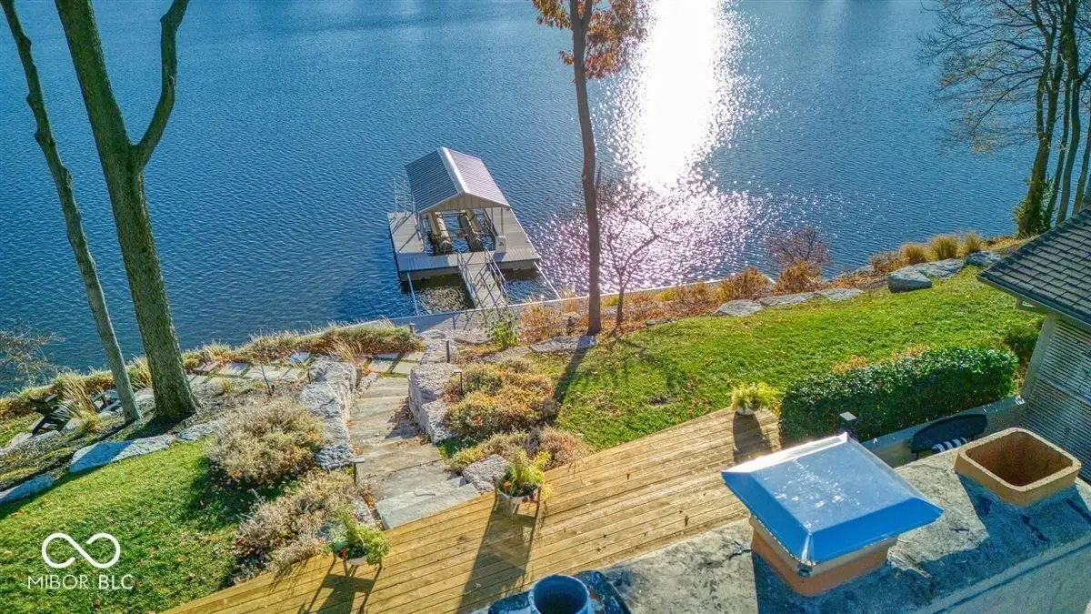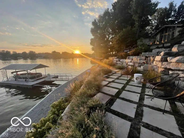 Experience the best of lakefront living in Noblesville, Indiana with this stunning $1.4M California-modern ranch home on Morse Reservoir. Perched atop the coveted North Harbour shoreline, the home commands panoramic sunset views over the quiet waters of Morse Reservoir's sailing basin. Enjoy the peace of living in the no-wake zone with quick access to fast water from your 115-frontage foot shoreline, restored metal-roof boat dock and a newly-placed steel pile shore wall for carefree, scenic enjoyment. Beautifully remodeled inside and out, this 3-4 bedroom, 2.5 bath residence celebrates its unique 1970 California ranch character while incorporating high-end updates. Standout features include: Expansive 1,000 sq ft cedar deck for spectacular entertaining and relaxation, Outdoor shower and Jacuzzi spa just off the primary bedroom suite, Fully reimagined kitchen with custom Amish cabinetry (2017), and luxury vinyl plank flooring throughout (2022), Generous concrete driveway, fenced dog run, upscaled landscape lighting, and refreshed windows and doors for comfort and curb appeal. Enter through a welcoming courtyard with gates and enjoy seamless indoor-outdoor living for gatherings or quiet nights overlooking the water. The 2021 landscape transformation designed by Vive Landscapes and constructed by RK Excavation adds the finishing touch, complemented by a large deck for soaking in the serene setting. This meticulously maintained home is perfect for those seeking peaceful full-time residency or a luxurious weekend retreat in Hamilton County's premier lake community. See supplemental information for even more upgrades and features. Don't miss out on the BEST property on Morse Reservoir!