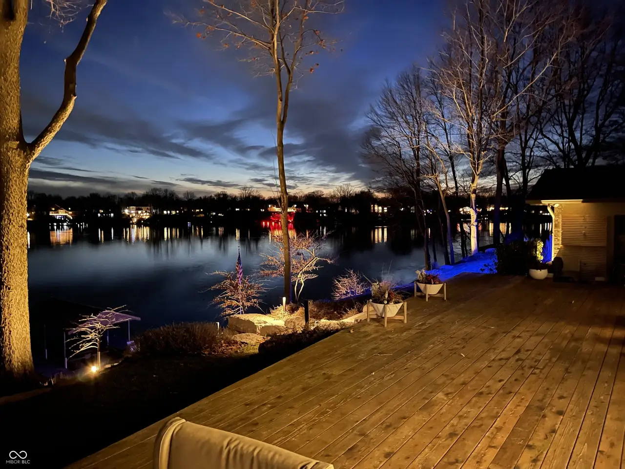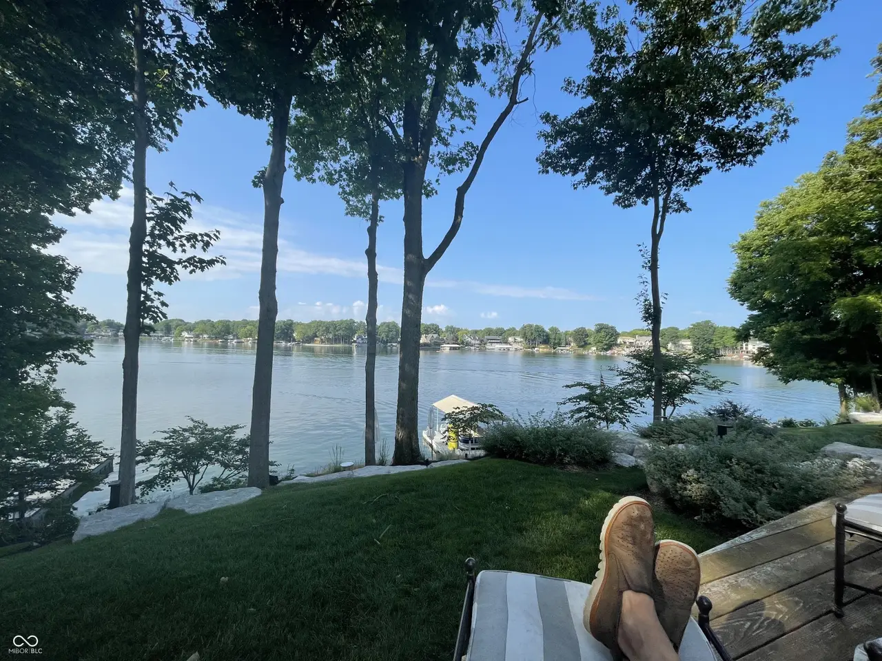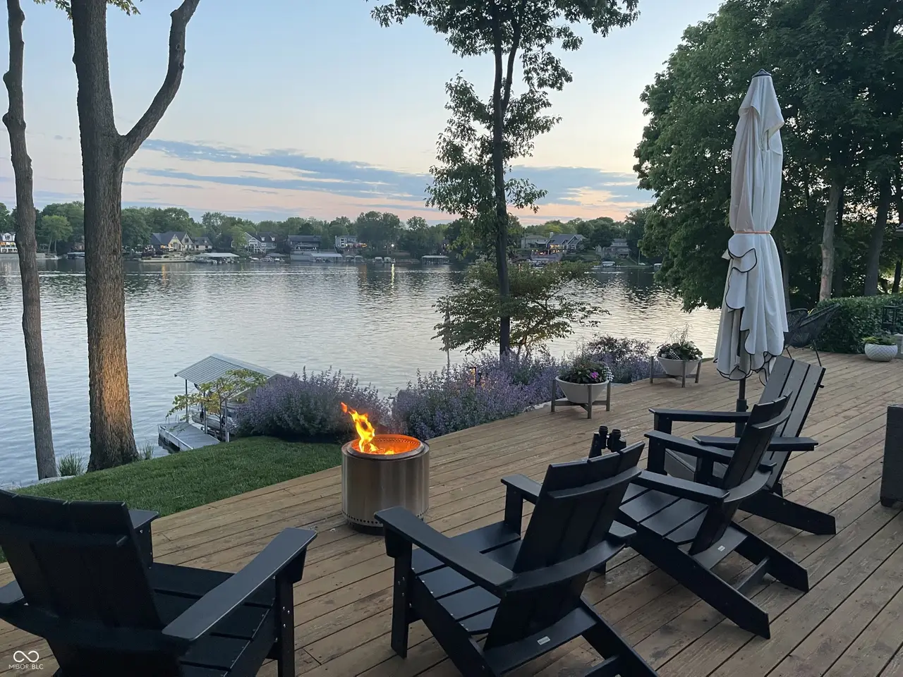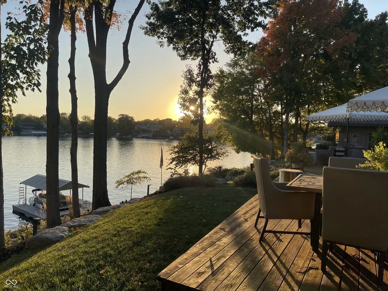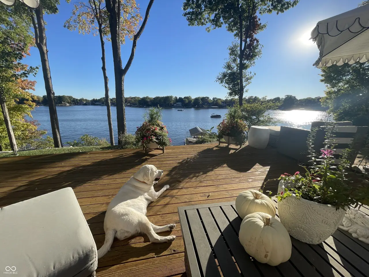Experience the best of lakefront living in Noblesville, Indiana with this stunning $1.4M California-modern ranch home on Morse Reservoir. Perched atop the coveted North Harbour shoreline, the home commands panoramic sunset views over the quiet waters of Morse Reservoir's sailing basin. Enjoy the peace of living in the no-wake zone with quick access to fast water from your 115-frontage foot shoreline, restored metal-roof boat dock and a newly-placed steel pile shore wall for carefree, scenic enjoyment. Beautifully remodeled inside and out, this 3-4 bedroom, 2.5 bath residence celebrates its unique 1970 California ranch character while incorporating high-end updates. Standout features include: Expansive 1,000 sq ft cedar deck for spectacular entertaining and relaxation, Outdoor shower and Jacuzzi spa just off the primary bedroom suite, Fully reimagined kitchen with custom Amish cabinetry (2017), and luxury vinyl plank flooring throughout (2022), Generous concrete driveway, fenced dog run, upscaled landscape lighting, and refreshed windows and doors for comfort and curb appeal. Enter through a welcoming courtyard with gates and enjoy seamless indoor-outdoor living for gatherings or quiet nights overlooking the water. The 2021 landscape transformation designed by Vive Landscapes and constructed by RK Excavation adds the finishing touch, complemented by a large deck for soaking in the serene setting. This meticulously maintained home is perfect for those seeking peaceful full-time residency or a luxurious weekend retreat in Hamilton County's premier lake community. See supplemental information for even more upgrades and features. Don't miss out on the BEST property on Morse Reservoir!