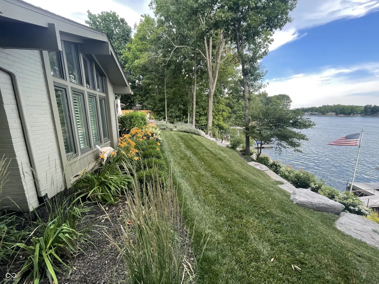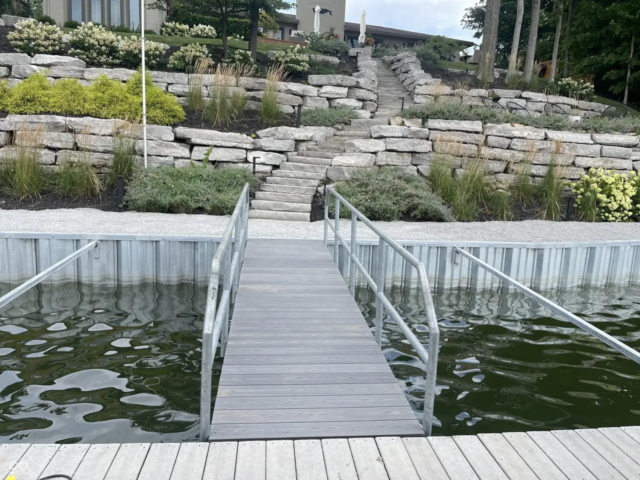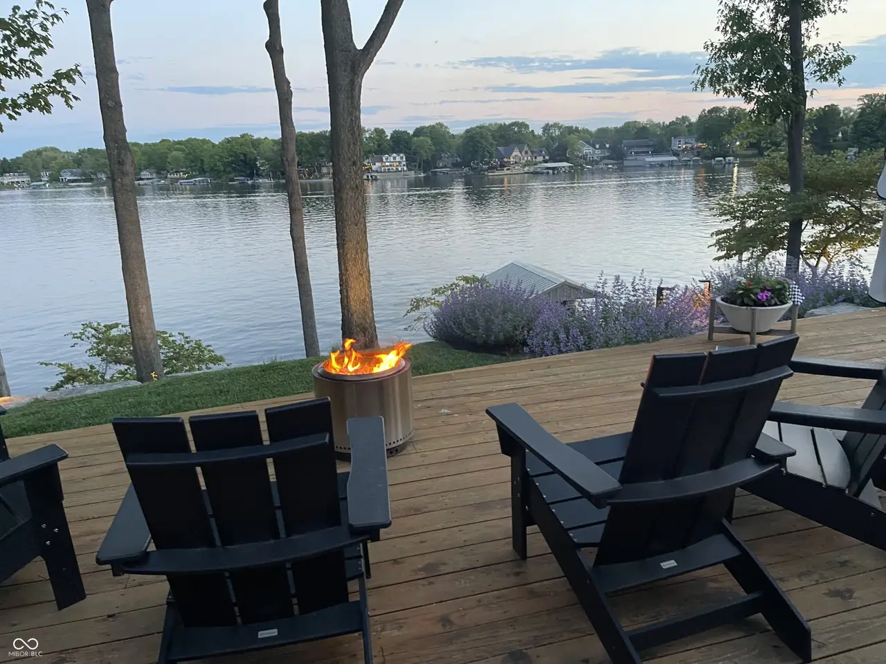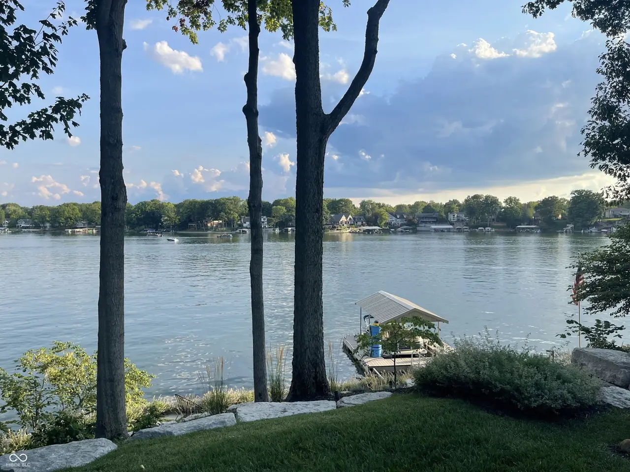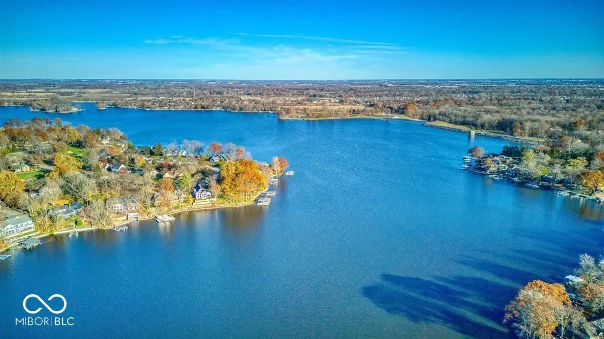 Experience the best of lakefront living in Noblesville, Indiana with this stunning $1.4M California-modern ranch home on Morse Reservoir. Perched atop the coveted North Harbour shoreline, the home commands panoramic sunset views over the quiet waters of Morse Reservoir's sailing basin. Enjoy the peace of living in the no-wake zone with quick access to fast water from your 115-frontage foot shoreline, restored metal-roof boat dock and a newly-placed steel pile shore wall for carefree, scenic enjoyment. Beautifully remodeled inside and out, this 3-4 bedroom, 2.5 bath residence celebrates its unique 1970 California ranch character while incorporating high-end updates. Standout features include: Expansive 1,000 sq ft cedar deck for spectacular entertaining and relaxation, Outdoor shower and Jacuzzi spa just off the primary bedroom suite, Fully reimagined kitchen with custom Amish cabinetry (2017), and luxury vinyl plank flooring throughout (2022), Generous concrete driveway, fenced dog run, upscaled landscape lighting, and refreshed windows and doors for comfort and curb appeal. Enter through a welcoming courtyard with gates and enjoy seamless indoor-outdoor living for gatherings or quiet nights overlooking the water. The 2021 landscape transformation designed by Vive Landscapes and constructed by RK Excavation adds the finishing touch, complemented by a large deck for soaking in the serene setting. This meticulously maintained home is perfect for those seeking peaceful full-time residency or a luxurious weekend retreat in Hamilton County's premier lake community. See supplemental information for even more upgrades and features. Don't miss out on the BEST property on Morse Reservoir!