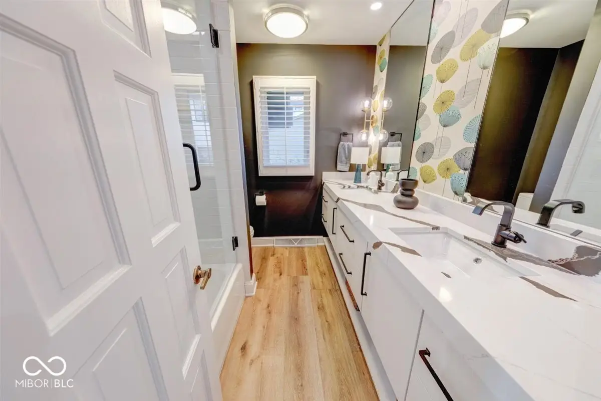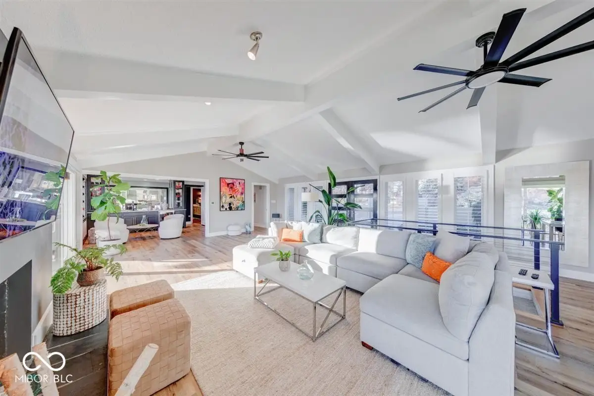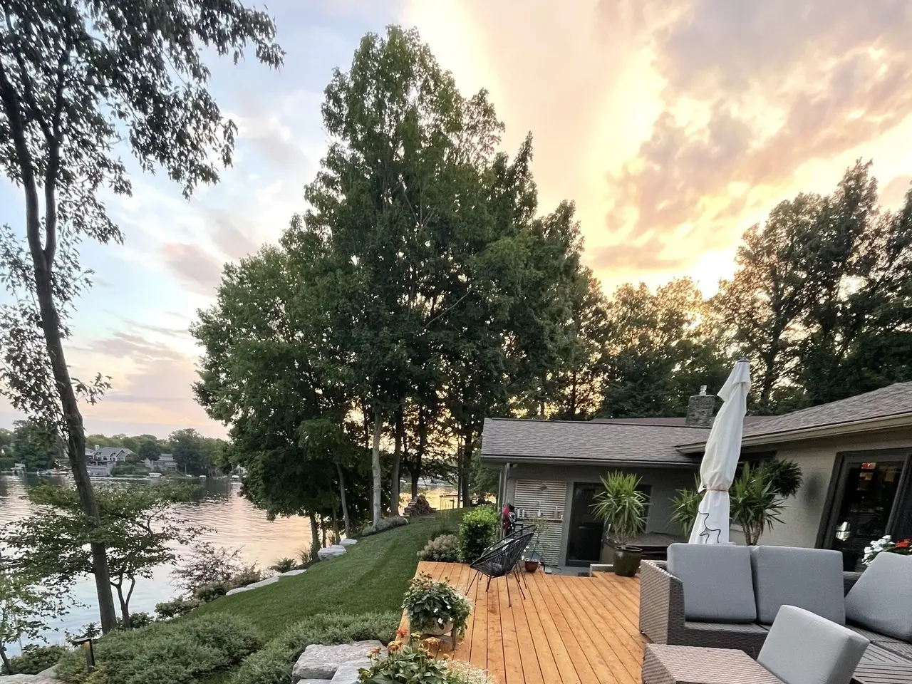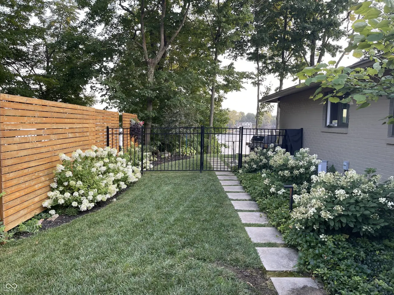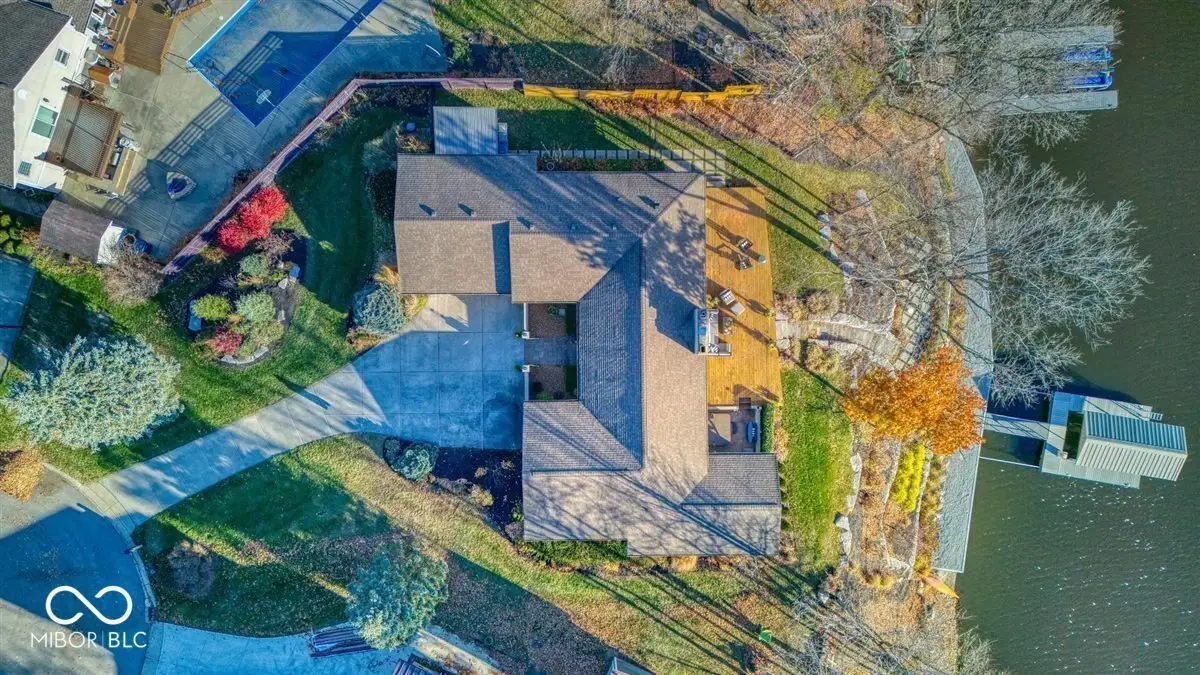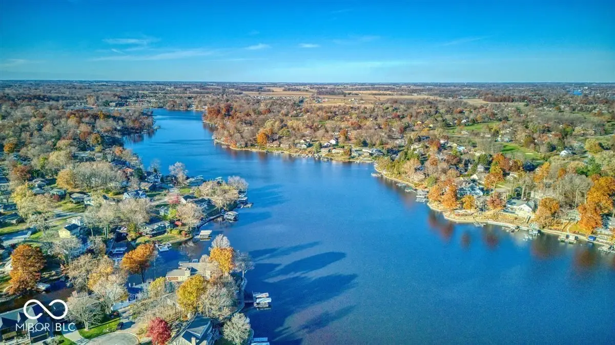 Experience the best of lakefront living in Noblesville, Indiana with this stunning $1.4M California-modern ranch home on Morse Reservoir. Perched atop the coveted North Harbour shoreline, the home commands panoramic sunset views over the quiet waters of Morse Reservoir's sailing basin. Enjoy the peace of living in the no-wake zone with quick access to fast water from your 115-frontage foot shoreline, restored metal-roof boat dock and a newly-placed steel pile shore wall for carefree, scenic enjoyment. Beautifully remodeled inside and out, this 3-4 bedroom, 2.5 bath residence celebrates its unique 1970 California ranch character while incorporating high-end updates. Standout features include: Expansive 1,000 sq ft cedar deck for spectacular entertaining and relaxation, Outdoor shower and Jacuzzi spa just off the primary bedroom suite, Fully reimagined kitchen with custom Amish cabinetry (2017), and luxury vinyl plank flooring throughout (2022), Generous concrete driveway, fenced dog run, upscaled landscape lighting, and refreshed windows and doors for comfort and curb appeal. Enter through a welcoming courtyard with gates and enjoy seamless indoor-outdoor living for gatherings or quiet nights overlooking the water. The 2021 landscape transformation designed by Vive Landscapes and constructed by RK Excavation adds the finishing touch, complemented by a large deck for soaking in the serene setting. This meticulously maintained home is perfect for those seeking peaceful full-time residency or a luxurious weekend retreat in Hamilton County's premier lake community. See supplemental information for even more upgrades and features. Don't miss out on the BEST property on Morse Reservoir!