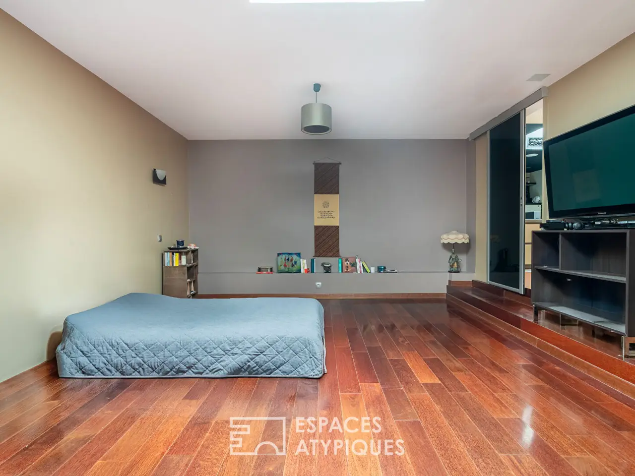 Located in the sought-after Viselets district of Nogent-sur-Marne, resulting from the renovation of a former printing house, this contemporary 214 sqm loft seduces with its bold architecture and spectacular volumes. In a small co-ownership of 4 lots, behind a discreet facade, the tone is set: space, light, and comfort dominate, announcing a place designed to combine design, conviviality, and serenity.The vast reception hall, rare for a loft, reveals generous volumes and fluid circulation. A true backbone of the place, it connects the different spaces by an elegant central staircase that highlights the high ceilings and the verticality typical of this type of habitat.A first landing, bright and soothing, serves as a reception lounge or reading corner and can easily become an intimate reception area.One level higher, the light intensifies thanks to a superb skylight in the roof, providing zenithal brightness throughout the day. This natural addition enhances the interior architecture and guides you to the heart of the loft.The main living area then opens up in all its splendor: a vast volume combining the living room, dining room, and contemporary fitted kitchen. The magnificent central island, a true pivot of the space, brings family and friends together around a modern shared space. The pellet stove, both efficient and aesthetic, creates a warm and friendly atmosphere.On this same level, a modular space offers the possibility of easily creating a third bedroom or a separate office as needed. The loft also includes two superb master suites, designed to offer everyone comfort and privacy. The first has its own shower room, while the second comes with a spacious bathroom and toilet. Between the two, a large shared dressing room creates an elegant and functional link, ideal for an organized and refined daily life.A laundry room, hidden behind a sliding door, ensures practical organization of daily life, while a separate toilet completes this floor with elegance and functionality.An interior driveway allows you to park a vehicle in complete peace of mind.Located on a quiet street, close to schools, shops and only a ten-minute walk from the RER A of Nogent-sur-Marne, this property benefits from a privileged living environment, rare in the heart of the city.A successful combination of spectacular volumes, quality materials and a soothing atmosphere, this loft perfectly embodies the spirit of atypical real estate in Nogent-sur-Marne.A unique place, designed to create a real crush.RER A Nogent-sur-Marne: 10 minutes on footSchools: 2 minutes on footShops: 5 minutes on footREF. 13185Additional information* 4 rooms* 2 bedrooms* 1 bathroom* 1 bathroom* Parking : 1 parking space* 4 co-ownership lots* Property tax : 3 700 €* Proceeding : NonEnergy Performance CertificatePrimary energy consumptione : 291 kWh/m2.yearHigh performance housing*A*B*C*D*291kWh/m2.year9*kg CO2/m2.yearE*F*GExtremely poor housing performance* Of which greenhouse gas emissionsb : 9 kg CO2/m2.yearLow CO2 emissions*A*9kg CO2/m2.yearB*C*D*E*F*GVery high CO2 emissionsEstimated average annual energy costs for standard use, indexed to specific years 2021, 2022, 2023 : between 4880 € and 6660 € Subscription IncludedAgency feesThe fees include VAT and are payable by the vendorMediatorMediation Franchise-Consommateurswww.mediation-franchise.com29 Boulevard de Courcelles 75008 Paris