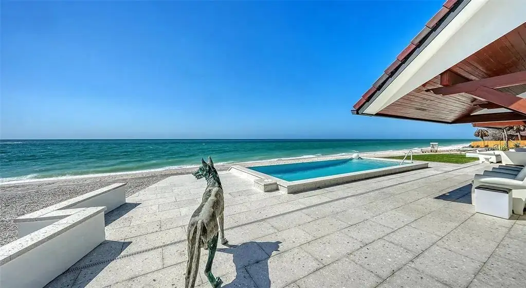 Introducing a rare and extraordinary opportunity to own one of the largest and most coveted properties on Casey Key. This sprawling 2.08-acre estate, featuring an impressive 300 feet of pristine Gulf of Mexico beachfront, is the epitome of coastal luxury. With exclusive Gulf-to-Bay access and 90 feet of Intracoastal Waterway frontage, this property offers unparalleled privacy and endless possibilities for those seeking the ultimate family compound or private retreat. Located in the highly sought-after Estates section of Casey Key, this property offers the best of both worlds: seclusion amidst nature’s beauty and proximity to Sarasota’s vibrant cultural scene. Known for its unspoiled, low-density charm, Casey Key is home to fewer than 400 residences and attracts celebrities, CEOs, and authors who value the island’s quiet elegance and convenient access to the mainland via bridges at both ends. The estate boasts a main residence along with two charming guest houses, providing ample space for family and friends. Expansive grounds set the stage for unforgettable gatherings and entertainment, while the private beach offers direct access to the Gulf’s sparkling waters. Enjoy breathtaking panoramic views from every angle, including a beach-front pool with an infinity edge—perfect for soaking in Florida’s sunset skies. The property also features a grandfathered-in covered boat dock with a 16,000-pound boat lift, offering direct access to the Gulf and Intracoastal Waterway for boating enthusiasts. For the discerning buyer, this estate presents a prime opportunity to renovate the existing structures or to design the home of your dreams, tailoring it to your exact vision. Whether you’re looking for a serene getaway, a legacy family home, or an entertainer’s paradise, this exceptional estate is ready to fulfill your aspirations. Casey Key offers a rare blend of nature’s tranquility and unparalleled access to Sarasota’s world-class amenities. Live the life you’ve always dreamed of in a one-of-a-kind coastal sanctuary. Don't miss your chance to own a piece of paradise on one of Florida’s most desirable barrier islands.