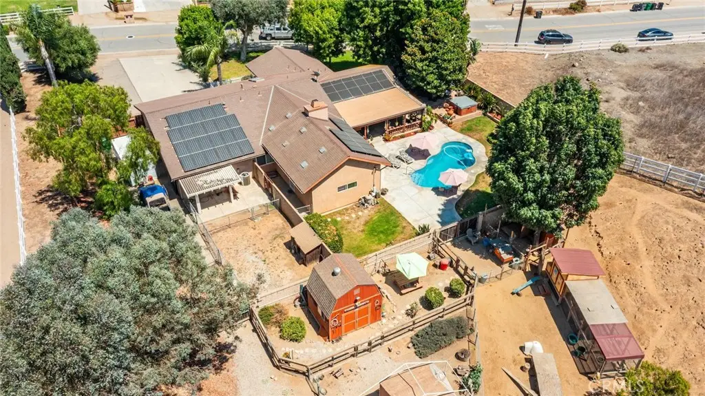 Equestrian Paradise in Norco, CA. Located on a Premium 2.03 Acre Corner Lot. The perfect blend of rural charm and modern convenience. This spacious equestrian estate is situated on a desirable corner lot with dual gated access, making it ideal for horse owners, animal lovers, or anyone looking for extra space and functionality. Zoned for 23 large animals, plenty of room for horses, livestock, or other animals. Two separate gates for easy vehicle entry. Second gated access on the First St side, ideal for back-of property entry access. Ample space to add a round pen, riding arena, stables or future expansion. Custom built chicken coop, 3 sheds for storage, or tack rooms. Professionally landscaped private backyard with a saltwater pool, spa, raised deck nestled under mature shady trees. Expansive covered patio running the full length of the back side of the home perfect for relaxing or entertaining. Interior Features: Upgraded kitchen granite countertops, center island, and stainless steel appliances. Dual-pane windows and sliding glass doors. Whole house fan, custom shutters, and water purification system. Energy-efficient solar panels (leased). Fifth bedroom with private entrance perfect for a mother in law suite, guests, or home office. Whether you're looking to embrace the Norco lifestyle with horses, or simply want room to spread out and enjoy the land, this home offers unmatched versatility and charm. Don't miss this rare opportunity! Schedule a private tour today!