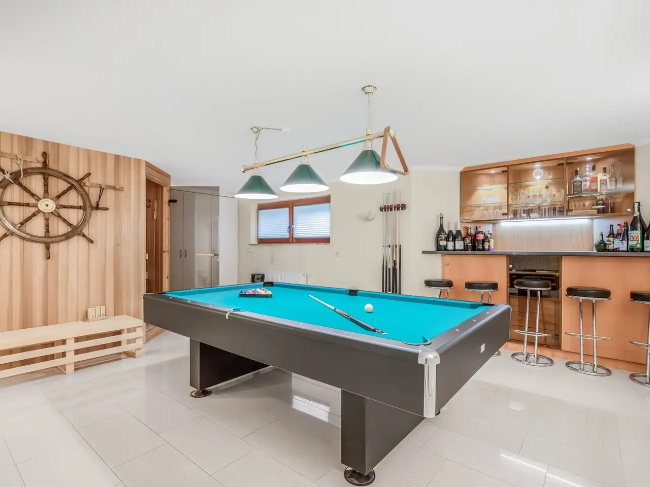 This exceptional town villa with a classic mansard roof was built in 2011 by a renowned construction company using solid construction methods. Situated on a spacious plot of approx. 940 m², it combines modern living with architectural elegance and maximum comfort. The location in the popular district of Norderstedt-Garstedt impresses with its tranquillity, greenery and proximity to the city - a rare balancing act that is impressively achieved here. Prestigious reception and stylish entrance As soon as you enter the property via the electrically controlled access gate and the prestigious front staircase made of flamed natural granite (Oriental Black), it is clear that this property sets standards. The front door with elaborate wooden decorations and artistic glass ornaments opens into a stylish entrance. The spacious entrance area welcomes you with an Italian crystal chandelier, which creates a warm and elegant atmosphere with its golden lighting. To the left, a solid Canadian maple staircase leads to the upper floor; to the right is a tasteful, gilded mirror as well as a practical shoe cupboard and comfortable seating. From here you can access the spacious living area as well as the guest bedroom, the guest shower room and the basement. Spacious living with light, air and quality The first floor impresses with its clear structure, spaciousness and high-quality fittings. The ceiling height was extended by two additional rows of bricks and brought to a clear height of 2.70 m with a suspended false ceiling. Recessed brass spotlights were integrated into these, which - like the exterior lighting - are controlled via the smart home system. The spacious living area with fireplace invites you to relax and opens out onto the generous south-west-facing terrace. The elegant fireplace, made of French marble with a glazed stove insert and gold-plated frame, forms the stylish centerpiece of the room. The open-plan kitchen is equipped with high-quality Miele built-in appliances, including an induction hob, oven, fridge-freezer and dishwasher. The worktops and splashback - like all the windowsills in the house - are made of fine Shivakashi granite. A stylish bay window forms the bright and cozy dining area. A charming, separable patio door provides quick access to the double garage. On the first floor there is also a modern guest shower room and a further room, ideal for use as a guest room, study or children's room. Exclusive upper floor with comfort and privacy The upper floor is dominated by a quiet, homely ambience. High-quality Canadian maple parquet gives all rooms a warm touch. The open hallway area was designed as a reading and library corner - a place of tranquillity and retreat. The master bedroom offers direct access to the sunny balcony with a view of the lovingly landscaped garden. Two further rooms can be used flexibly as a children's room, study or dressing room. The luxurious full bathroom impresses with its exclusive fittings: a corner bath, a spacious shower, a double washbasin made by a carpenter and two cabinets (each based on the "Gloria" model by Burgkama), a seat that also serves as a laundry pouffe and high-quality fittings from the "Delphi" series by Jörger combine functionality with aesthetic appeal. Large windows provide plenty of natural light. There are panic light switches on both floors: the entire interior and exterior lighting is activated at the touch of a button - for an additional sense of security in special situations. Outside, a 1500-watt spotlight, downlights in the underbuild and comprehensive garden lighting reinforce the security concept. Fully-fledged basement - high-quality, functional and close to living space The basement was built in waterproof concrete with a white and black tank and has a perimeter drainage system and comprehensive thermal insulation. The basement was built slightly elevated, resulting in a room height of 2.25 m and a particularly pleasant feeling of space thanks to an additional row of bricks. A practical built-in cupboard for 50 pairs of shoes and a solid steel safe (135 liters, class DIN/EN1143-1), firmly embedded in the wall, have also found their place in the hallway of the basement. The following rooms are located in the basement of this well-designed property:: - A spacious hobby room with pool table, small bar, wood-burning stove for emergency heating, stylish sauna and an adjoining walk-in shower with extractor fan - a real wellness oasis. - A versatile storage and sports room, which also houses some of the building services. - A separate utility room with modern heat pump (Stiebel company), a large hot water tank, washing machine, dryer and central vacuum cleaner system Cyclo Vac. - A utility room with additional hot water tank, large freezer and shelves for storage. - A spacious workshop with electricity - ideal for DIY enthusiasts and hobbyists. Top-level windows, security and smart home technology All windows and doors are from Rekord and are made from certified plantain wood - with a teak look on the inside and a powder-coated aluminum shell on the outside. All windows are triple-glazed, impact-resistant and fitted with burglar protection. High-quality plastic frames were used in the basement. All windows are also fitted with internal, high-quality pleated blinds (model P1415). A modern smart home system reliably controls the shutters, lighting, garden irrigation, awning, gate system and more. Electric shutters are fitted to all windows and can be automatically regulated by time, light levels or sun intensity. State-of-the-art building technology for energy-efficient living In addition to the powerful heat pump heating system (hybrid bus technology), the property offers: - A central vacuum cleaner system with flexible hoses (12.2 m per floor) - Two large hot water tanks - Electric awning - Robot mower - Automatic garden irrigation system - Four garden water connections - External sockets in various areas - The solid mans