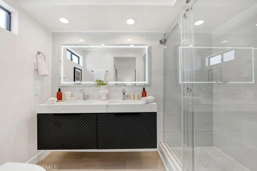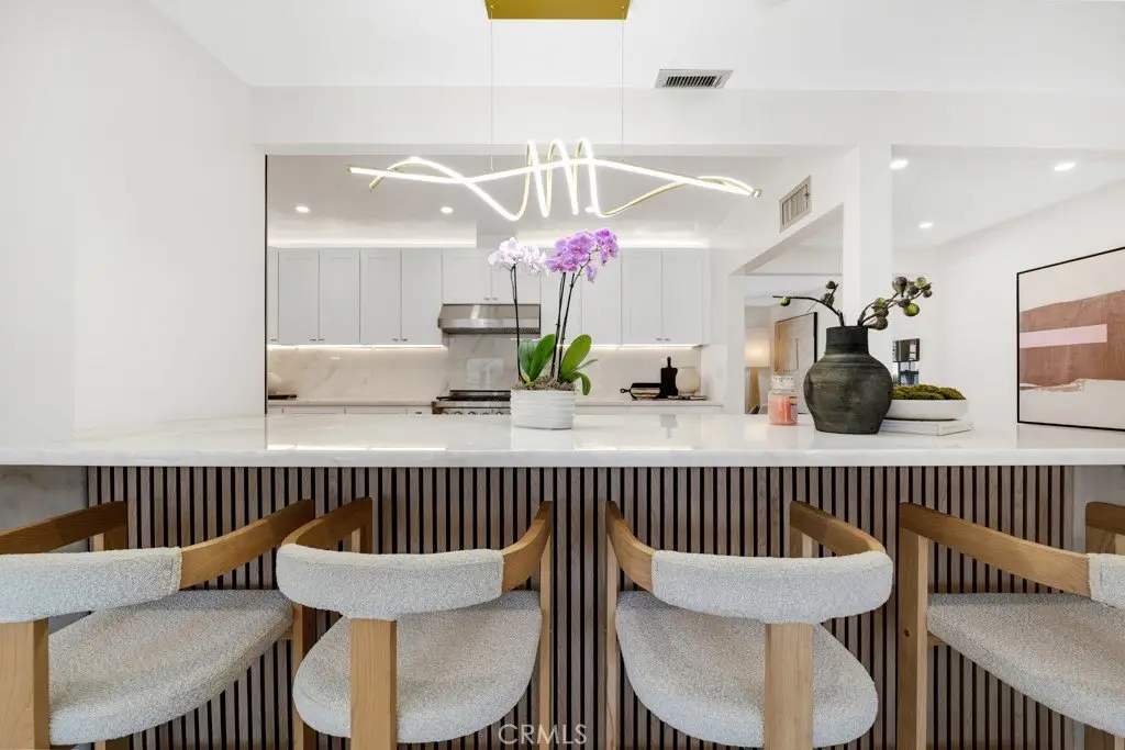 Introducing this beautifully upgraded single-family home in North Hollywood! Spanning 1,650 square feet, this charming residence features 3 bedrooms and 2 bathrooms. Upon entering, you'll be captivated by the exquisite details, including stylish light fixtures, textured walls, and stunning marble countertops. The entire home boasts elegant engineered wood flooring and recessed lighting, creating a warm, inviting ambiance. Step into the cozy living room, complete with a sophisticated fireplace that adds character to the space. The first bathroom, conveniently located in the hallway, showcases a modern design with a floating vanity and a skylight that fills the room with natural light. The primary bedroom includes two spacious closets and an ensuite bathroom for added convenience. The gourmet kitchen is a chef's dream, equipped with a 36-inch professional-grade stove, luxurious marble countertops, a large island, and custom cabinetry. This area flows effortlessly into the open living and dining spaces, making it perfect for entertaining guests. The third bedroom, situated near the dining room, offers flexibility as a potential home office. The thoughtfully designed landscaping and hardscaping enhance the property’s appeal, all framed by a secure perimeter gate that ensures privacy and safety. Additionally, a detached garage at the back presents an exciting opportunity for a fully permitted ADU conversion (approximately 566 sq. ft.), with paid plans available for a 1-bedroom, 1-bathroom unit. This property is move-in ready and ideally located close to the vibrant NoHo Arts District, a variety of shopping and dining options, and major freeways, making it a perfect blend of luxury living and future income potential. Don’t miss out on this incredible opportunity!