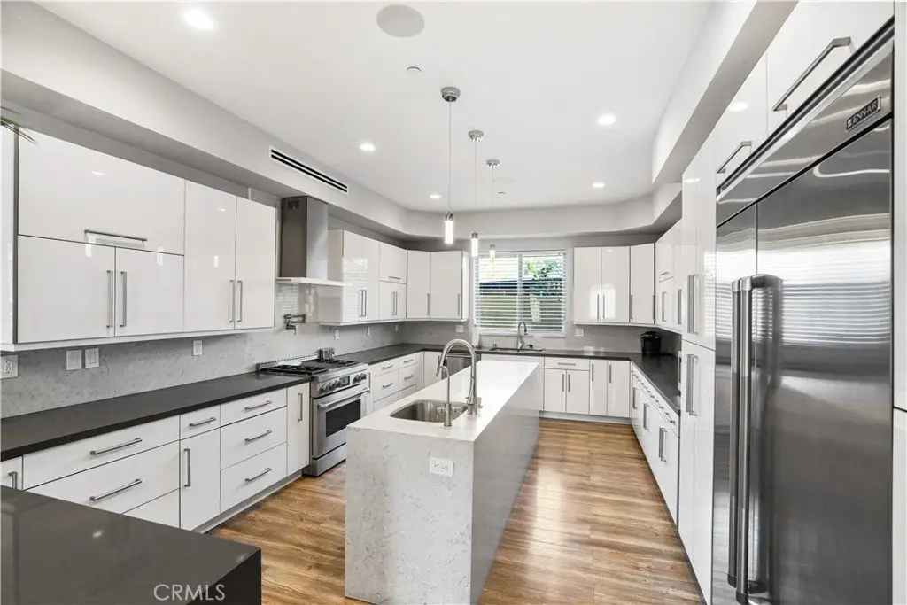 2016 custom built home, you will be wowed from the moment you walk through the double iron doors. Property features include 5 bedrooms with 1 downstairs bedroom, 5.5 bathrooms, high ceilings, recessed lighting, laminate flooring, iron stair railing, a formal living and dining room, custom paint and venetian plaster, a chef's kitchen including built-in fridge, an island, a built-in ice maker and quartz countertops. Upstairs you will find 4 additional bedrooms each with its bathroom and walk-in closet. Step into the master bedroom where you will be greeted by a 200sqft patio. Outside you will find a 15 by 60 covered patio for your gatherings, recessed lighting, more venetian plaster, an additional 400sqft permitted storage, firepits and so much more. Additional features include 2 tankless water heaters with circulation pumps, pre-installed equipment for solar panels, a 400 amp electrical panel and so much more. You must see to appreciate. Conveniently located near the new NoHo Arts District.
