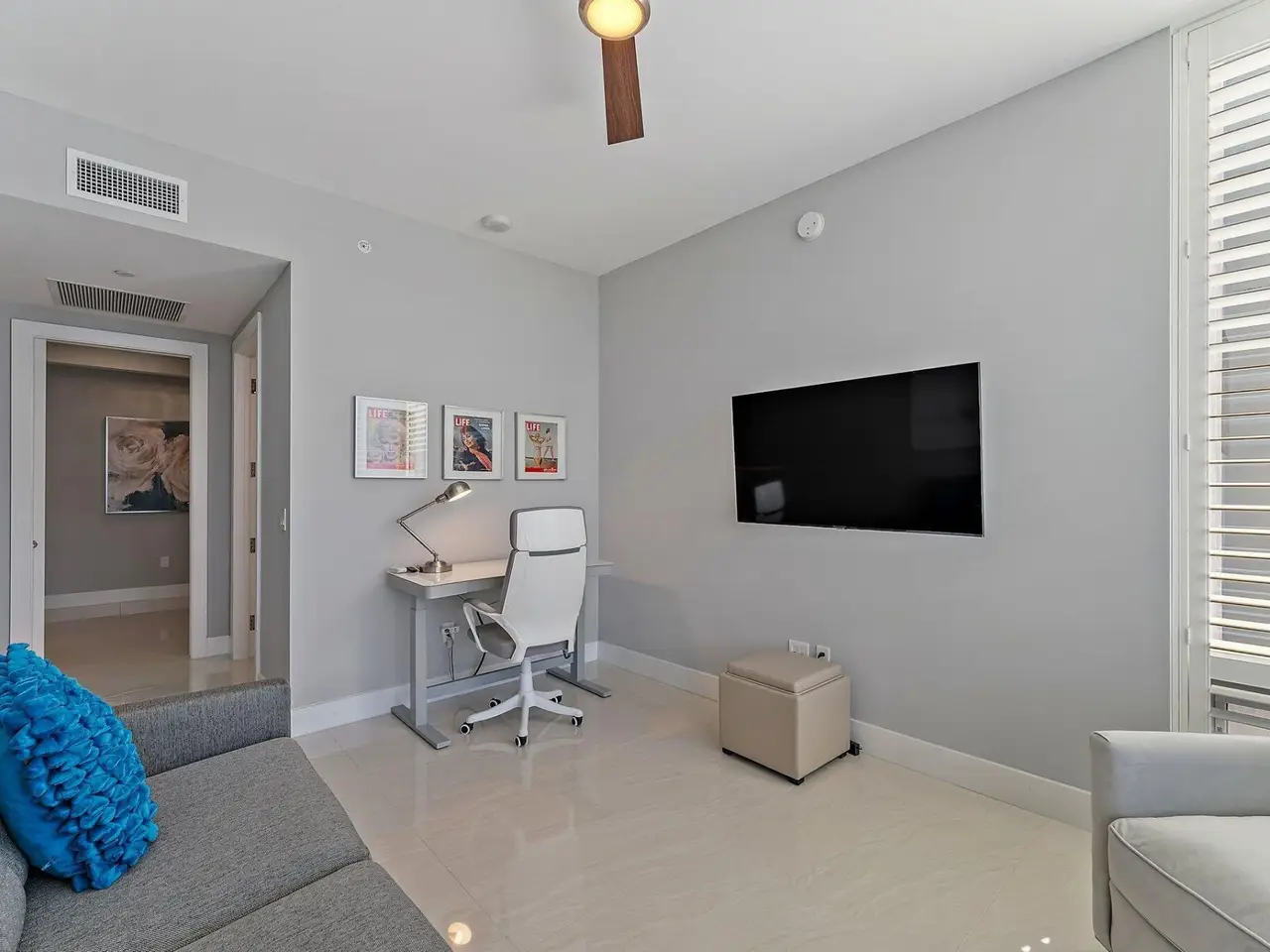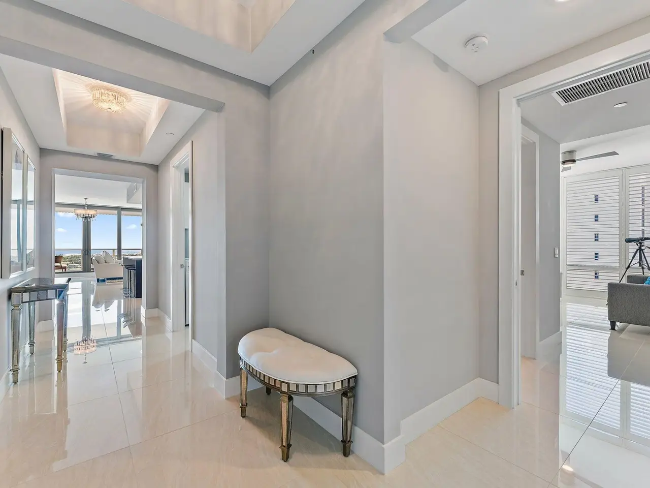 Enjoy amazing views to the ocean, Lake Worth Lagoon, and as far as they eye can see from this ultra luxury Azure floor plan in Water Club. The Azure model is the largest floor plan of the four regular stacks in the first two towers of the community. This unit also has a den/office that could serve as bedroom # 4 because it has a full bath and sleeper sofa. Best of all, Water Club has world class amenities like 24/7 manned and gated security, private elevator lobbies, covered parking, a private clubhouse, resort style pool, lap pool, fitness center with yoga/pilates studio, spa, fire pits, pickle ball court, guest suites, and more..