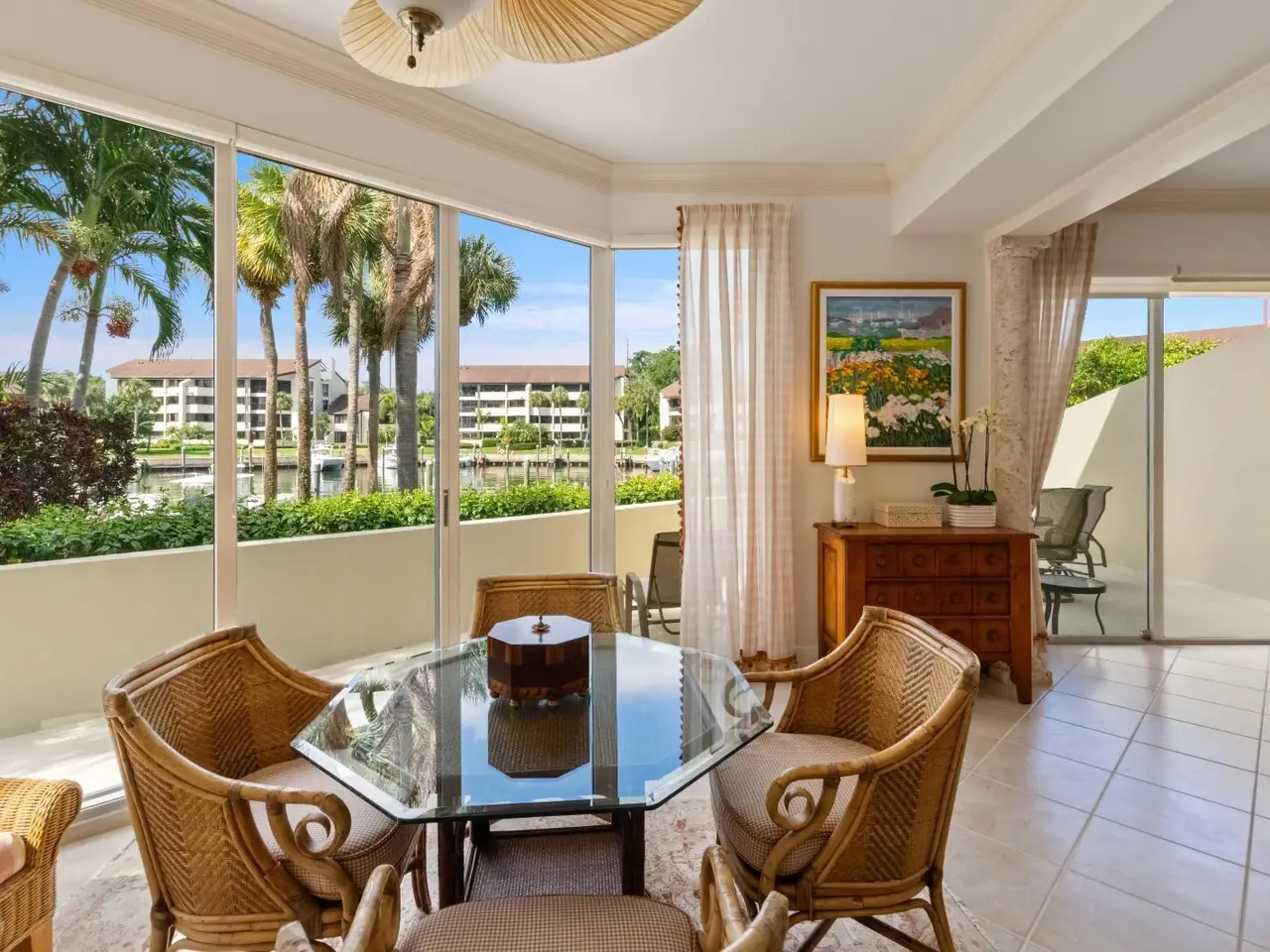 ALL CONDO INSPECTIONS COMPLETED. NO SPECIAL ASSESSMENTS. Rarely available in Old Port Cove, this stunning 4-bedroom, 4.5-bathroom townhome with a private BOAT SLIP offers a luxurious and spacious lifestyle. The large eat-in kitchen features an island and opens to a front private outdoor patio, perfect for relaxing. Enjoy a formal dining area and a generously sized living room for entertaining. The oversized study is equipped with custom-built cabinetry, ideal for work or leisure. Step outside to the patio with picturesque views of the Harbor Village marina and your very own boat slip. Each bedroom has its own ensuite bathroom. The master suite includes dual vanities, a walk-in shower, a soaking tub, and two walk-in closets. 1 assigned covered carport space and additional storage. NEW AC's